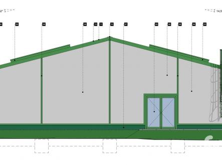Prodej komerčního pozemku se stavebním povolením na výstavbu moderní skladovací a prodejní haly s administrativním zázemím o celkové zastavěné ploše 1 240,25 m², navržené v energetické třídě A. Dobrý den, dovolujeme si Vám nabídnout atraktivní komerční pozemek o ploše 2 465 m², určený k realizaci novostavby skladovací a prodejní haly dle platného stavebního povolení. Lokalita je snadno dostupná, elektřina je již přivedena na pozemek, je vyhotoven projekt napojení na obecní vodovod a celý areál je obsloužen místní asfaltovou komunikací. Navržená hala je jednopodlažní objekt s ocelovou nosnou konstrukcí a moderním opláštěním z PIR panelů. Dispozice zahrnuje dvě rozsáhlé skladovací plochy o výměře 595,43 m² a 360,77 m², zásobovací prostor a administrativní část o 172,83 m² určenou pro zaměstnance i zákazníky. Energetická náročnost budovy je ve třídě A díky navržené kvalitní tepelné izolaci, moderní střešní skladbě a použití tepelného čerpadla vzduch–voda jako hlavního zdroje tepla. Celková užitná plocha objektu činí 1 185,68 m². Součástí projektu je kompletní řešení hospodaření s vodami. Dešťové vody jsou svedeny do sestavy železobetonových jímek, které zároveň slouží jako požární nádrž. Splaškové vody jsou odváděny do samostatné jímky. Celkový návrh je funkčně připraven pro moderní a efektivní provoz. Pozemek nabízí výborné podmínky pro zásobování a manipulaci s materiálem, což jej činí ideálním pro logistiku, distribuci či provoz prodejního skladu. Díky vydanému stavebnímu povolení lze s realizací stavby začít okamžitě. Tento projekt představuje jedinečnou příležitost pro podnikatele, investory či firmy, které hledají moderní, energeticky úsporný a kapacitně velkorysý prostor pro skladování, lehkou výrobu nebo kombinaci s prodejní funkcí. Pro více informací nás neváhejte kontaktovat. Rádi Vám poskytneme projektovou dokumentaci, technické podklady i detailní informace k možnostem využití objektu.