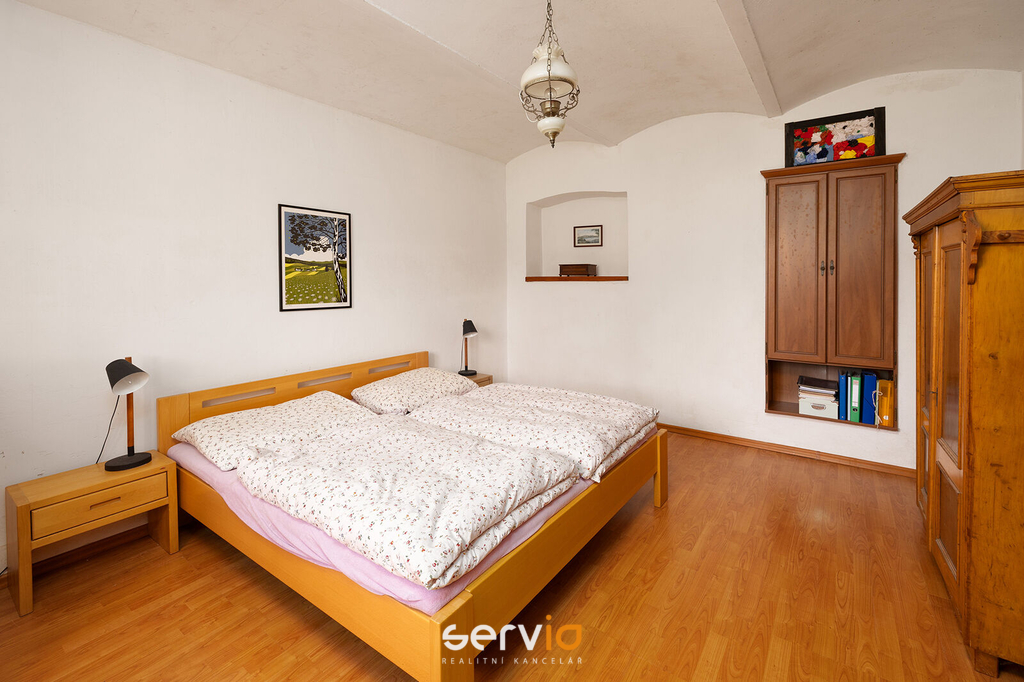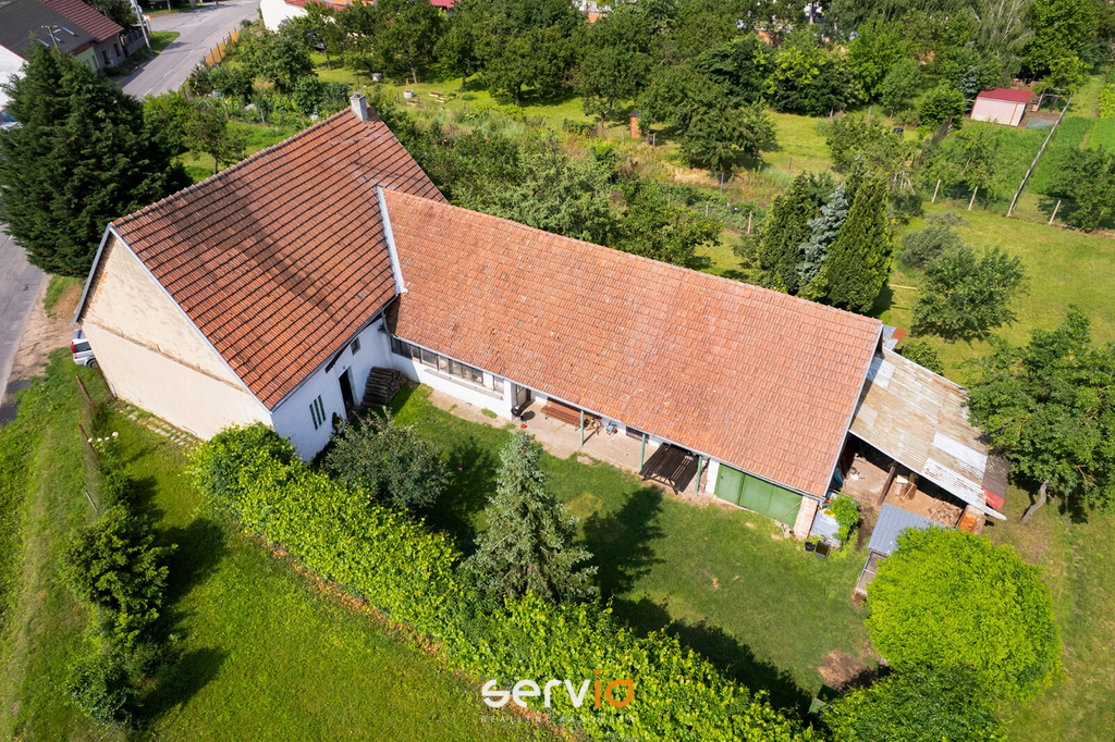 Ve výhradním zastoupení majitele nabízíme k prodeji samostatný rodinný dům s nadstandardně velkým pozemkem v obci Strachotín, okrese Břeclav. Pozemek je již rozdělen na samostatné parcely, což nabízí potenciál k využití na stavbu 3 domů. (V územním plánu obce jsou pozemky určeny ke stavbě obytné venkovské - rodinné domy). Samostatný rodinný dům z roku 1890 je částečně podsklepený s jedním nadzemním podlažím a možností dalšího rozšíření o obytné podkroví. Technicky je dům v dobrém stavu a byl v průběhu let udržován a částečně i rekonstruován - plastová okna, keramická dlažba, plovoucí podlahy, obnovená fasáda, revitalizace střechy. Dispozičně je dům řešený jako 2+1 a 1+kk. Vybavení domu: KL včetně vestavěných spotřebičů: elektrická varná deska, elektrická trouba. Rozměry jednotlivých místností - kuchyně 27 m2, 2 pokoje 25 + 17 m2, koupelna + wc 18 m2, chodba 14 m2, vstupní prostor 9 m2, veranda 9 m2, stodola (dílna) 66 m2, sklep 9 m2. Samostatný "apartmán" 1+kk - 25 m2. Zděná zídka kolem prostoru dvora poskytuje dostatek soukromí, zbytek pozemku oplocen, dům je napojen na veřejné rozvody elektřiny, plynu, kanalizace a vody, vytápění a ohřev vody zajišťuje nový plynový kotel BAXI, kamna, radiátory. Celková plocha pozemku 3048 m2, z toho zastavěná plocha a nádvoří 576 m2, užitná plocha 150 m2, zahrada 2472 m2 Měsíční náklady na energie - elektřina 2.250,- Kč, plyn 3.010,- Kč, vodné + stočné 1.100,- Kč. Obec Strachotín leží při Novomlýnských nádržích asi 15 km od Mikulova nebo 8 km od Hustopečí a disponuje základní občanskou vybaveností - pošta, MŠ, COOP, potraviny, restaurace, vinné sklípky. Vodní nádrž Nové Mlýny - koupání, rybolov, windsurfing, akce spojené s vinařskou tradicí, vinobraní, otevřené sklepy a malebná krajina jako stvořená pro pěší výlety a cykloturistiku, to vše vám poskytuje široké možnosti pro trávení volného času. Ze Strachotína lze přejet silnicí po hrázi do Dolních Věstonic a odtud do cca 10 km vzdáleného Mikulova.