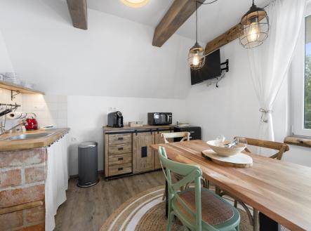 PRONÁJEM ZAŘÍZENÉHO BYTU 1+KK V REKREAČNÍ OBLASTI PÁLAVY, STRACHOTÍN