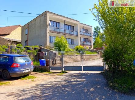 Ve výhradním zastoupení majitele Vám nabízím bytový dům o čtyřech bytových jednotkách s celkovou plochou 470 m² na pozemku 1.814 m² v obci Stradonice u Slaného, jen 30min po D7 na metro B Zličín – ideální místo pro velkou rodinu, zázemí firmy a podnikání, nebo developera. Bytový dům (betonový skelet vyplněný cihlami) byl dokončen v r. 1980 a po úpravách kolaudován v r. 1993. Obsahuje tech. zázemí cca 90 m² v -1.PP a 4 stejné byty 3+1 o výměře 75 m² + 7,5 m² lodžie. V domě je dostatek úložných prostor, v -1.PP jsou sklepy, k praktickému využití prádelna a sušárna a u každého bytu je na chodbě úložná komora. Vytápění zajišťuje automatický kotel na uhlí (EURO 5) + el.kotel napojený na radiátory, pro ohřev teplé vody má každý byt el. bojler. Voda je do domu přivedena přes vodárnu ze studny a odpad do jímky, ale v letošním roce je v obci plánováno připojení na obecní vodovod a kanalizaci, realizace nyní probíhá, základní příprava pro napojení u domu je hotová. Dům je plně funkční, před 8 lety byly udělány nové rozvody topení v mědi, jinak je v původním stavu, který si zaslouží rekonstrukci. Před domem je velká zpevněná plocha na parkování a 3 garáže, za nimi na druhé příjezdové cestě k domu lze pohodlně parkovat kamión s návěsem. Na pěkné zahradě (1.417 m²) jsou za domem 4 zděné úložné kůlny a dostatek prostoru k zahradničení, zábavě a odpočinku. Bytový dům se včetně zahrady prodává jako celek, jednotlivé byty nejsou na katastrálním úřadu vymezené (zapsané), proto si je může nový majitel vymezit prohlášením vlastníka dle svého uvážení. V klidné obci je útulná hospůdka u které se v létě konají akce pro děti a venkovní taneční zábavy, dvě nová dětská hřiště, zastávka autobusu do Slaného, veškerá další občanská vybavenost jako mateřské a základní školy, lékaři, velké obchody a vlaková stanice (do Kralup nad Vltavou a Loun) se nachází v blízké sousední obci Zlonice a Klobouky. Jednoduchá cesta autem do Prahy po D6, D7 i D8 kolem 30 min na metro, do 10 min dojezd do Slaného. Dobrá investiční příležitost k podnikání i k vícegeneračnímu bydlení pro velkou rodinu. S vaší hypotékou pomůžeme – zařídíme. Doporučuji. Ev. číslo: 649762.