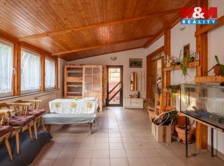 Nabízíme k prodeji dvougenerační dům se zahradou, o celkové výměře 2829 m2. Přízemí domu o ploše 161 m2 zahrnuje kuchyň, obývací pokoj, ložnici, koupelnu, WC, kotelnu, zimní zahradu s přístupem do venkovní pergoly. V prvním patře o výměře 112 m2 je kuchyně, obývací pokoj, dva pokoje, koupelna a WC. Obě bytové jednotky jsou samostatné a mají pouze společnou vstupní halu. Dům je napojen na vlastní vrt, vytápění kotlem na tuhá paliva, odpad je svedený do septiku s trativodem. Nemovitost je částečné podsklepená, sklep cca 12 m2. Na pozemku u domu se nachází pergola s grilem, udírna, garáž o výměře 57 m2, kotec pro psy, voliéra a dřevníky. Celý pozemek je oplocen, podél pozemku jsou vysázené okrasné keře, thuje a ovocné stromky. V okolí možnost procházek, rybaření, koupání v řece. Dobré napojení na cyklostezku směr Hajská. Cca 800 m je vlakové a autobusové nádraží, Billa a nově vznikající nákupní centrum s Albertem, lékárnou a McDonald. Více info u makléře.