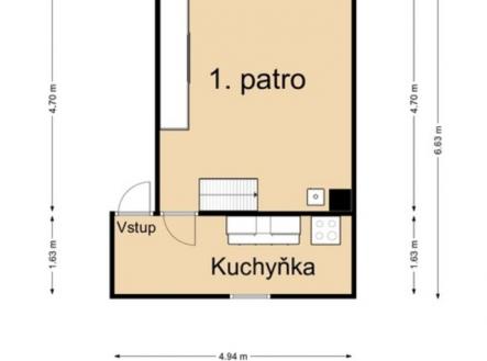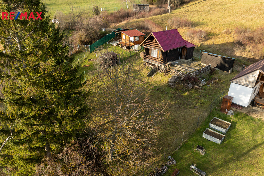 Pokud máte rádi jihovýchod Bílých Karpat, nebo jste z okolí Strání, mám pro Vás nabídku prodeje chaty v katastru obce Strání. V nadmořské výšce 465 m a krásným výhledem na okolní přírodu a na obec Strání. Nachází se v lokalitě místní chatové oblasti na okraji obce, ve které žije cca 3300 obyvatel. Chata z dřevěné konstrukce je postavena v mírném svahu na betonové podezdívce. Byla stavěna cca kolem roku 1986 a má své evidenční číslo. V suterénu vznikl zděný prostor sklepa s možností uložení věcí a je momentálně využíván také jako dílna. Nachází se zde studna. V tomto prostoru bylo plánováno vybudovat sociální zařízení se sprchou. Do obytné části, která začíná v přístavbě se vchází z venkovní terasy. Je zde vstupní prostor pro odložení věcí a také kuchyňka s menší linkou a sporákem na plynovou lahev. Na podlaze je položena dlažba. Díky tomu, že byla v nedávné době přivedena do chaty elektřina, je možné plynový sporák vyměnit za elektrický. Z prostoru kuchyňky lze vejít do obytné místnosti kterou vede komín a jsou zde kamna na tuhá paliva, která vytápí objekt. Z této místnosti můžete vyjít dveřmi na balkon, který naskytne krásné výhledy do okolí, na přírodu a na obec Strání. Orientace je J-JZ. Z obytné místnosti vedou dále dřevěné schody s poklopem v podlaze nahoru do podkroví, kde najdete totožnou podlahovou plochu jako u spodní části omezenou výškou střechy a jejími šikminami. Tento prostor je ideální na spaní. Patří k němu také výstup na balkon orientovaný stejným směrem jako ten spodní. ✔Suterén (sklep) – 4,4 x 3,4m (výška stropu 1,98m) ✔1. patro - 4,7 x 3,77m (výška stropu 2,3m) + kuchyňka 4,93 x 1,63m ✔Podkroví – 4,7 x 3,8m ✔Balkony mají oba cca 4 x 1m Střecha je sedlová, materiál krytiny plech. U chaty je vybudovaný dřevník a suchý záchod. Na zahradě se nachází strom ořechu a trnky. Celková plocha pozemku včetně zastavěné je 599m². Příjezd k chatě je zajištěn po obecní cestě.