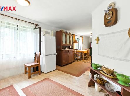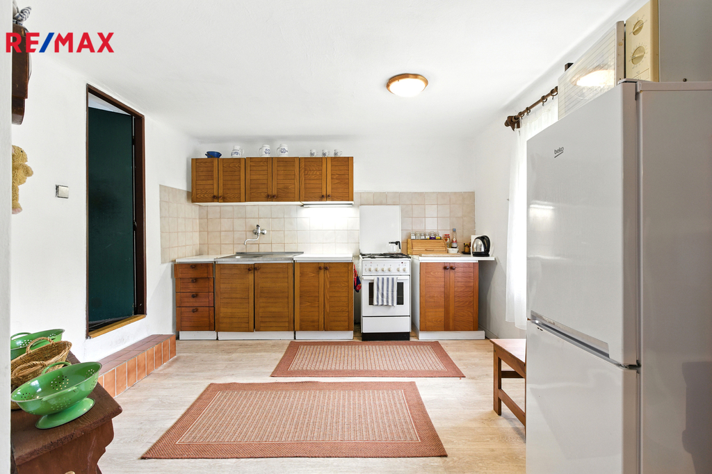 Nabízíme k prodeji prostornou chalupu o užitné ploše 108 m², která se nachází na velkorysém pozemku 1180 m² zakončeném malebným rybníkem. Součástí nemovitosti jsou také dvě kůlny (2 × 8 m²) a skladovací místnost o ploše 22 m². Přízemí chalupy je připravené k okamžitému nastěhování a objekt lze bez problému využívat celoročně. Velký pozemek nabízí dostatek prostoru pro venkovní posezení s rodinou či přáteli a skýtá jedinečnou atmosféru pro odpočinek i volnočasové aktivity. Dispozice a vybavení: kuchyně s linkou, kombinovaným plynovým sporákem a jídelním koutem obývací pokoj ideální pro relaxaci ložnice s navazující místností, vhodnou jako šatna či dětská herna druhá ložnice koupelna s vanou, umyvadlem a toaletou dvě kůlny a praktický skladovací prostor Dům a lokalita: Chalupa je v dobrém technickém stavu a připravena k okamžitému užívání. K domu je přivedena plynová přípojka, takže je možnost zřídit například plynový kotel k vytápění. Lokalita nabízí kompletní občanskou vybavenost – v docházkové vzdálenosti najdete obchod, školu, školku i dětská hřiště. Potěší vás také výborná dopravní dostupnost – autobusová zastávka je jen pár minut chůze. Milovníci přírody ocení okolní zeleň, která vybízí k procházkám, sportovnímu vyžití a relaxaci u vody.
