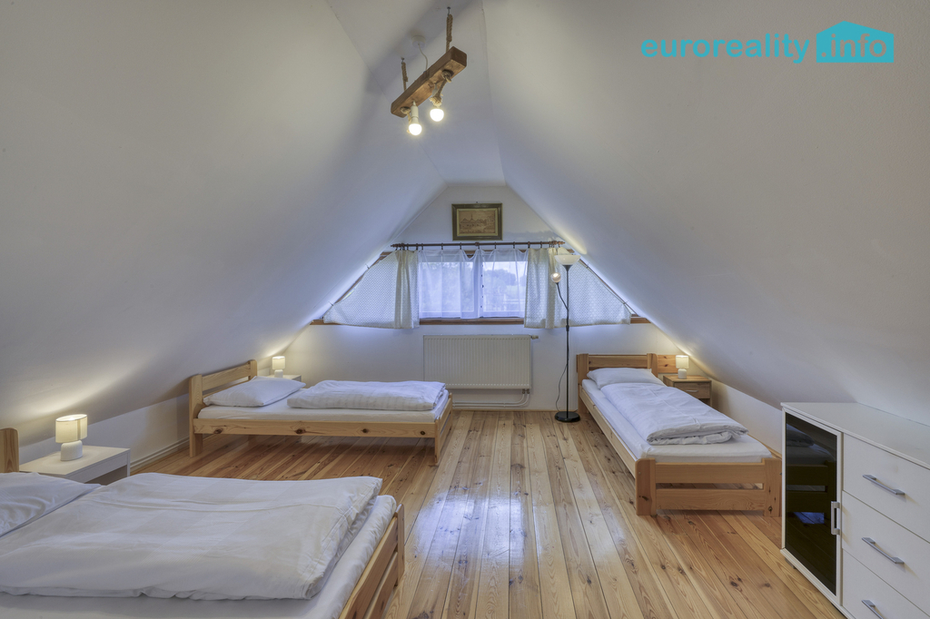 Ve výhradním zastoupení nabízíme k prodeji rodinný dům v malebné obci Strašín, konkrétně v části Lazny, v okrese Klatovy. Tento dobře udržovaný objekt je patrový a skládá se ze čtyř pokojů, které nabízejí dostatek prostoru pro rodinné bydlení. Dům má zastavěnou plochu 94 m², užitnou plochu 116 m² a celkovou plochu parcely 1.361 m², což zajišťuje příjemný prostor pro relaxaci a různé aktivity. Dispozice přízemí je 2+kk plus koupelna vybavená sprchovým koutem a WC. V patře jsou další dva pokoje a samostatné WC, což zvyšuje pohodlí a soukromí pro všechny členy domácnosti. Dům je ve velmi dobrém stavu a je připraven k okamžitému nastěhování. K nemovitosti náleží také prostorná zastřešená terasa 44 m², která je ideálním místem pro letní posezení s rodinou a přáteli. Dále zde naleznete pergolu s krbem, což oceníte při grilování a odpočinku na vzduchu. Dům disponuje zapuštěným bazénem 12 m² se solinátorem, odsuvným zastřešením a solární sprchou, infrasaunou pro relaxaci a dětským domečkem s hřištátkem, což z něj činí ideální místo pro rodinný život. K dispozici je také sklípek o ploše 6 m², akumulační jímka na 1.000 litrů dešťové vody a v zadní části pozemku je rozestavěná stavba. Objekt je napojen na kanalizaci a vodovod. Topení je řešeno prostřednictvím elektrokotle s radiátory a ohřev vody zajišťuje elektrický bojler. K dispozici je internetové připojení. Dům se nachází v klidné lokalitě, s dobrým přístupem k autobusové dopravě, což zajišťuje bezproblémové spojení s okolními městy. Veškerá občanská vybavenost je ve městě Kašperské Hory (10 km) nebo v Sušici (16 km). V okolí je dostatek zeleně a příležitostí k výletům do přírody. Při vážném a rychlém zájmu dohoda o ceně možná. Ohledně prohlídky nás neváhejte kontaktovat.