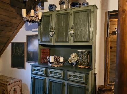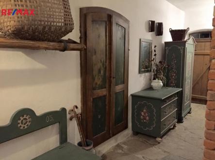 1.Částečně zapuštěné PP. Místnost určená k uskladnění otopu, sauna. Technická místnost, s bojlerem, pračka a sušička, zařízení pro ČOV, WC. 1. NP s přímým vstupem ze zahrady. Koupelna s vanou a toaletou. Chodba vede do centrální světnice, která slouží jako kuchyň i obývací prostor s velkým krbem (na dřevo i uhlí) s teplovzdušnými průduchy do 1PP a do všech horních podlaží, jeden průduch vytápí také koupelnu. Z obytné místnosti je vstup na rozlehlou zastřešenou terasu. Dále se zde nachází technická místnost s bojlerem a ovládáním čerpadla studny. 2. NP nabízí dvě samostatné ložnice a jednu velkorysou místnost, která je v současnosti využívána jako ateliér a herna. Prostor je připraven k vybudování dalšího kuchyňského koutu a má přímý vstup na zahradu. Díky tomu lze toto podlaží bez dalších zásadních úprav využít také jako samostatnou bytovou jednotku. 3. NP je půda. Z chodby 2. NP vede schodiště do 3. NP, které tvoří obytně upravený půdní prostor. Nacházejí se zde dvě prostorné, kompletně zrekonstruované místnosti. Tato jedinečná chalupa, původně historický špejchar, byla zakoupena v roce 2015 a následně prošla mimořádně citlivou a promyšlenou rekonstrukcí, jejímž cílem bylo navrátit objektu jeho původní charakter a duši. Rekonstrukce byla vedena s hlubokým respektem k historické hodnotě stavby a s důrazem na použití autentických materiálů a tradičních řemeslných postupů. Byla provedena nová elektroinstalace v celém domě. Zavedení denního i nočního proudu poskytuje vysoký komfort a provozní efektivitu, mimo jiné při využívání sauny. Výjimečnou hodnotu představuje vlastní vrtaná studna (43 m), zajišťující stabilní přísun vody mimořádné kvality. Unikátní poloha chalupy, obklopené několika potoky, je dále doplněna vlastní studánkou. Odpadní hospodářství je řešeno moderní čističkou odpadních vod,dimenzovanou až pro šest trvale žijících osob. Komfort bydlení zvyšují dva samostatné bojlery, které umožňují flexibilní využití objektu včetně možnosti vytvoření další bytové jednotky či exkluzivního ubytování pro hosty. Rekonstrukce kladla mimořádný důraz na autenticitu materiálů. Kámen použitý při obnově pochází přímo z lokality, dřevěné obklady a konstrukční prvky byly vyrobeny ze starého dřeva dovezeného z Německa z historických demolic. Celý objekt byl citlivě odizolován tak, aby byl zachován původní výraz stavby a zároveň splňoval nároky na současný komfort. Téměř všechny původní dveře byly zachovány a odborně restaurovány, včetně historických klik a kování. Okna ve druhém a třetím nadzemním podlaží jsou vyrobena před 5 lety, dřevěná a ctí rovněž historický ráz stavby. Na chodbě byl odkryt původní kamenný povrch podlahy, jehož součástí je i historický mlýnský kámen – detail, který dodává interiéru jedinečný a nezaměnitelný charakter. Tato nemovitost je výjimečným spojením historie, luxusu a absolutního soukromí v harmonii s přírodou a představuje ideální volbu pro náročného klienta hledajícího autentické bydlení s příběhem. Přijďte se k nám podívat .