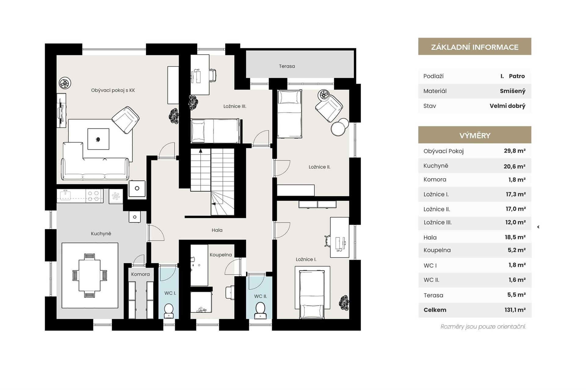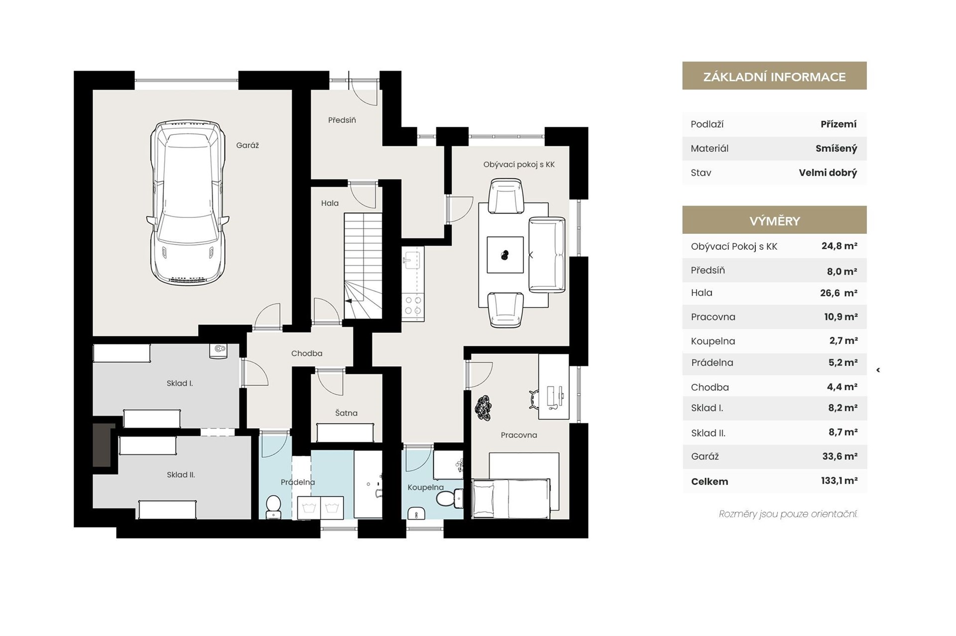 Hledáte dům, který nabídne dostatek prostoru pro celou rodinu, soukromí pro více generací a zároveň potenciál dalšího rozšíření? Ve Stráži u Domažlic nabízíme samostatně stojící, poctivě postavený rodinný dům s celkovou užitnou plochou 320 m², vhodný jak pro vícegenerační bydlení, tak pro velkorysé rodinné sídlo. Dům byl dokončen v roce 1997 a v letech 2006–2008 prošel modernizací. Po dlouhou dobu byl ve vlastnictví pečlivé majitelky, která o nemovitost pravidelně a svědomitě pečovala. Dům byl průběžně udržován, kontrolován z hlediska technického stavu, revizí i celkové kondice, díky čemuž je dnes ve velmi dobrém technickém stavu a připraven k okamžitému užívání bez nutnosti zásadních investic. Dispozičně je dům řešen jako třípodlažní: V přízemí (1. NP) se nachází samostatná obytná jednotka s obývacím pokojem a kuchyňským koutem, pracovna, koupelna a technické zázemí. Součástí je také prostorná garáž o výměře 33,6 m². Ve 2. NP je umístěna hlavní obytná část domu s dispozicí 4+1. Nabízí prostornou kuchyni, obývací pokoj, ložnice, šatnu a dvě terasy s výhledem do zahrady, které zajišťují dostatek světla i soukromí. Podkroví je aktuálně využíváno jako půdní prostor s několika místnostmi. Díky své velikosti a konstrukci nabízí možnost vybudování plnohodnotného obytného patra dle vlastních představ. Celková plocha pozemku činí 798 m², z toho 649 m² tvoří udržovaná zahrada. Dům je situován na okraji obce, což zajišťuje klidné rodinné bydlení bez rušivých vlivů. Zahrada je navržena pro nenáročnou údržbu a poskytuje dostatek prostoru pro relaxaci i volnočasové aktivity. Technické informace: – voda: veřejný vodovod – elektřina: 230/400 V – odpad: septik s možností budoucího napojení na obecní kanalizaci – vytápění: elektrické podlahové topení v kombinaci se dvěma krbovými kamny na tuhá paliva – parkování: garáž v domě + dvě venkovní parkovací místa Obec Stráž se nachází pouhé 2 km od okresního města Domažlice, což zajišťuje rychlou dostupnost veškeré občanské vybavenosti a zároveň klidné bydlení v dosahu přírody. K dispozici máme také virtuální prohlídku (Matterport), kterou vám na vyžádání rádi zašleme ještě před osobní prohlídkou. Pokud hledáte dům s dostatkem prostoru, flexibilním využitím a dlouhodobým potenciálem, tato nemovitost rozhodně stojí za osobní prohlídku. Rád vás domem provedu a pomohu i s vyřešením financování.