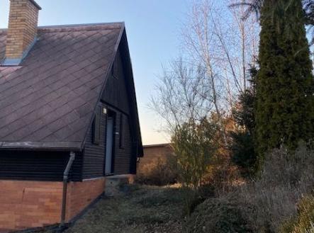 Ve výhradním zastoupení majitele nabízíme k prodeji chatu v klidné chatové oblasti na okraji obce Stříbrná Skalice, okr. Praha východ. V přízemí se nachází předsíň, koupelna se sprchovým koutem a toaletou (3,55 m2), obývací pokoj a kuchyňský kout (18 m2), z pokoje je vstup na terasu (17 m2), která je orientovaná na jižní stranu. V podkroví jsou dvě malé ložnice. Chata je podsklepená, první část lze využít jako garáž 16 m2, další část tvoří sklep 26 m2. Chata je dřevěná, základ je beton, kolaudace v r. 2001, zastavěná plocha je 52 m2, zahrada 333 m2, pozemek je mírně svažitý. Vytápění je na tuhá paliva, pitná voda je vedena ze společného zdroje, náklady činí 1.200,Kč/rok. Odpad je sveden do septiku, před chatou je přípojka na obecní kanalizaci.