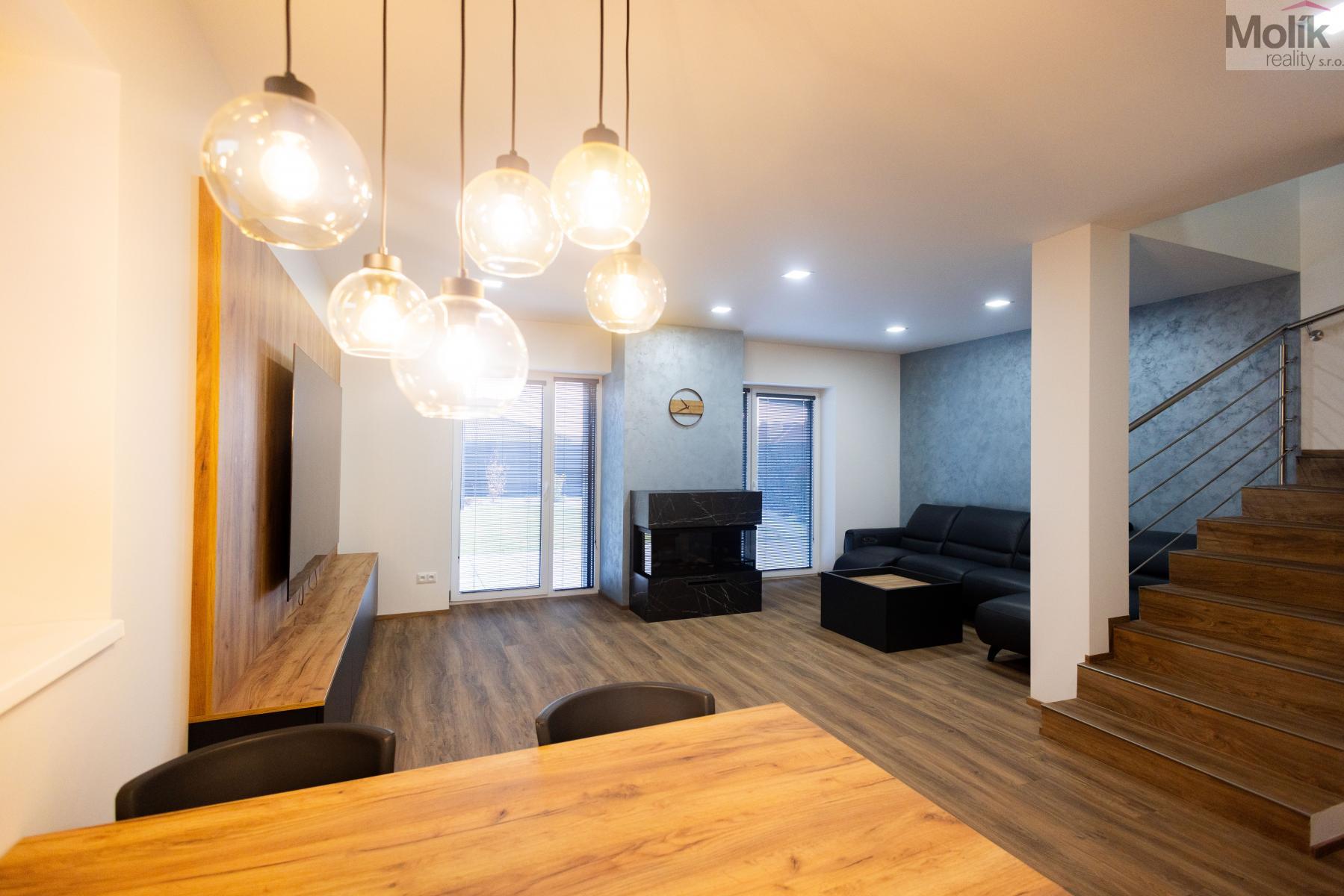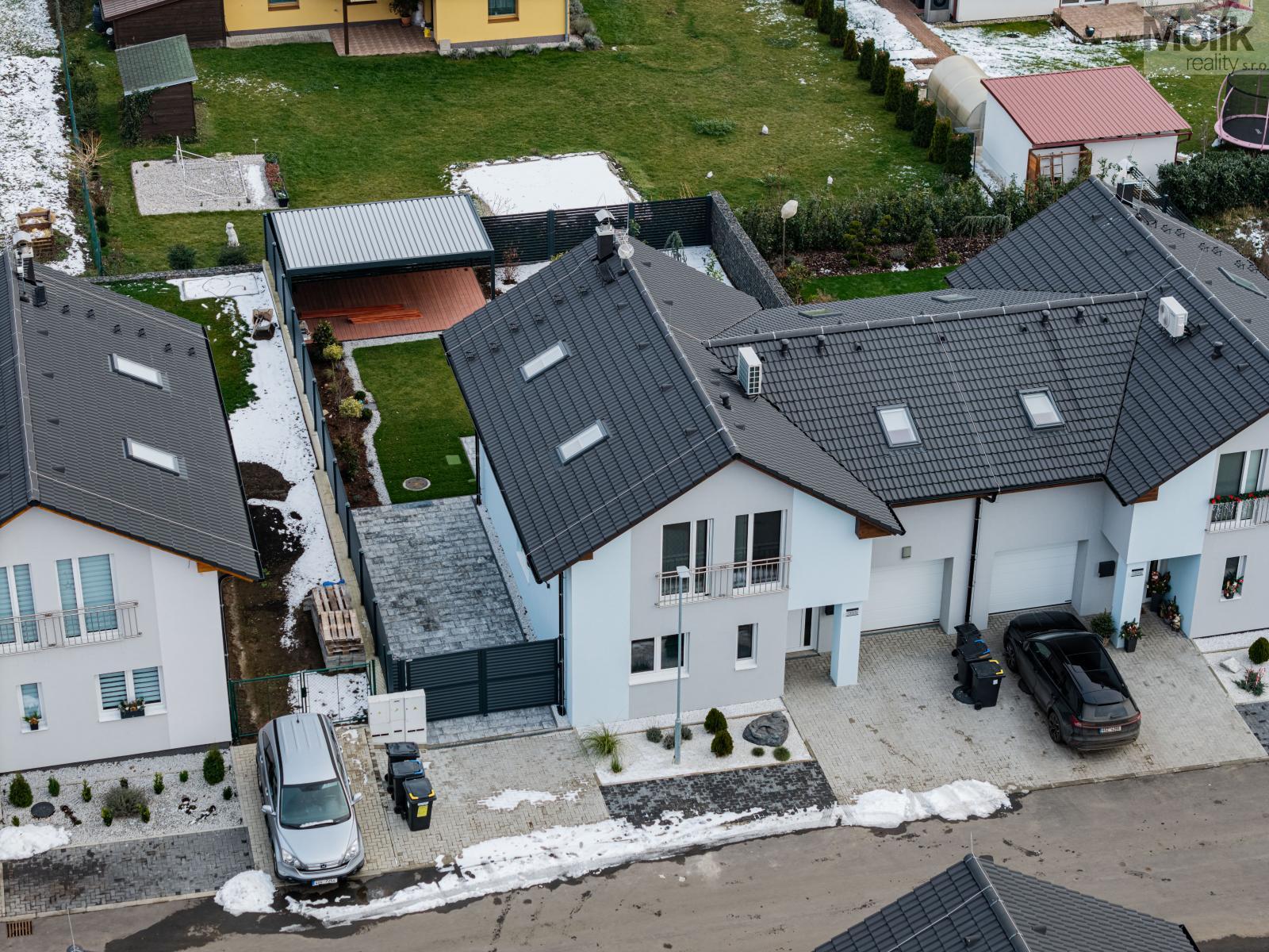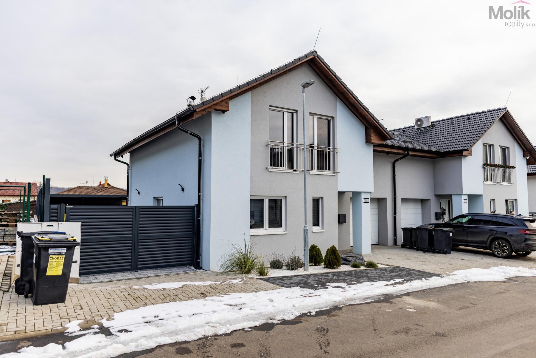 Nabízíme k prodeji krásný dům 5kk s garáží ve Strupčicích nad náměstím. Obytná plocha domu včetně garáže je 180 m2 a zahrada má 245 m2. Teplo domova je řešeno podlahovým topením, jak přízemí tak i v patře. Každá místnost má vlastní ovládaní teploty, tepelné čerpadlo. Jedná se o dvojdomek v klidné bezpečné lokalitě, ve slepé ulici. Dům je kompletně vybaven. Plastová okna i dveře včetně žaluzií a s roletami proti hmyzu. Přízemí: garáž s prádelnou včetně pračky a sušičky, vestavěné skříně a regály, el. sekční vrata, průchozí vstupní hala s vestavěnou skříní, WC s umyvadlem, špajz, kuchyně včetně spotřebičů a obývací pokoj s 3D krbem, el. polohovatelnou sedačkou, stolkem, nábytkem, jídelním stolem včetně židlí a to vše od Hanáka, TV s úhlopříčkou 2m. V patře se nachází 4 zařízené pokoje včetně nábytku, skříní a postelí s matracemi, to vše vyrobeno na zakázku, každý pokoj má klimatizaci, koupelna s WC, vanou, sprchový koutem a umyvadlem, technická místnost. Žaluziový plot včetně el. brány, bioklimatická pergola s plastwood podlahou, led podsvícení, el. naklápěcí střešní žaluzie a el. boční rolety. Gabionový plot mezi sousedním domem. Zahrada na zakázku včetně rostlin, automatického zavlažování s časovačem a automatickou robotickou sekačkou se základnou pro dobití. Na domě je el. roleta 6x4m s proti větrovým čidlem na automatické zatažení. Kamerový systém s nočním viděním, zabezpečení od Jablotronu se sirénou a kouřový detektor. V obci je školka, základní škola, plavecký bazén, sportovní hala, fotbalové hřiště, obchody a další. Autem do Mostu a Chomutova cca 10min. Dům je nadstandardně vybaven, nutno vidět. Veškeré vybavení v domě je vyrobeno kompletně na míru. Po domluvě možnost dodání detailního vyčíslení všech položek, které byly zhotoveny na míru. Nemovitost nebyla nikdy obydlena. Dům je volný ihned. Možno financovat jinou nemovitostí na protiúčet (dům, byt, zahrada, garáž). Více informací u uvedeného makléře 7 dní v týdnu.