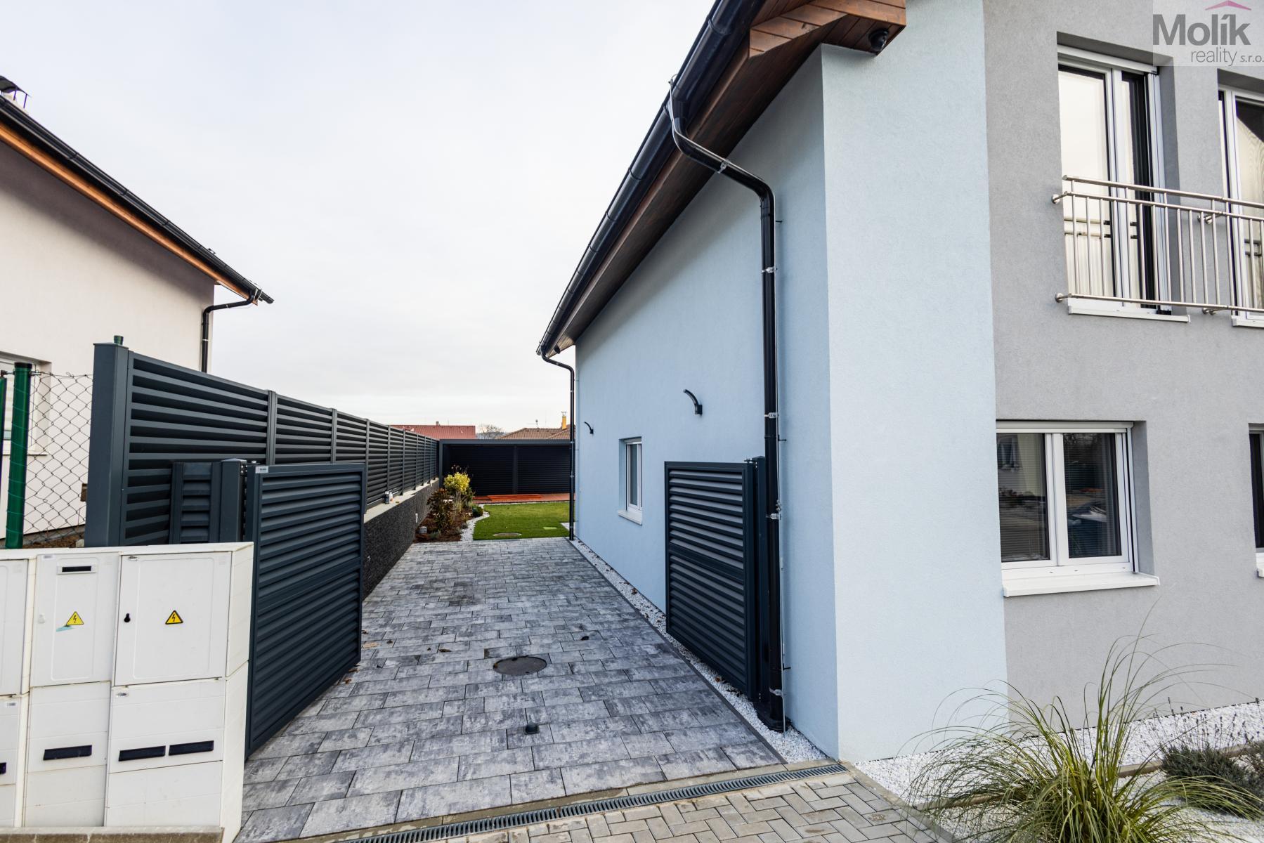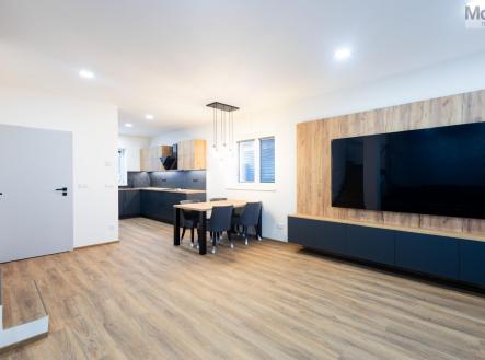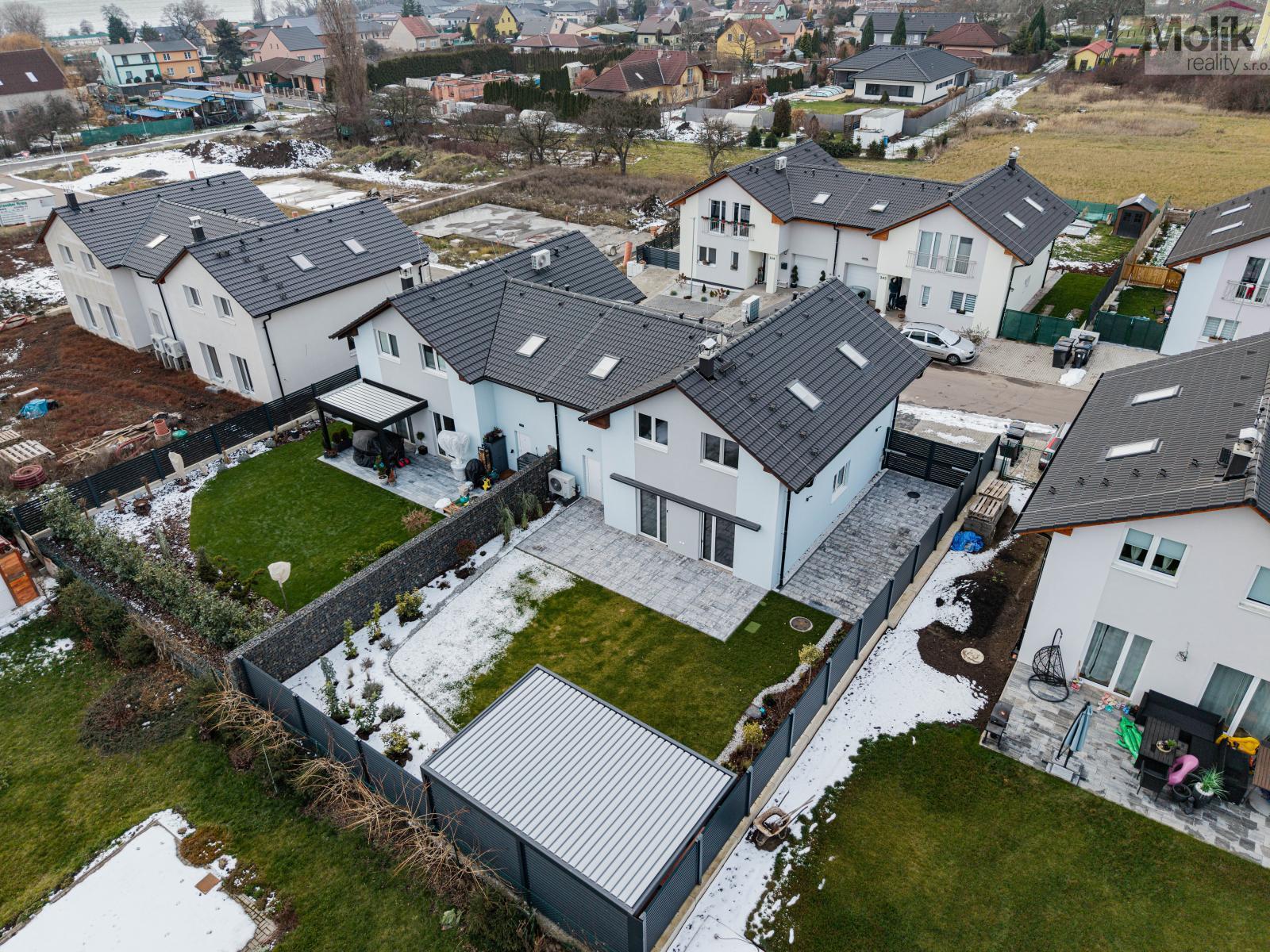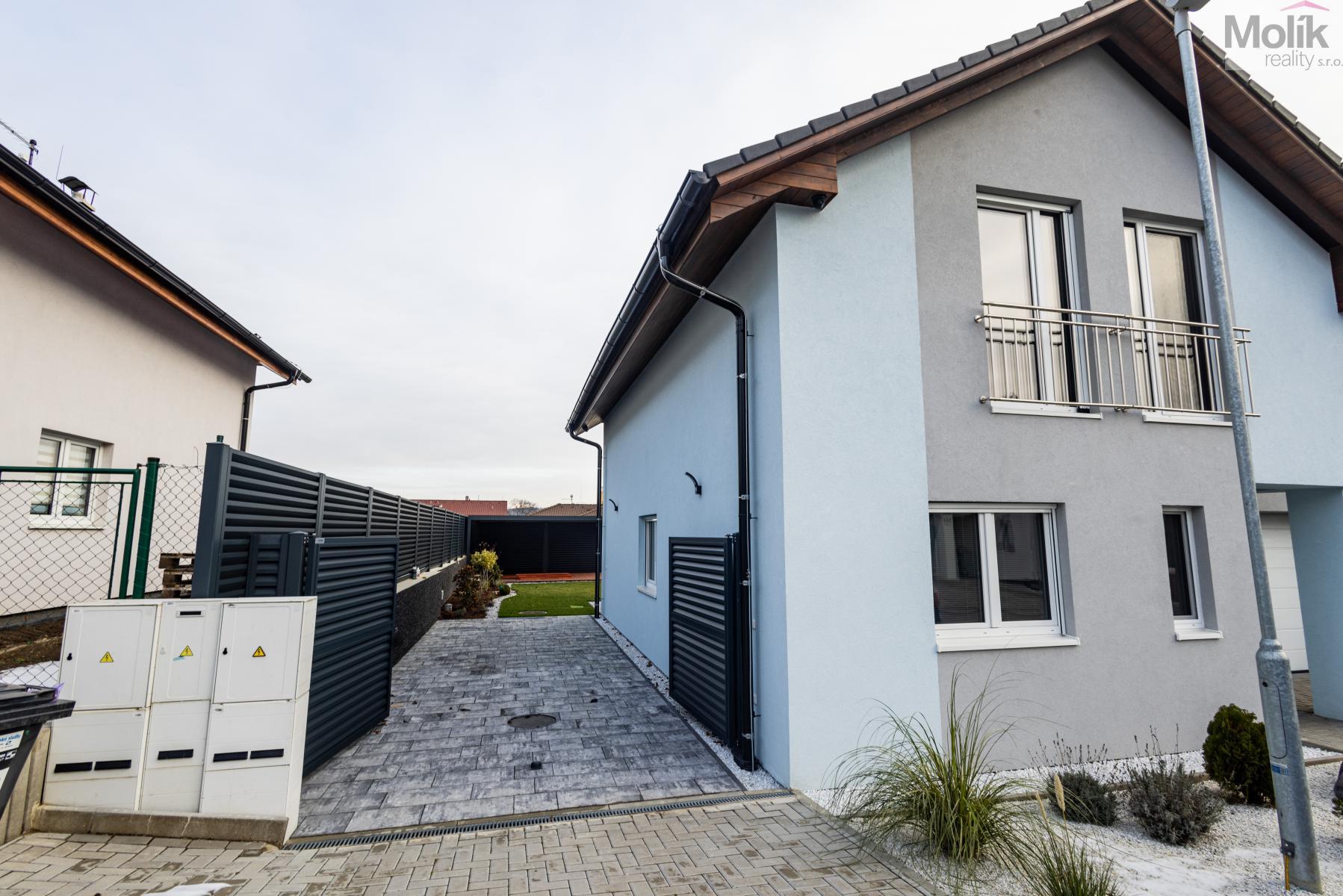 Nabízíme k prodeji krásný dům 5kk s garáží ve Strupčicích nad náměstím. Obytná plocha domu včetně garáže je 180 m2 a zahrada má 245 m2. Teplo domova je řešeno podlahovým topením, jak přízemí tak i v patře. Každá místnost má vlastní ovládaní teploty, tepelné čerpadlo. Jedná se o dvojdomek v klidné bezpečné lokalitě, ve slepé ulici. Dům je kompletně vybaven. Plastová okna i dveře včetně žaluzií a s roletami proti hmyzu. Přízemí: garáž s prádelnou včetně pračky a sušičky, vestavěné skříně a regály, el. sekční vrata, průchozí vstupní hala s vestavěnou skříní, WC s umyvadlem, špajz, kuchyně včetně spotřebičů a obývací pokoj s 3D krbem, el. polohovatelnou sedačkou, stolkem, nábytkem, jídelním stolem včetně židlí a to vše od Hanáka, TV s úhlopříčkou 2m. V patře se nachází 4 zařízené pokoje včetně nábytku, skříní a postelí s matracemi, to vše vyrobeno na zakázku, každý pokoj má klimatizaci, koupelna s WC, vanou, sprchový koutem a umyvadlem, technická místnost. Žaluziový plot včetně el. brány, bioklimatická pergola s plastwood podlahou, led podsvícení, el. naklápěcí střešní žaluzie a el. boční rolety. Gabionový plot mezi sousedním domem. Zahrada na zakázku včetně rostlin, automatického zavlažování s časovačem a automatickou robotickou sekačkou se základnou pro dobití. Na domě je el. roleta 6x4m s proti větrovým čidlem na automatické zatažení. Kamerový systém s nočním viděním, zabezpečení od Jablotronu se sirénou a kouřový detektor. V obci je školka, základní škola, plavecký bazén, sportovní hala, fotbalové hřiště, obchody a další. Autem do Mostu a Chomutova cca 10min. Dům je nadstandardně vybaven, nutno vidět. Veškeré vybavení v domě je vyrobeno kompletně na míru. Po domluvě možnost dodání detailního vyčíslení všech položek, které byly zhotoveny na míru. Nemovitost nebyla nikdy obydlena. Dům je volný ihned. Možno financovat jinou nemovitostí na protiúčet (dům, byt, zahrada, garáž). Více informací u uvedeného makléře 7 dní v týdnu.