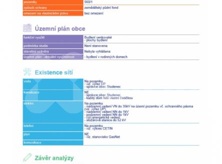 Bidli Vám nabízí prodej pozemku pro výstavbu rodinného domu v Podkrkonošské obci Studenec. Lokalita je vhodná k trvalému bydlení, ale i investici, či na výstavbu rekreačního sídla pro milovníky hor, cyklistiky a lyžování s krátkým dojezdem do Špindlerova Mlýna a Vrchlabím hned za kopcem. Pozemek disponuje výměrou 1614m2, které budou následně odděleny novým geometrickým plánem (možnost oddělení menší části pozemku) a je vhodný k výstavbě rodinného domu s koeficientem zastavěnosti 0,3, dle analýzy a územního plánu. Elektřina a veřejný vodovod na pozemku s možností připojení. Ideální také pro Tiny House. Prohlédnout katalog našich domů můžete na našich webových stránkách bidli.cz - Stavby. Pro více podrobnějších informací či sjednání nezávazné prohlídky nás kdykoli kontaktujte. V případě zájmu Vám zdarma zajistíme nabídku financování hypotečním úvěrem za nejvýhodnějších podmínek na trhu.