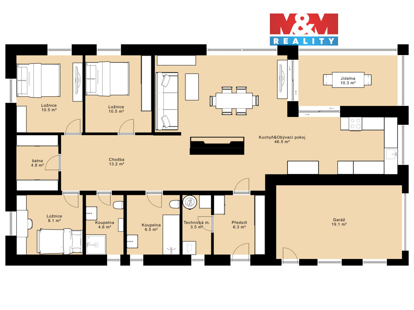 Prodej novostavby RD v Suchdole nad Lužnicí. Dům byl zkolaudován v roce 2019 a nachází se v klidné části. města. Velikostně je to 4 + kk o podlahové ploše 114 m2 s dvěma koupelnami, garáží a zasklenou terasou (10 m2). Na střeše je 25 solárních panelů, které slouží k podlahovému vytápění (21 ks) a ohřevu vody (4 ks). Díky úložným a virtuálním bateriím jsou nízké náklady na bydlení. Roční provozní náklady pro 2 osoby jsou 35.353,- Kč, což je celkem 2.946,- Kč za měsíc. V obývacím pokoji se nachází krbová kamna, která vytopí celý objekt. Střecha je z vazníků a střešních tašek BRAMAC. Na pozemku se nachází malý zahradní domek. Zahrada je velmi dobře udržovaná a nachází se zde i několik ovocných stromů. Celková plocha pozemku činí 773 m², užitná plocha domu je 123 m².Veškeré vybavení RD je součástí kupní ceny. V Suchdole nad Lužnicí je veškerá občanská vybavenost. Ideální místo pro cykloturistiku, houbaření, koupání v blízkých pískovnách, rybaření. Doporučuji prohlídku.