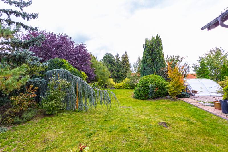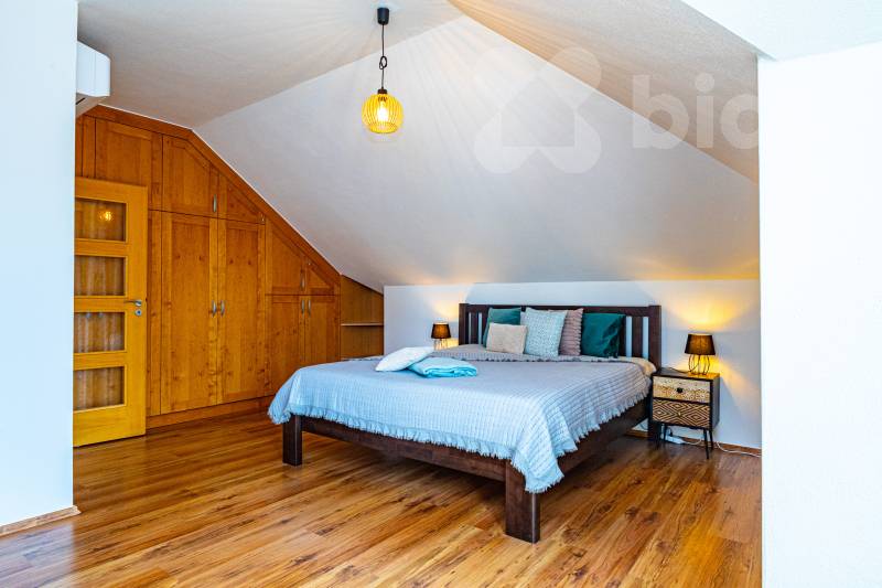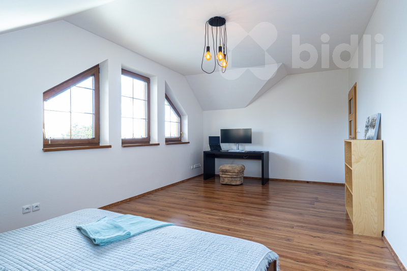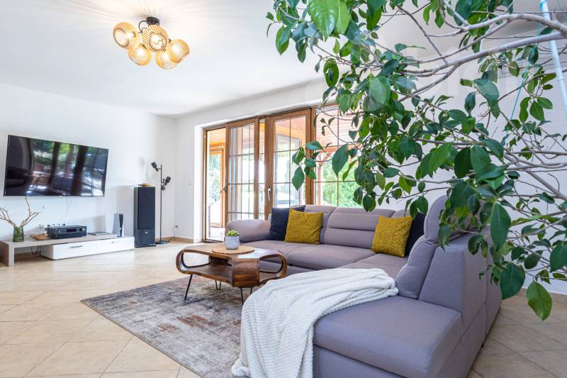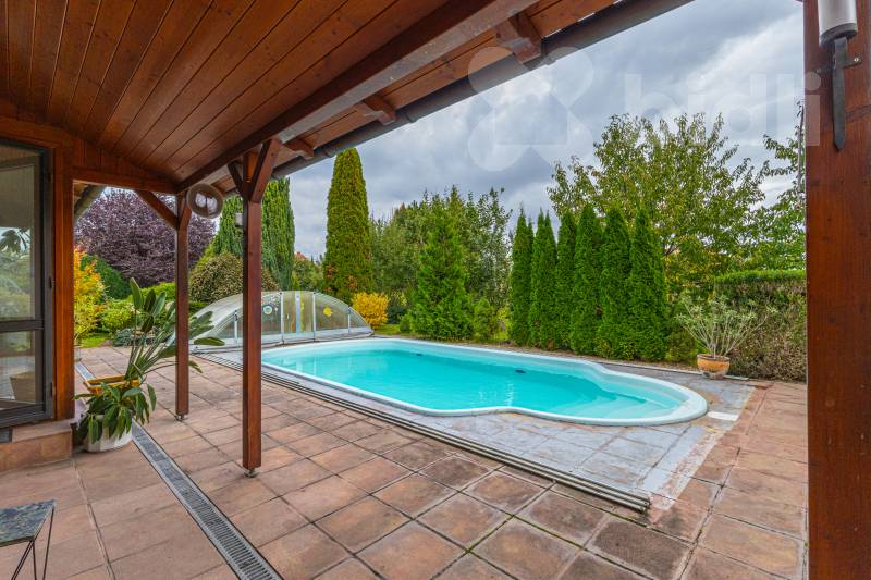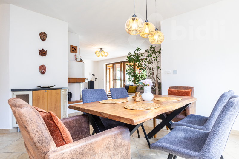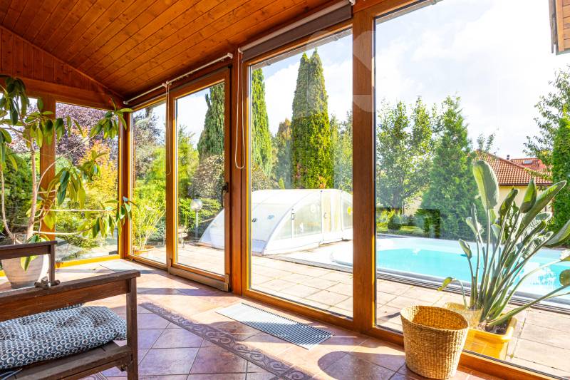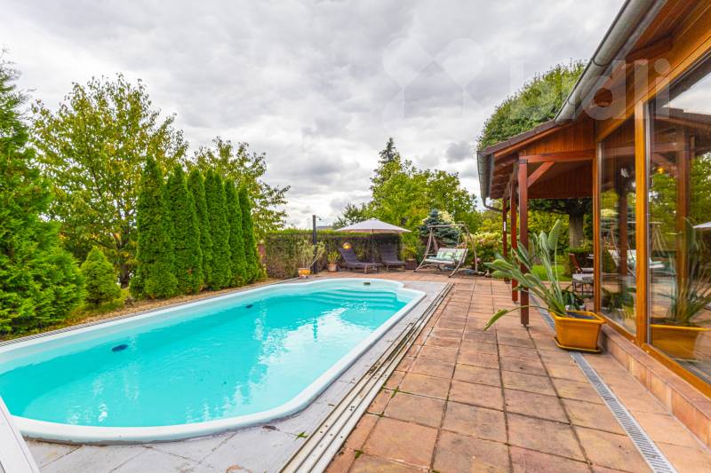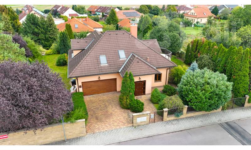 Hledáte prostorné a komfortní bydlení, či dům pro rekreaci umístěný do jedinečné atmosféry jižní Moravy? Najdete ho 3 km od Znojma, kde se v naprostém soukromí, díky vybavení i charakteru této výjimečné nemovitosti, budete cítit jako na nekončící úžasné dovolené. Exkluzivně nabízíme prodej mimořádného rodinného domu 5+kk, s prostornou dvojgaráží, krytým bazénem, celkovou podlahovou plochou 240 m2, na udržovaném pozemku 1411 m2. Nemovitost vyniká kvalitním zpracováním, promyšleným a atypickým dispozičním řešením s důrazem na maximální komfort. Interiér v přízemí nabízí nadstandardní obytný prostor s krbem, kuchyňským koutem, jídelnou a přímím vstupem do zimní zahrady, na terasu a zatravněný pozemek. Také tělocvičnu, prostornou garáž, technickou místnost, koupelnu s keramickými obklady a toaletou. Monumentální schodiště Vás přivede do patra, kde jsou tři prostorné neprůchozí pokoje se samostatnými vstupy (dvě útulné ložnice, přístup na terasu a praktická pracovna s kulečníkovým stolem), velká koupelna s přístupem na terasu, rohovou vanou a dvěma umyvadly i další samostatná toaleta. Pozemek a jeho přidaná hodnota - Kompletně oplocený pozemek se třemi vjezdy: bezpečné místo pro Vás i Vaše zaparkovaná vozidla na vydlážděném parkovacím stání za el. ovládanou bránou před dvojgaráží. Další brány umožňují stání většího počtu vozidel v zadní části pozemku. - Terasa a posezení: nerušený odpočinek i zábava v naprostém soukromí. - Zapuštěný krytý bazén s tepelným čerpadlem: ideální pro osvěžení a sportovní vyžití ve vlastní oáze klidu. - Zahrada se zavlažováním, osvětlením a okrasnými dřevinami: romantické prvky, které podtrhují přítomné kouzlo. Poskytuje možnost dalšího rozvoje a pěstování oblíbených plodin. - Studna s rozvodem vody: úsporné řešení provozu domu, bazénu i zahrady. Atraktivní lokalita Znojemsko Srdce jihomoravské vinařské tradice, místo známé svou přátelskou atmosférou, kulturním děním a kvalitním zázemím. Lokalita nabízí: - Kompletní občanskou vybavenost, bezpočet služeb pro veřejnost, lesy, rybníky a mnohem víc v pěší dostupnosti. - Klidné a bezpečné prostředí pro rodinný život. - Blízkost přírody, vinohradů a cyklostezek pro rekreační i každodenní cestování po okolí. Výborná dopravní dostupnost - autem i veřejnou dopravou Zaujala Vás tato nabídka? Nabízíme jednodušší možnost financování nemovitosti. Neváhejte mě kontaktovat pro více informací nebo sjednání prohlídky. Rád Vám osobně představím tuto jedinečnou nemovitost, která nabízí harmonické spojení praktické architektury, moderního bydlení a půvabu jižní Moravy. Uvedené výměry jsou přibližné a mají pouze informativní charakter. Energetický štítek nebyl dodán, proto uvádíme třídu G.