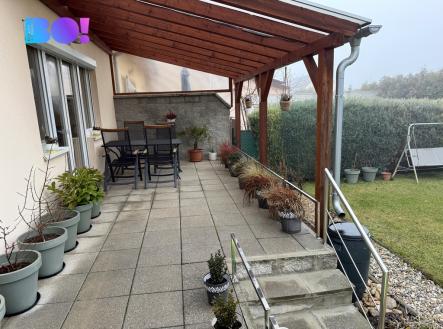 BO! Vám exkluzivně nabízí k prodeji rodinný dům s garáží o dispozici 5+kk v Suchohrdlech na ulici Třešňová, okres Znojmo. V přízemí domu je chodba se vstupem do prostorného obývacího pokoje s kuchyňským koutem. V přízemí je také sprchový kout a WC, z chodby také přímo vstup do garáže, vedle které je i technická místnost. Z obývacího pokoje vstup na zastřešenou terasu s posezením a na zahradu. V prvním patře domu jsou čtyři pokoje, komora, chodba, koupelna s vanou a WC. Vytápění je v domě plynovým kotlem umístěném v technické místnosti s rozvodem do radiátorů a v kuchyňském koutě i podlahové vytápění, nebo krbovými kamny, které jsou v obývacím pokoji. Dům je zateplený a ve velmi dobrém stavu. Je napojen na veškeré inženýrské sítě - plyn, elektřinu, veřejný vodovod i obecní kanalizaci. Na udržované a útulné zahradě je terasa s posezením, se vstupem i z obývacího pokoje. Na zahradu je také vjezd vedle domu přímo z ulice. Velkou výhodou jsou i možnosti parkování, které lze v garáži, na pozemku, nebo před domem. Suchohrdly mají výbornou dostupnost do Znojma. V blízkosti je základní škola i mateřská školka a další občanské vybavenosti. Máte zájem? Zavolejte nám. Rádi Vám pomůžeme i s financováním. Bližší informace Vám rád sdělím na prohlídce nemovitosti.