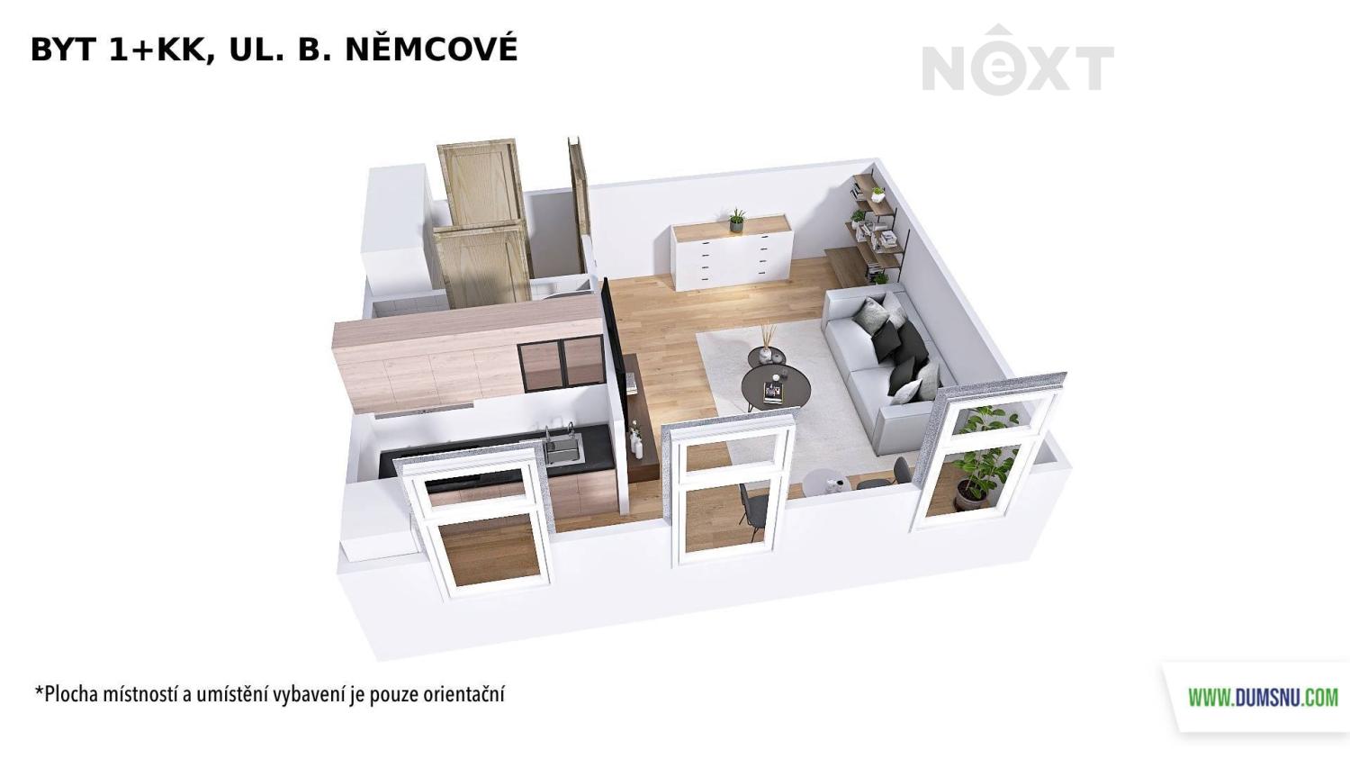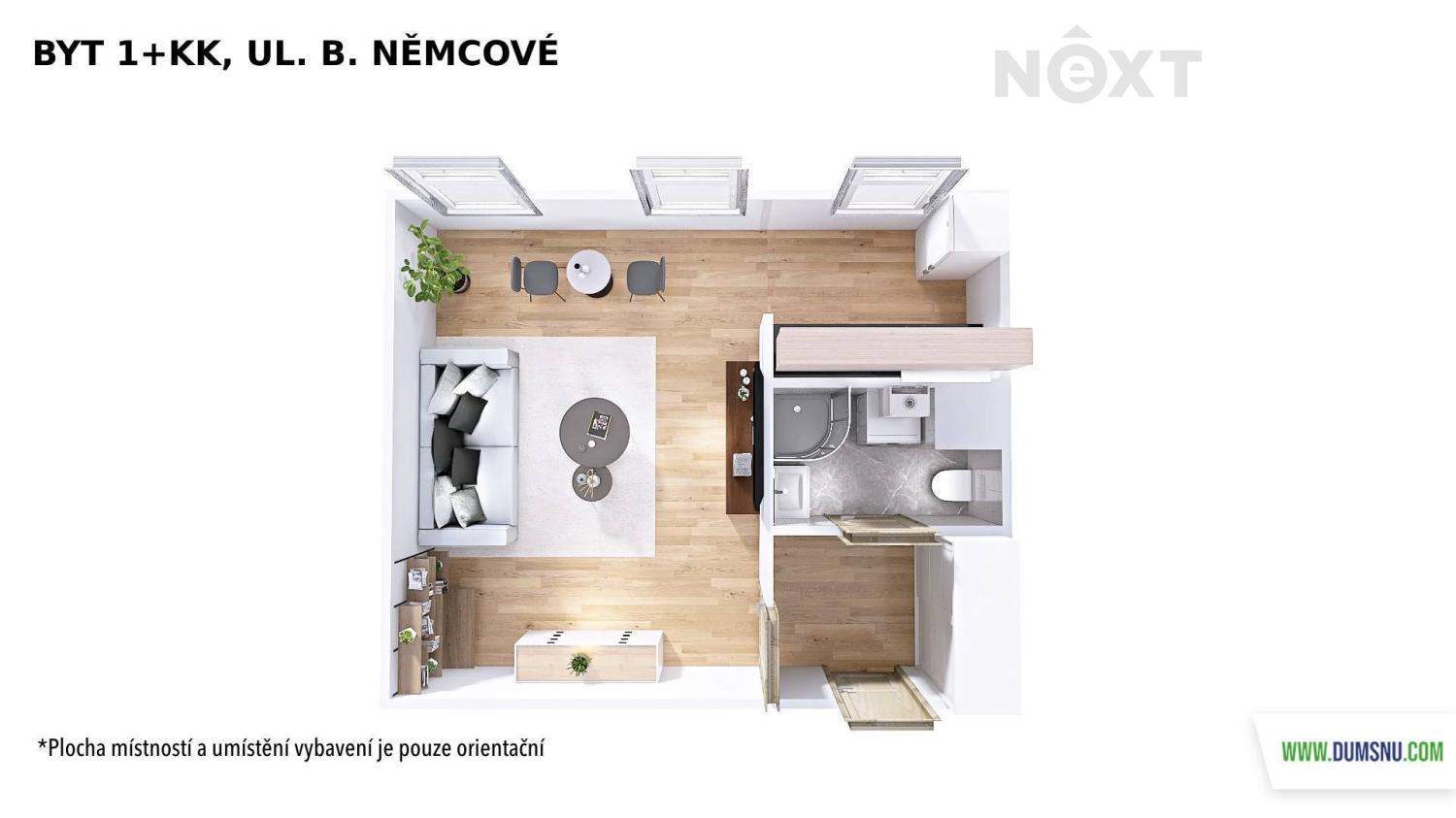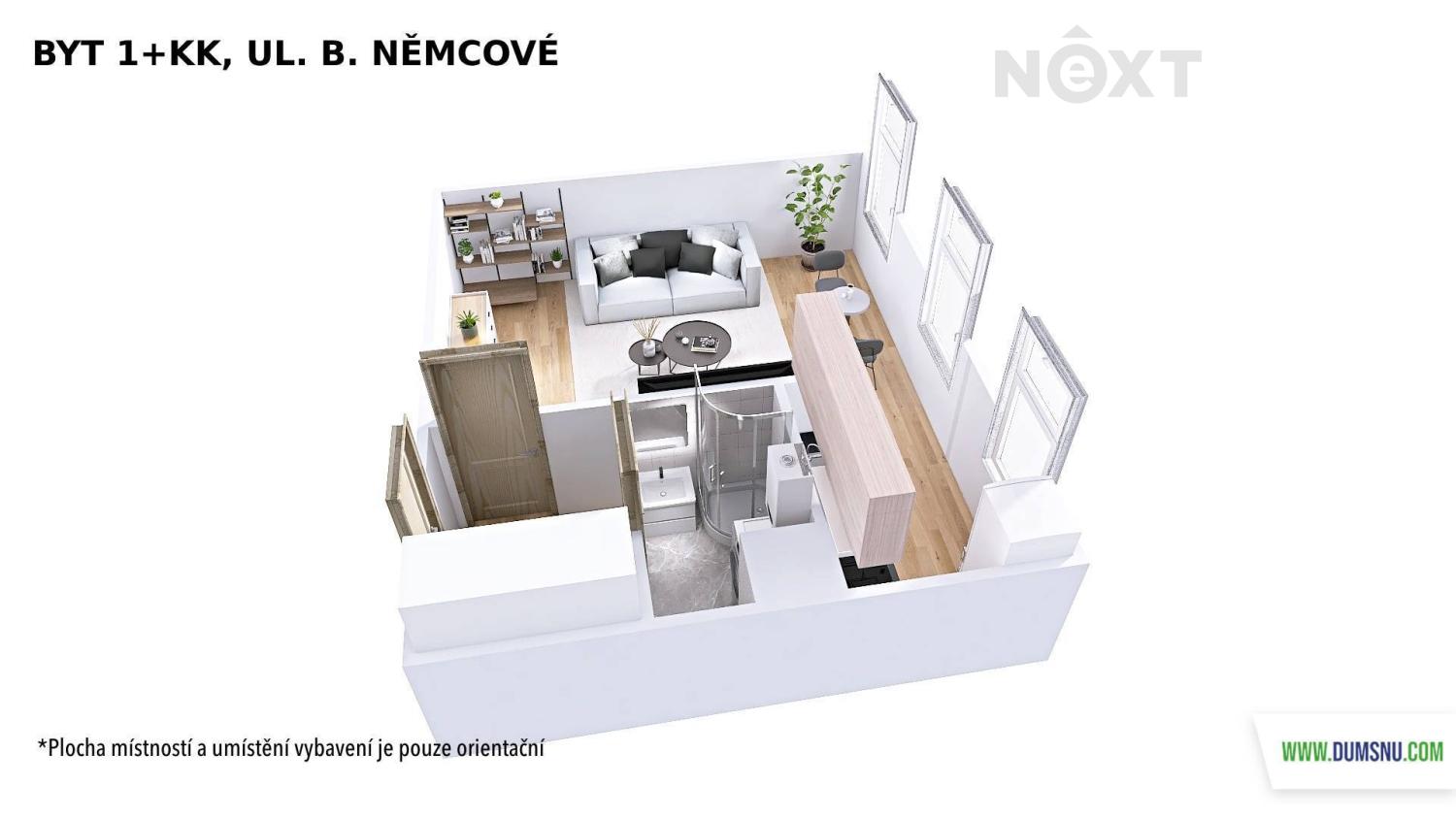 Hledáte moderní a útulné bydlení v klidné lokalitě, přesto s rychlou dostupností do centra? Právě pro vás je tento zrekonstruovaný byt ideální volbou – ať už hledáte své první bydlení, nebo pohodlný domov pro dva. Byt o dispozici 1+kk a výměře 32 m² se nachází ve 3. nadzemním podlaží cihlového domu bez výtahu. Díky zdařilé rekonstrukci nabízí čistý, světlý interiér a příjemnou atmosféru. Dispozičně je byt řešen velmi prakticky – vstupní chodba s prostornou vestavěnou skříní plynule navazuje na hlavní obytný prostor s vkusně řešeným kuchyňským koutem. Samozřejmostí je koupelna se sprchovým koutem, toaletou a místem na pračku. Vytápění je zajištěno plynovým topením WAW, ohřev vody elektrickým bojlerem. K bytu je k dispozici také společný dvorek, který mohou využívat všichni obyvatelé domu – ideální místo na chvilku klidu nebo posezení na čerstvém vzduchu. Měsíční náklady na bydlení: • nájemné: 8.500 Kč • voda: 500 Kč/os. • elektřinu (cca 1.500 Kč) a plyn (cca 1.700 Kč) si nájemník přepíše na sebe. Vratná kauce činí 20.000 Kč, odměna realitní kanceláři 10.000 Kč + DPH. Byt je k dispozici od 1.4. a je určen k dlouhodobému pronájmu. Pokud vás nabídka zaujala, ozvěte se a domluvíme si prohlídku. Pro komunikaci uvádějte evidenční číslo zakázky N116333.