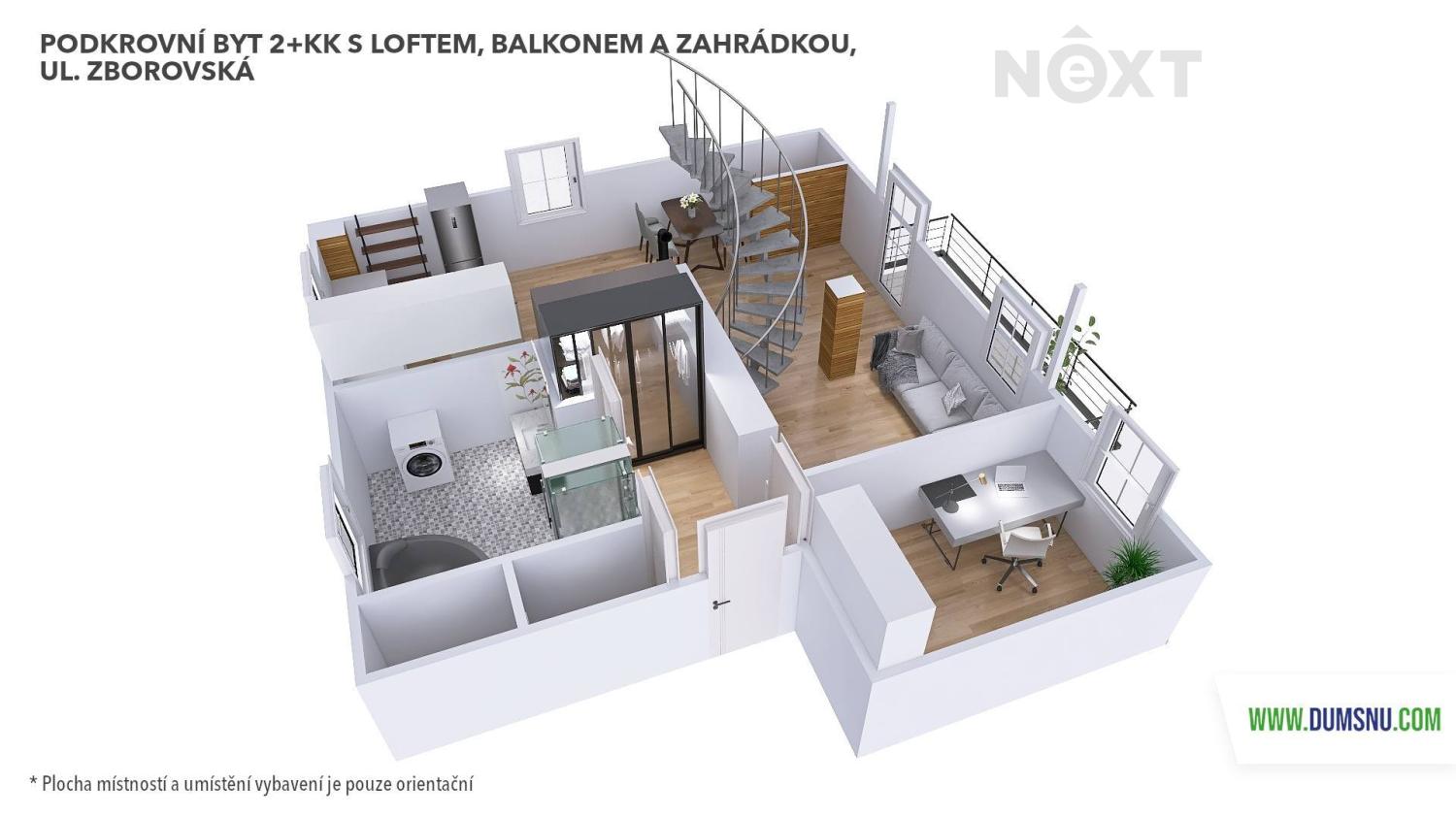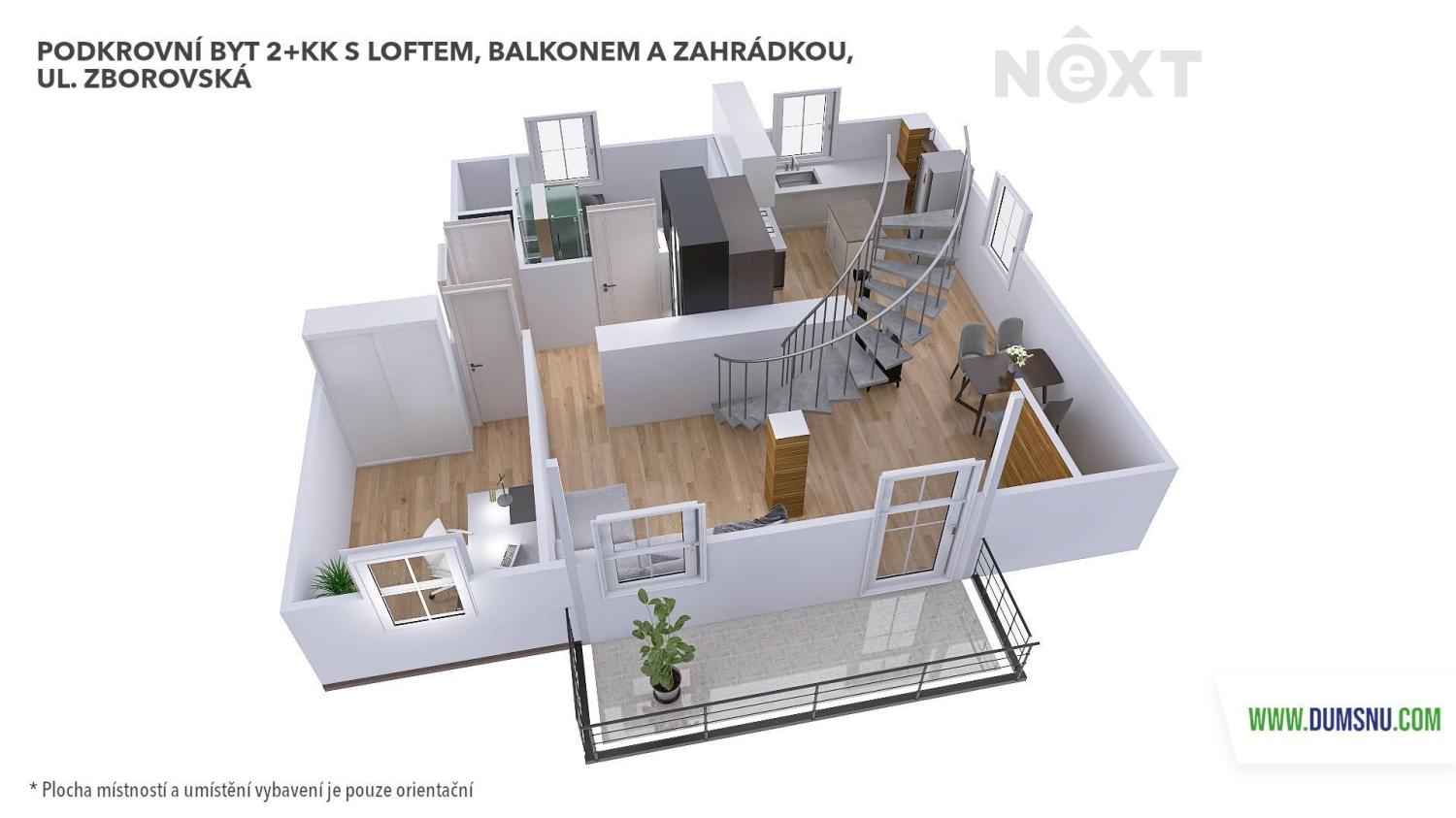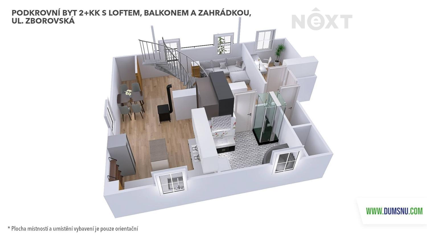 Hledáte k pronájmu něco opravdu specifického? Tak to vás tento byt po rekonstrukci ve velmi zajímavém designu s „nebeským předpokojem“ a zahrádkou určitě zaujme! Byt s podlahovou plochou 83 m2 se nachází v 3.NP (nejvyšším patře) cihlového domu v klidné lokalitě blízko centra města. Chodba, v níž se nachází vestavěná skříň se zrcadlem, je průchozí do všech místností. V koupelně najdete sprchový kout i vanu, umyvadlovou skříňku se zrcadlem a prostor na pračku. WC je zvlášť. Část obývacího pokoje tvoří na míru vyrobená kuchyňská linka s vestavěnými spotřebiči jako je varná deska, elektrická trouba a myčka. Z něj vystoupáte do patýrka nebo vyjdete na balkon. Byt je vytápěn elektrickými přímotopy s možností dotápět kotlem na dřevo v obývacím pokoji, můžete tak výrazně ušetřit za energie. Příslušenství bytu tvoří zahrádka za domem o velikosti 77 m2, prostor u domu na uskladnění dřeva a sklep. Dům se nachází v klidné ulici Zborovská, kde je parkování možné v okolí domu. Nájemné je stanoveno na 15.000 Kč + cca 4.000 Kč tvoří zálohy na energie spojené s užíváním bytu. Vratná kauce činí 30.000 Kč a provize realitní kanceláři 15.000 Kč + DPH. Byt bude k dispozici od 1.1.2026. Pro komunikaci uvádějte evidenční číslo zakázky N115142.