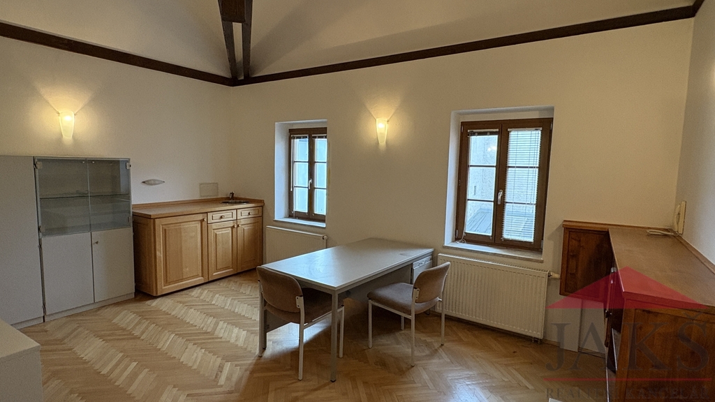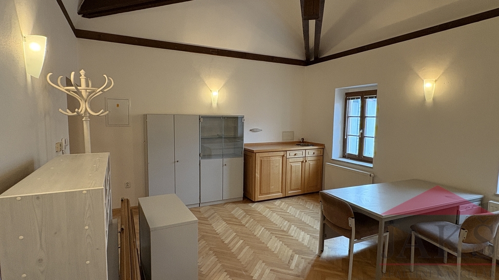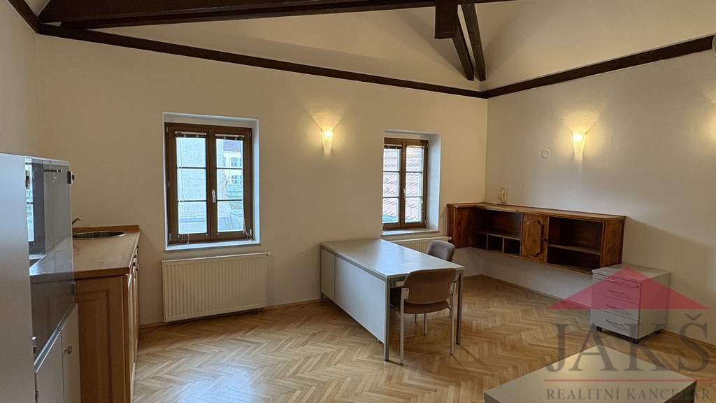 Nabízíme do pronájmu částečně zařízenou kancelář (nebo provozovna, například „péče o tělo“) o výměře 21,9 m2, situovanou ve 3.NP v kompletně zrekonstruovaném, reprezentativním, historickém domě „pasáž Fialka“ přímo na náměstí Svobody v Sušici. Popis: vstup z náměstí, společné schodiště do 3.NP, WC s umyvadlem přístupné z chodby, samostatná částečně zařízená kancelář/provozovna 21,9 m2 s kuchyňkou (dřez s teplou vodou - průtokový ohřívač). Vybavení kanceláře: repasované parkety, osvětlení, alarm, požární hlásiče, domácí telefon, pokojový termostat, kancelářský nábytek (kancelářský stůl, 4x židle, skříně, věšák...). Podlahová plocha: 21,9 m2 Vytápění: ÚT – dálkové; Parkování před domem na náměstí na parkovací kartu nebo za domem v ulici. Platby pronájmu měsíčně: nájem 5.000 Kč + zálohy za topení 350 Kč + voda (1x za rok podle vodoměru) + elektřina (přímo dodavateli) + internet (Fixnet). Vratná kauce 10.000 Kč. Využití: kancelář, provozovna, „péče o tělo“ – masážní salón, apod... Hledáme solventního nájemníka, který hledá reprezentativní kancelář ve stylovém, měšťanském domě na lukrativní adrese, ležící v krásném historickém domě přímo na náměstí Svobody v Sušici. Nutno vidět! K dispozici od 1.1. 2026!