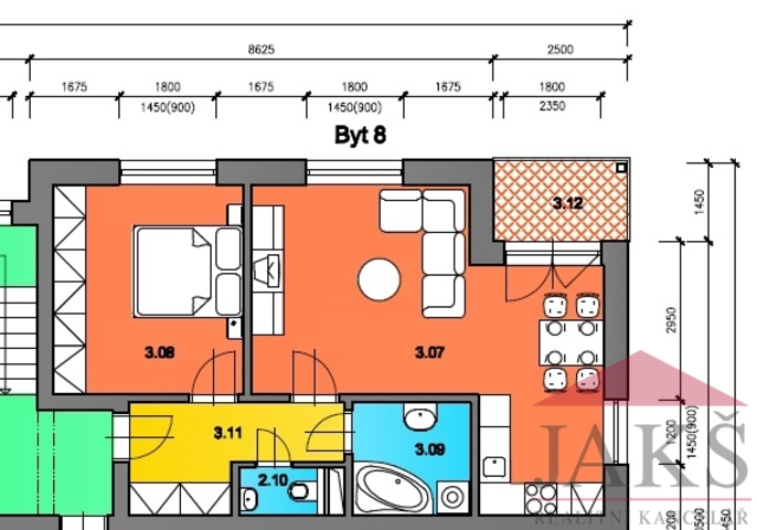 Sušice - P. Ferdy; byt 2+kk (52,6 m2) s lodžií (3,7 m2)