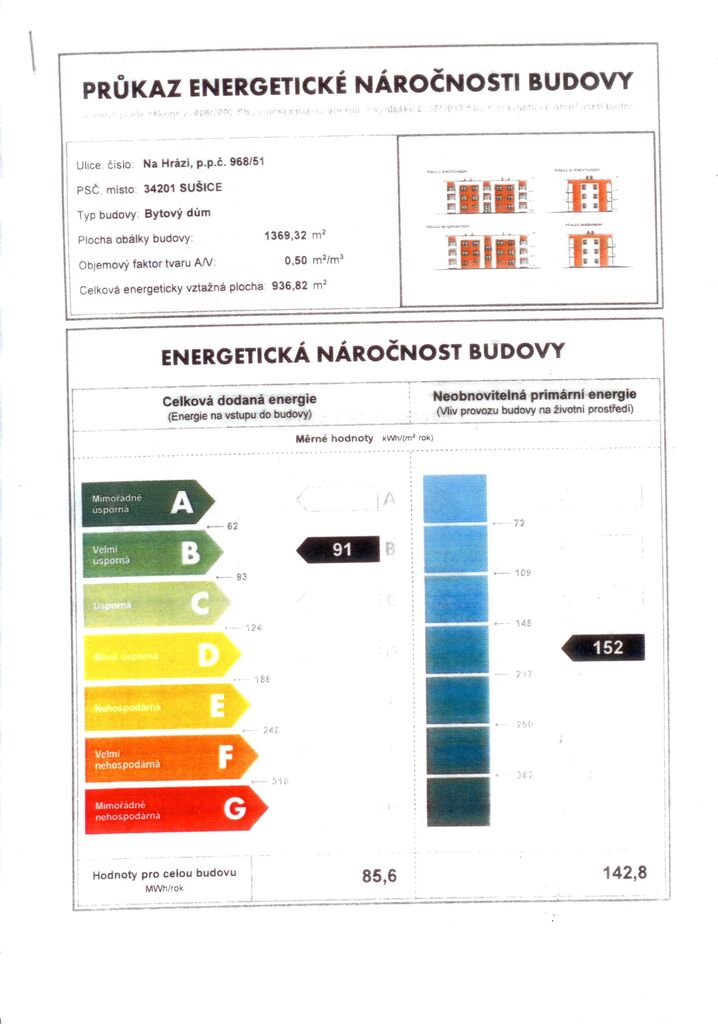 Nabízíme na prodej pěkný, zánovní byt 2+kk (52,6 m2) s lodžií (3,7 m2), sklepem (1,5 m2) a parkovacím místem na pozemku SVBJ, situovaný v 3.NP zděného bytového domu (kolaudace v r. 2017), ležícího v oblíbené lokalitě v širším centru města Sušice v nové slepé ulici Pátera Ferdy (dříve Na Hrázi). Popis: chodba 6 m2 (šatní skříň), sam. WC 1,3 m2 s umyv., koupelna 4,6 m2 (sprchový kout, umyv. se zrcadlem a skříňkou, topný žebřík, vývody na pračku a el. boiler), ložnice 13,7 m2, prostorný obývací pokoj 27 m2 s kuch. koutem (kuch. linka s vest. spotřebiči: HV trouba, sklo-ker. deska a digestoř) a vstupem skrze dvojité franc. okno na zastřeš. rohovou lodžii 3,7 m2. K bytu náleží sklepní kóje 1,5 m2 v suterénu domu, užívání společné kolárny a jedno vyhrazené parkovací stání na pozemku SVBJ. Vybavení: plastová okna s parapety, žaluziemi a sítěmi proti hmyzu, garnýže, laminátové podlahy, laminátové dveře, protipožární hlásič, zvonek a schránka... Celková plocha bytu vč. sklepa a lodžie: 57,8 m2; Podlahová plocha bytu: 52,6 m2; Vytápění TUV: ÚT – společný moderní plynový kotel, pokojový termostat a termohlavice; Náklady na bydlení měsíčně: služby 3.600 Kč (topení, vodné/stočné, fond oprav, správa, pojištění, el. spol. prostor...) + zálohově elektřina. Moderní byt ve vyhledávané lokalitě v těsné blízkosti samotného centra/náměstí Svobody v Sušici s komplexní občanskou vybaveností a přitom v dosahu krásné odpočinkové/relaxační zóny Lesoparku Luh s řekou Otavou, ostrovem Santos (pivní zahrada s občerstvením, dětským hřištěm - kulturní akce a koncerty) a sportovním centrem na oblíbených „Fufernách“ (Offpark, fotbalové a dětské hřiště, aqua park s wellness, moderní koupaliště, zimní stadión, tenisové kurty, Otavská cyklostezka...). 100 m od domu je školka a 300 m škola. Ideální i jako rekreační byt v „bráně Šumavy“ v Sušici. Nutno vidět nadčasovou dispozici a skvělý stav bytu! Aktuálně je v bytě nájemník s podanou výpovědí do 28.2. 2026. Fotky interiérů pošlu na vyžádání vážným zájemcům.