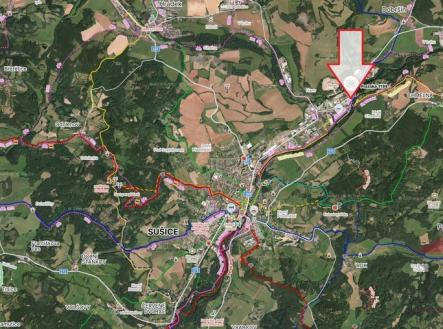 Nabízíme do pronájmu skladovací halu (užit. pl.: 182 m2) s prodejnou/kanceláří (užit. pl.: 35,9 m2) se sociálním zázemím a zpevněnou manipulační plochou vč. vlastního parkoviště, stojící v ul. Pražská v Sušici (výjezd směr Horažďovice, Strakonice). Popis: skladovací hala (dvoje vrata o šířce 2,4 a 2,7 m) o velikosti 182,46 m2 s rozměry 10,2 m x 16,7 m + 2,5 m x 4,2 m a výškou 3,7 m, prodejna či kancelář 35,9 m2, chodba 7,4 m2, sociální zařízení 2,94 m2 (WC, umyvadlo) a denní místnost 6,88 m2 (kuchyňka, sprcha, šatna). Možnost do pronajmout zařízený služební byt (1+kk cca 40 m2) v podkroví objektu – cena dohodou. Manipulační asfaltová plocha vč. vlastního parkoviště okolo haly vč. uzamykatelné části s vjezdem z hlavní silnice. Užitná plocha celkem: 238 m2; Zastavená plocha a nádvoří: 280 m2; Rozměry hlavní haly: 10,2 m x 16,7 m + 2,5 m x 4,2 m a výškou 3,7 m Vytápění: el. přímotopy; TUV: el. boiler; Voda a odpad: obecní řad; Elektřina: 220/380 V; Cena pronájmu měsíčně: nájem 29.600 Kč + DPH (pokud je subjekt plátce) + služby 2.500 Kč + elektřina. Vratná kauce (2x nájem vč. služeb). Využití: sklad; vzorková prodejna, mezisklad; velkosklad; drobná výroba a výrobní služby; provozovna; dílna; chráněná dílna; lehký průmysl... Zajímavá možnost pronájmu prostorného komerčního objektu - skladovací haly s manipulační plochou přímo v Sušici (velká spádová oblast). Dlouhodobý pronájem! Nutno vidět!