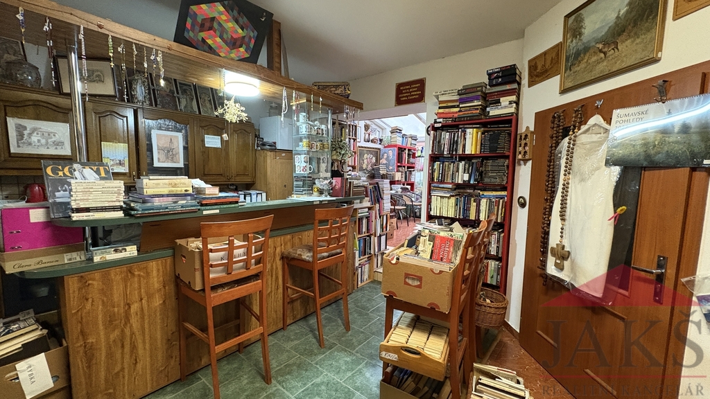 Exkluzivně Vám nabízíme na prodej podsklepený, řadový, rodinný dům (obchod 86 m2 a byt 3+kk 49 m2) s dvou-garáží a terasou 16 m2 po kompletní rekonstrukci a kolaudaci na obchod (antikvariát) s bytem 3+kk, stojící v historickém centru (památková zóna) na konci ulice Příkopy, kde se kříží s ul. T.G.M., která zde ústí jako hlavní výjezd z náměstí Svobody v Sušici, tudíž velmi lukrativní, komerčně zajímavá adresa. Nutno vidět! Popis: suterén (cca 60 m2): část. podsklepeno: chodba, potravinový sklep, kotelna (plynový kotel, moderní kotel na dřevo, el. boiler a vývody na pračku), koupelna (rohová vana, sprchový kout, umyvadlo se zrcadlem a skříňkou, topný žebřík a 2x WC), dvou-garáž s el. vraty; přízemí (85,9 m2): obchod: 2x prodejní místnost, chodba, schodiště (do sklepa a do podkroví), sam. WC s umyv., původní obytná kuchyň (kuch. linka s barem a vestavěnými spotřebiči: HV trouba, sklo.ker. deska, digestoř, myčka) s jídelnou, prosklený obývací pokoj (nyní vše užíváno jako prodejna) se vstupem na terasu (posezení); podkroví (49 m2): byt 3+kk: obývací pokoj s kuch. koutem (rohová kuch. linka s HV troubou a dvou-vařičem (sklo-ker.) a digestoří) se spíží, koupelna (umyv. se zrcadlem, sprchový kout, WC, průtokový ohřívač), 2x podkrovní ložnice, šatna a půdička (sklad). Celková plocha vč. sklepa: 194,9 m2; Podlahová plocha obytné části: 134,9 m2; Pozemek celkem - zastavěná plocha a nádvoří: 122 m2; Vytápění: ÚT – plynový kotel nebo nový moderní kotel na dřevo (tip „samo-tížka“ který funguje bez oběhového čerpadla bez elektřiny). TUV: el. boiler a průtokový ohřívač. Plyn: připojeno. Voda a odpad: obecní řad. El.: 220V/380V. Útulny cihlový dům, který prošel v r. 2014 rekolaudací na obchod s bytem (lze užívat i jako rodinný dům) a úpravou interiéru, nabízí spojení podnikání s bydlením v jednom domě na jedné z nejlukrativnější adrese v centru Sušice a přitom stojící v původní klidné, historické zástavbě v Sušici („brána Šumavy“), zaujme především klienty, kteří hledají rodinný dům přímo v historickém jádru města s možností podnikání či jako víkendový dům s nízkými provozními náklady vč. výtěžnosti z nájmu obchodu či bytu.