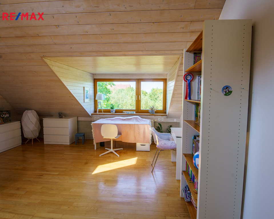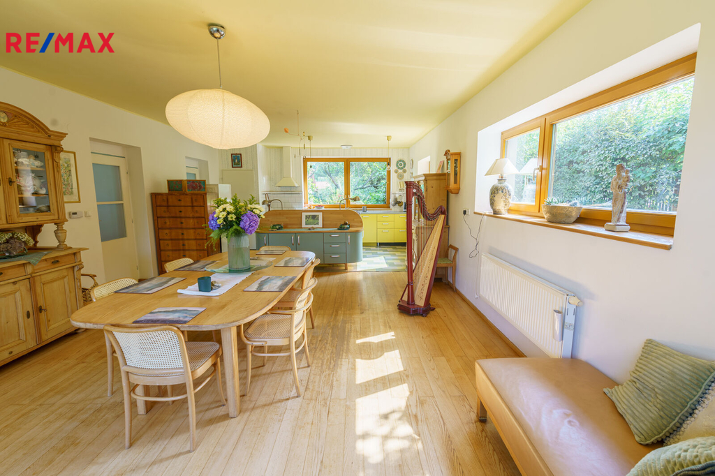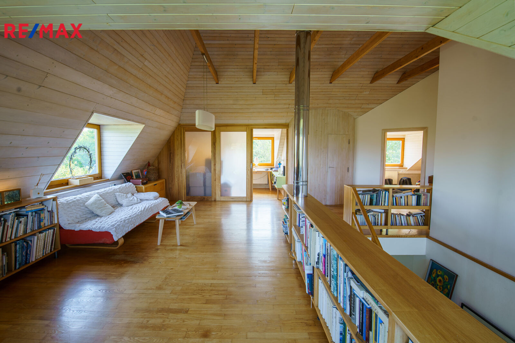 Ve výhradním zastoupení majitele nabízíme jedinečnou nemovitost. Venkovská rodinná vila ze začátku tohoto století navržena českým architektem Janem Kupkou je unikátním prostorem pro rodinu v klidné lokalitě na okraji přírodního parku Povodí Kačáku. Vila se nachází v zahradě o velikosti 1040 m2 se vzrostlou zelení, která nabízí každodenní kontakt s přírodou a vybízí k odpočinku. Ve vile o celkové výměře 262 m2 se nachází 5 pokojů, 2 koupelny, prostorná kuchyně propojená s jídelnou a rozlehlý rekreační prostor s vestavěnou knihovnou v prvním patře, 3 sklepní místnosti, to vše propojené prostornou a prosvětlenou chodbou, jež je dominantou vily, a prostor vertikálně i horizontálně prostupuje. Dostatek denního světla a stálého kontaktu s okolní zelení poskytuje nespočet velkých oken. Dům byl stavěn precizně, současnými majiteli, dominuje mu jasanové dřevo, které je velmi světlé a naleznete ho v celém domě. Dále jsou to kadaňské dlaždice vyráběné na zakázku v barvě neapolské žluti a dvou zelení, které poukazují k okolní přírodě. Měsíční náklady na vytápění domu a ohřev teplé vody jsou velice příznivé, a to 5 650,-Kč. V obci se nachází veškerá občanská vybavenost: malý obchod s vlastní pekárnou, restaurace, mateřská školka a lesní mateřská školka, základní škola a základní umělecká škola, svoz bioodpadu a sběrný dvůr, bonusem je možnost zakoupit lokální mléčné produkty na místní farmě. Okolí je jako stvořené pro řadu sportovních i odpočinkových aktivit (jízda na kole, na koni, běh, procházky, rybaření, v zimě běžky a bruslení). Přímou linkou autobusu se dostanete na stanici metra B Zličín za půl hodiny, v druhém směru na Kladno. Autem jste za třičtvrtě hodiny v centru Prahy. Na odstavném parkovišti za dvacet minut. V projektu realizace je budování a modernizace trati Praha - Kladno, kde zastávka Unhošť (Velké Přítočno) včetně odstavného parkoviště rozšíří nabídku pohodlného a ekologického dojíždění do Prahy či Kladna. Odkaz na 3D fotografie domu https://kuula.co/share/collection/7ZhMV?logo=1&info=1&fs=1&vr=0&zoom=1&sd=1&thumbs=1