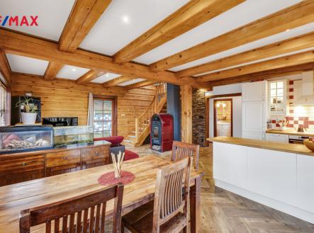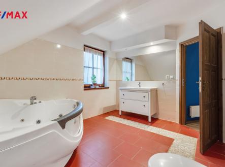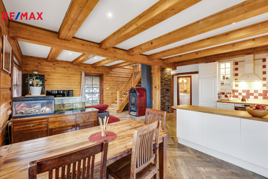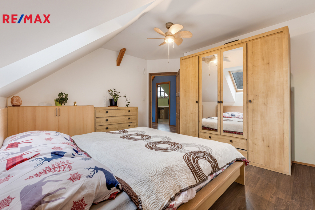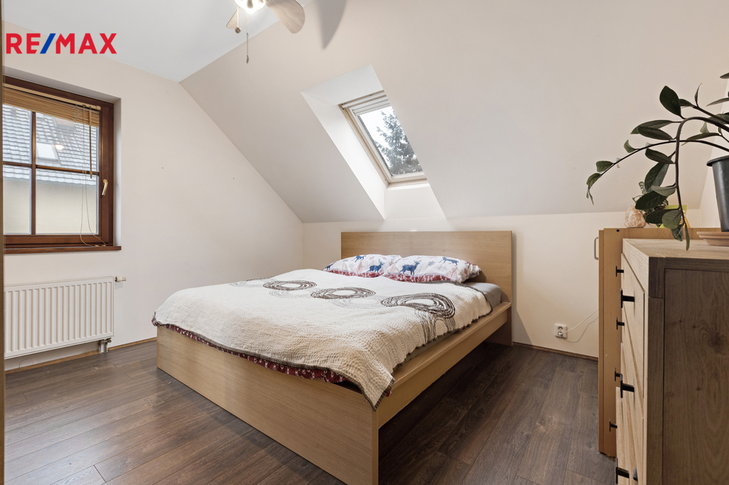 Prodej rodinného domu, Nabízíme k prodeji rodinný dům v obci Svatá, v klidné slepé ulici, s vlastním příjezdem a parkováním na pozemku. Dům byl kolaudován v roce 2014 a nabízí komfortní rodinné bydlení v kombinaci s klidem venkova a dobrou dostupností do Prahy. Nemovitost stojí na pozemku o velikosti 703 m², podlahová plocha domu činí přibližně 146 m². Díky umístění ve slepé ulici zde není tranzitní doprava, což zajišťuje soukromí, klid a bezpečné prostředí pro děti. Dispozice a interiér Dům je dispozičně řešen jako dvoupodlažní. V přízemí se nachází vstupní zádveří s prostorem pro uložení bot a oblečení, koupelna, technické zázemí a velká komora vhodná například pro skladování potravin nebo zavařenin. Hlavní část přízemí tvoří prostorný otevřený obytný prostor s kuchyní, jídelnou a obývacím pokojem. Dominantou obývací části jsou kachlová kamna na dřevo, která slouží jako plnohodnotný zdroj tepla a zároveň vytváří velmi příjemnou atmosféru. V horním patře se nachází tři samostatné pokoje a druhá koupelna. Patro je řešeno jako klidová část domu, vhodná pro ložnice, dětské pokoje nebo pracovnu. Technické informace Vytápění domu je zajištěno elektrickým kotlem, v přízemí je podlahové topení, v horním patře radiátory. Dům je napojen na vodu a elektřinu. Odpad je řešen domácí čističkou odpadních vod, přičemž na pozemku je připravena možnost budoucího napojení na obecní kanalizaci. Plyn v obci není. Zahrada a exteriér Zahrada je prakticky řešená a nabízí dostatek prostoru pro relaxaci i rodinné aktivity. Velkým benefitem je pergola s venkovním ohništěm, která rozšiřuje obytný prostor domu zejména v letních měsících. Parkování je zajištěno přímo na pozemku pro dvě auta, příjezdová cesta patří k domu. Lokalita Obec Svatá nabízí základní občanskou vybavenost včetně mateřské školky, místní knihovny, která pořádá řadu akcí a kurzů pro děti i dospělé, a sportovní vyžití jako fotbal, karate nebo badminton. Majitelé oceňují velmi dobré sousedské vztahy a komunitní charakter obce. Dojezdová vzdálenost na Prahu – Zličín je přibližně 30 minut autem, což z domu činí ideální kombinaci klidného bydlení a dostupnosti města. https://www.remax-czech.cz/reality/detail/430745/prodej-domu-146-m2-svata