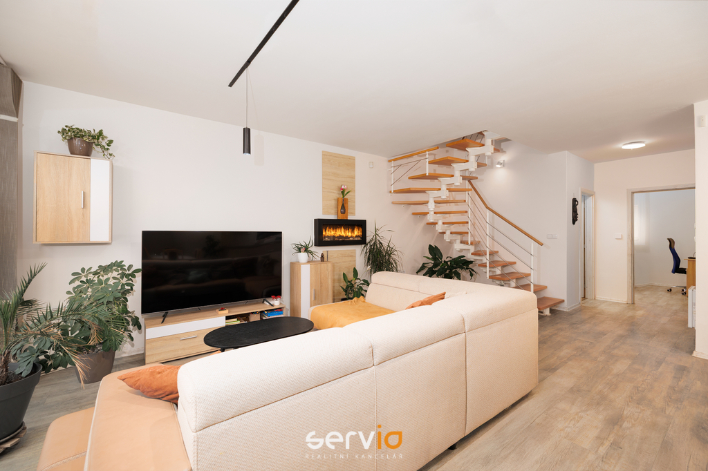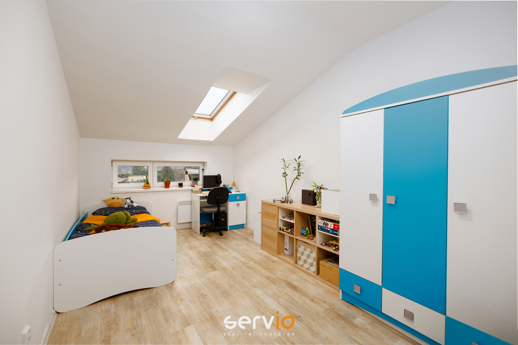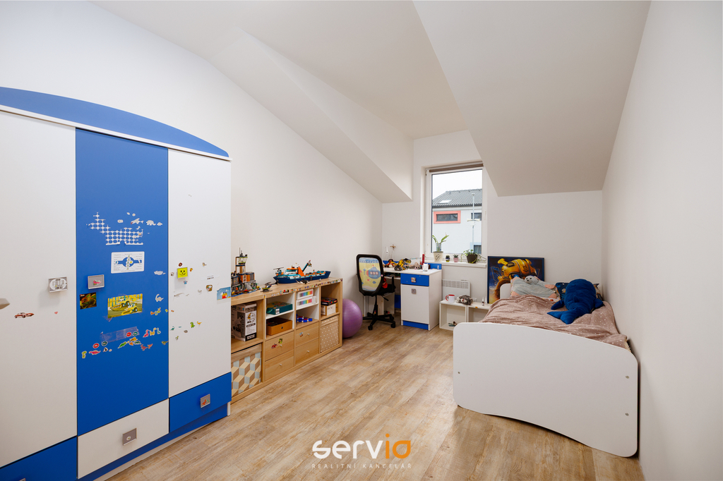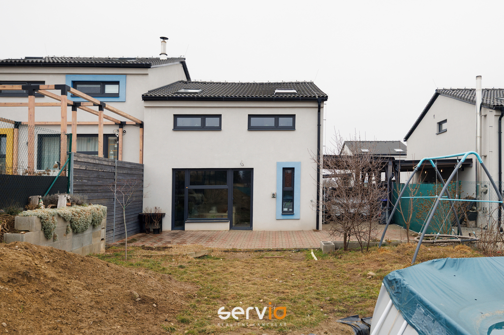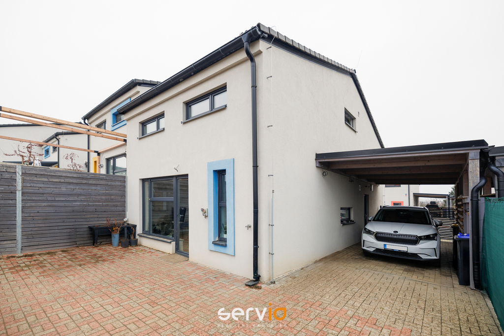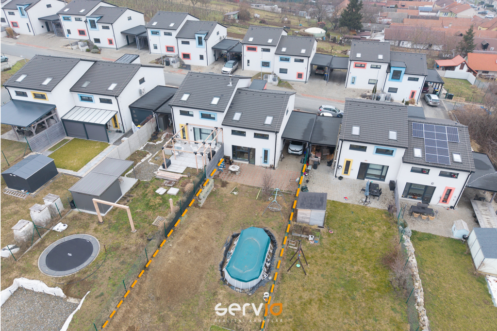 Nabízíme k prodeji novostavbu rodinného domu 6+kk se zahradou, v obci Svatobořice-Mistřín, okrese Hodonín. Jedná se o patrový dům o 2.NP v blokové zástavbě rodinných domů mimo hlavní ulici. V přízemí se nachází obývací pokoj s kuchyňským koutem, vstupem na zahradu s terasou, pracovna a WC. V patře zbývající 3 pokoje a koupelna s vanou a WC. Možnost parkovaní na vlastním pozemku až pro 3 auta, z toho 1 kryté za uzamykatelnou bránou. Užitná plocha domu 124 m2, zastavěná plocha 157, zahrada 343 m2, celková plocha 500 m2. Výměra jednotlivých prostor - přízemí: chodba: 9,23 m2, pracovna 10,66 m2, obývací pokoj s kuchyň. koutem 39,53 m2, WC s umyvadlem 1,22 m2 terasa 11,3 m2, kryté parkovací stání 27,9 m2. 1.NP: chodba 4,25 m2, pokoj 12,18 m2, pokoj 12,18 m2, pokoj 24,84 m2, koupelna 3,9 m2, schodiště 3,4 m2. Vytápění zajištuje... Náklady na el. energii cca 4.500,- Kč/měs. Datum kolaudace 14.12.2020. Svatobořice-Mistřín jsou malá obec ležící čtyři kilometry jihozápadně od Kyjova s dobrou občanskou vybaveností: MŠ, ZŠ, obchody (Hruška, Jednota), pošta, lékárna, lékař, kavárny, restaurace. Skrze město vede cyklostezka Mutěnka, spojující město Kyjov a Mutěnice, která je po celé své délce vyasfaltovaná a pohodlně vás provede krásnou přírodou lužního lesa, s mnoha občerstveními nebo vinnými sklípky. Pro více informací nás neváhejte kontaktovat.
