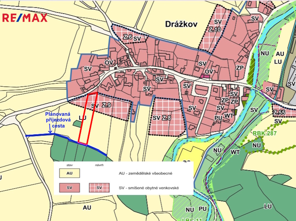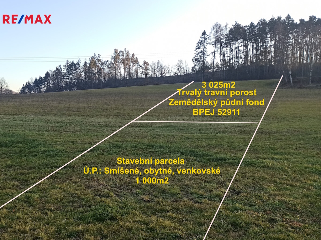 Prodej pozemku 4 025 m² v obci Drážkov (k.ú. Drážkov), nedaleko Kamýku nad Vltavou Nabízíme velký pozemek o celkové výměře 4 025 m² s parcelním číslem 1610 v klidné a malebné obci Drážkov, která je součástí obce Svatý Jan, jen necelé 2 km od Kamýku nad Vltavou. Tento pozemek může být i výhodnou investiční příležitostí — z celkové výměry je 1 000 m² v severní části, teda té která přímo navazuje na stávající zástavbu, v územním plánu určena k výstavbě pro osobní bydlení nebo rekreaci. V horní části, podél jižní hranice je plánována nová příjezdová komunikace, která bude sloužit i dalším pozemkům v okolí. V samotném Drážkově, jen pár metrů od pozemku je místní hospoda a obchod se smíšeným zbožím, kde vždy rychle pořídíte vše nejnutnější pro domácnost. O kousek dál u Obecního úřadu je pošta, ČSOB Poštovní spořitelna, Dobrovolní hasiči a naproti je kavárna v místním divadle Hogo Fogo. V blízkém Kamýku nad Vltavou (2 km) a ve Svatém Janu (3Km) najdete kromě dalších obchodů s potravinami, hostince/restaurace. ZŠ a MŠ Kamýk nad Vltavou se školní družinou a školním jídelnou pro děti. Lékařská péče a lékárna jsou dostupné v Kamýku, Sedlčanech či Příbrami. Dopravní obslužnost: Automobilem: Do Sedlčan je to opravdu jen příslovečnou „minutku“, do Příbrami cca 20m a v Praze budete do 50 minut. Autobusem: Zastávka Svatý Jan, Drážkov obsluhovaná linkou 552 Pražské integrované dopravy (PID) spojuje Sedlčany – Svatý Jan – Kamýk nad Vltavou. Spoje zde jezdí pravidelně během dne (PID linka 300 552). Do Prahy: Z Kamýku nad Vltavou jezdí přímé autobusové spoje do Prahy (na Smíchovské nádraží) s jízdní dobou cca 1 h 15 min. Proč si myslím je tato nabídka výhodná a čím je výjimečná: Především poměrem ceny velikosti na metr čtvereční která zde vychází na cca 1 600Kč/m2. Z velkových 4 025 m² je 1000m2 v ÚP určeno na smíšenou/obytnnou venkovskou výstavbu. Takže se hodí na větší moderní rodinný dům, nebo menší bytový dům s max. čtyřmi bytovými jednotkami. Velkou výhodou je zde velká míra soukromí, díky své pozici. Tato nabídka má i možnost rozšíření, majitel totiž vlastní i další pozemky, jedním z nich je les který je přímo nad prodávaným pozemkem v jižní části, takže jestli sníte o tom, že chcete mít dům s obrovským pozemkem i s navazujícím lesem, který je na jednom z nejvyšších míst v okolí, tak máte dneska opravdu šťastný den. ???? Pro více informací nebo domluvení prohlídky mi rovnou volejte, rád vám tuto výjimečnou nabídku představím. Poskytnu veškeré informace, ukážu pozemek naživo a vysvětlím veškeré úkony potřebné pro jeho koupi, celý proces převodu vám krok po kroku popíšu a bezpečně vás jím provedu. Cena je konečná, neplatíte žádné poplatky ani kupní smlouvy nebo advokátní úschovu, vše zajistím v rámci mého profesionálního servisu. Jestli budete financovat hypotékou tak vám ji dokážu zajistit za výhodných podmínek. Když se prodej i hypotéka budou dělat od jednoho stolu, znamená to pro vás velkou úsporu času a papírování. Poskytuji Realitní služby na klíč.