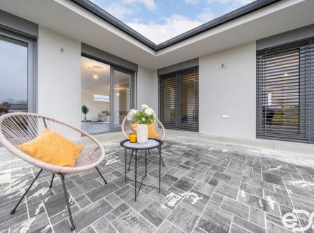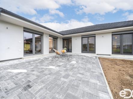 Velmi rád Vám v zastoupení majitele nabízím k prodeji krásnou a moderní novostavbu přízemního rodinného domu s garáží, která se nachází v klidné zástavbě v obci Svatý Mikuláš, nedaleko Kutné Hory. Tento samostatně stojící rodinný dům připomínající tvar "T" je o dispozici 4+kk a propojený s garáží a technickou místností. Celková užitná plocha domu včetně garáže je cca 172 m2, zastavěná plocha včetně garáže cca 210 m2 a celková plocha pozemku 700 m2. Skvělá dispozice domu nabízí prostorný obývací pokoj s kuchyňským a jídelním koutem, kde se nachází na míru vyhotovená designová kuchyňská linka včetně špičkových spotřebičů francouzské značky DE DIETRICH: trouba, mikrovlnná trouba, varná deska, integrovaná digestoř v horní skříňce, plně integrovaná myčka a lednice s mrazákem. Ze strany kuchyně i obývacího pokoje je aplikována betonová stěrka a stěna je připravena na umístění jídelního stolu. Z velkolepého obývacího pokoje je vstup na venkovní terasu, kde si budete v klidu a pohodě užívat slunných dnů. V domě se dále nachází samostatná část zahrnující ložnici se šatnou a menší koupelnou se sprchovým koutem a toaletou, dva dětské pokoje, velká koupelna s vanou a toaletou a další místnost využívaná jako šatna nebo prádelna. Dostatečné prosvětlení ložnice a dětských pokojů zajišťují dvoukřídlová francouzská okna. Okna a dveře jsou plastová, zasklená izolačním trojsklem. Vytápění je zajištěno tepelným čerpadlem, v celém domě je teplovodní podlahové topení. Velkou přidanou hodnotou tohoto domu jsou venkovní žaluzie dělané na míru, které využijete ve dne i v noci a které chrání vaše soukromí a vytváří příjemné prostředí. Garážová vrata mají inteligentní pohon ovládaný mobilní SmartHome aplikací SOMweb. Dům je vybaven zabezpečovacím a kamerovým systémem JABLOTRON. Přívod pitné vody vodovodní přípojkou, kanalizační přípojka tlaková a dešťová akumulační jímka. Dům má valbovou střechu, s pochozím půdním prostorem. Venkovní povrch v okolí domu je řešen betonovou zámkovou dlažbou, která se nachází jak na zadní terase, tak na parkovacím stání před garáží a na chodnících kolem domu. V obci Svatý Mikuláš je základní občanská vybavenost a nachází se zde mateřská škola, obecní úřad, obchod s potravinami, knihovna, hostinec, hřiště a oblíbený zámek Kačina. Veškerou občanskou vybavenost pak najdete v nedaleké Kutné Hoře, vzdálené jen 15 minut cesty autem. Z veřejné dopravy v obci můžete do okolních měst využít také autobusové spojení. Možnost financování hypotékou, s kterou Vám velmi rádi pomůžeme v naší společnosti eDO finance. Pro více informací a domluvení prohlídky volejte makléři.