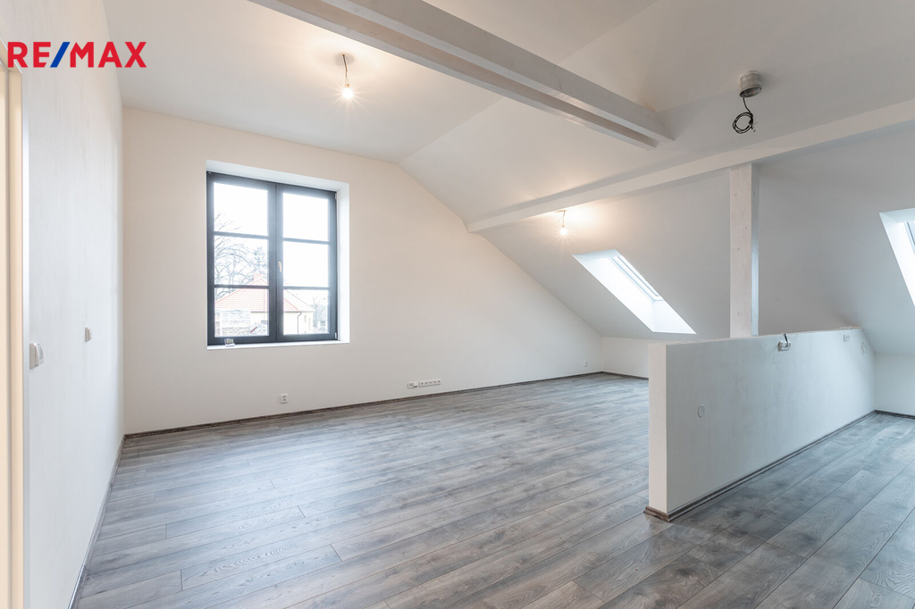 Exkluzivně nabízíme k prodeji výjimečný, luxusní, prostorný byt 4+kk ve druhém patře zděného, energeticky mimořádně úsporného domu postaveného v centru obce Svémyslice, jen pár minut jízdy autem od hranice města Prahy. Celková podlahová plocha bytu je dle prohlášení vlastníka 119,5 m2. Dominantou bytu je obývací pokoj spojený s kuchyní, dále jsou v bytě ložnice se šatnou (o výměře 19,23 m2), dětský pokoj (o výměře 15 m2), vstupní chodba 6 m2, komora, samostatné WC a velká nádherně světlá koupelna s oknem na západní stranu. V koupelně je vana i sprchový kout a příprava na instalaci dvojumyvadla, pračky a sušičky. Byt je zcela nový a byl vystavěn v bytovém domě z roku cca 1916, kdy při rekonstrukci a výstavbě šesti bytů v tomto domě zbyly pouze původní obvodové a nosné zdi. Nové jsou stropy, podlahy, vnitřní příčky, střecha a samozřejmě veškeré rozvody v bytech i v domě. Budova je zděná se zateplením a díky rekuperačním jednotkám, které jsou umístěné v každém pokoji dosahuje PENB – A, mimořádně úsporná budova. Automatická výměna vzduchu/rekuperace Vám zajistí nejen velmi úsporné vytápění bytu, ale také neustálý přísun čerstvého vzduchu bez nutnosti otvírání oken. Vytápění bytu je komfortní – podlahové teplovodní. V domě je zaveden vysokorychlostní internet. Na všech střešních oknech jsou vnější žaluzie s elektrickým ovládáním. Orientace bytu je velice příznivá. Ložnice jsou směrem na severovýchod a světlý obývací pokoj má výhled na jih a do centra obce na západ. Vytápění a ohřev teplé vody je centrální, pomocí nové plynové kotelny v domě. K bytu náleží zděný sklep 6 m2 a dvě venkovní parkovací stání přímo u domu. Pár kroků od domu je MŠ, basketbalové a dětské hřiště, obecní úřad, kostel a autobusová zastávka ze které se pohodlně dostanete do Letňan nebo na Černý most. Dva kilometry od domu je nádraží Zeleneč, odkud se vlakem dostanete za 20 minut na Hlavní nádraží do Prahy nebo za 13 minut do Vysočan. Osobní vlastnictví – možnost financování hypotékou. V domě dále nabízíme bytové jednotky o velikosti 3+kk.