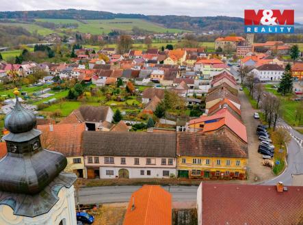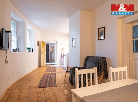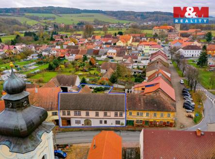 Nabízíme k prodeji výjimečný historický dům v srdci městečka Švihov, jen pár kroků od ikonického vodního hradu, který proslavila pohádka Tři oříšky pro Popelku. Tato rozlehlá nemovitost o celkové ploše 378 m² spojuje kouzlo historie s velkým investičním potenciálem – ideální jak pro reprezentativní rodinné bydlení, tak pro podnikatelský záměr (penzion, kavárnu či obchod). V přízemí se nachází obchodní prostor s výlohou a samostatným vstupem z ulice (42 m²), dále byt 1+1 připravený k rekonstrukci a byt se čtyřmi pokoji a sociálním zázemím (62 m²). V patře je umístěno 7 obytných místností, kuchyň, spižírna a pavlač s půvabným výhledem na hrad. Rozlehlá půda nabízí možnost vestavby dalších pokojů. Na uzavřeném dvoře se nachází parkování pro 2 vozy, zděná kolna a okrasná zahrada se zapuštěným bazénem (207 m²). Dům je napojen na zemní plyn, vodovod i kanalizaci, částečně podsklepený a po částečné rekonstrukci. Nemovitost se nachází v klidné části centra s veškerou občanskou vybaveností.