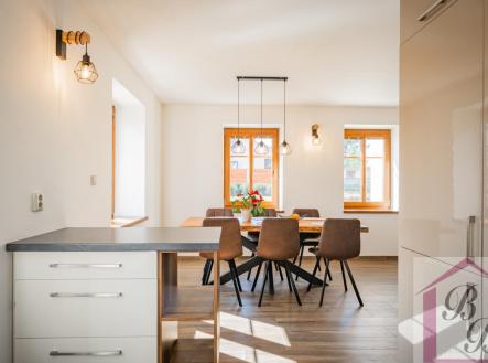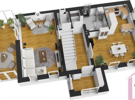 Ve výhradním zastoupení zprostředkuji prodej kompletně zrekonstruovaného rodinného domu o dispozici 6+kk a podlahové ploše 160,39 m2 s pozemky o celkové rozloze 1.286 m2 v obci Svijanský Újezd, okres Liberec. Dům prošel v letech 2019 až 2023 kompletní, velice zdařilou a vkusnou rekonstrukcí, při níž majitel kladl důraz na prosvětlení a vzdušnost interiéru zejména použitím světlých barev a přírodních materiálů, čímž nemovitost získala příjemnou a útulnou atmosféru. Při rekonstrukci byly zachovány jen základy, většina nosných svislých konstrukcí a stropní konstrukce přízemí domu. Zachované konstrukce byly upraveny a doplněny a vše ostatní je zcela nové, takže lze dům v podstatě považovat za novostavbu. V přízemí domu se nachází prostorná jídelna propojená s kuchyní s na míru vyrobenou kuchyňskou linkou vybavenou vestavnými spotřebiči (lednice s mrazákem, indukční varná deska, trouba, myčka), dále koupelna se sprchovým koutem a toaletou a technická místnost s elektrickým kotlem s akumulační nádrží. Je zde i obývací pokoj s krbovými kamny a na něj navazující prostorná zimní zahrada, která díky několika velkým francouzským oknům orientovaným na jih a západ s přímým vstupem na terasu nabízí velice příjemnou slunnou atmosféru. Z ústřední chodby se vzdušným dřevěným schodištěm dostaneme do podkroví domu, kde se nachází ložnice se šatnou, další 2 pokoje a koupelna. Ta je v současné době před dokončením a nechává tak novým majitelům prostor pro realizaci jejího finálního vzhledu a vybavení dle vlastních představ. Podkroví je otevřené s viditelnými částmi krovu, díky čemuž působí prostor velice prosvětleně a vzdušně. Dům je částečně podsklepený, přičemž sklep se nachází pod chodbou domu, má rozlohu 15 m2 a je vhodný zejména k uskladnění potravin. Dům je zděný a obvodové stěny jsou zatepleny 14 cm polystyrenu. Vchodové dveře a okna jsou plastová s izolačními trojskly, interiérové dveře jsou dýhované s obložkovými zárubněmi. Na podlahách je v 1. NP dlažba, v podkroví je plovoucí podlaha. Krov je dřevěný s krytinou z pálených tašek. Dům je napojen na elektřinu a veřejný vodovod. Vytápění domu je v 1. NP podlahové teplovodní, v podkroví jsou radiátory, zdrojem je elektrický kotel s akumulační nádrží, jež slouží i jako zdroj TUV. Odpady jsou svedeny do nově zřízené čističky odpadních vod. Z důvodu tvorby nového průkazu energetické náročnosti je zatím dům uveden ve skupině G. Kolem domu se nachází slunná zahrada, která díky své velké rozloze poskytuje dostatek místa na vybudování zázemí pro mnoho rodinných aktivit i příjemnou relaxaci v krásném prostředí. Na zahradě je prostorná garáž a je zde příprava plochy několika parkovacích stání, na jejíž dokončení je na pozemku složená stejná zámková dlažba, ze které jsou již nyní hotové zpevněné plochy a terasa kolem domu. Vjezd na pozemek je elektrickými vraty na dálkové ovládání. Obec Svijanský Újezd nabízí základní občanskou vybavenost. Je zde dětské hřiště, mateřská a základní škola, obchod, knihovna, restaurace, zrekonstruované koupaliště a sportovní areál. Svijanský Újezd je znám bohatým kulturním a společenským životem nejen díky tradičním Slavnostem Svijanského piva. Okolní příroda rovněž poskytuje dostatek možností na hezké procházky a cyklistické výlety. Obec Svijanský Újezd je vzdálena pouhých 10 km od Turnova, 25 km (15 minut autem) od Mladé Boleslavi, necelých 30 km (20 minut autem) od Liberce a 70 km od okraje Prahy, kde jste díky dálnici vzdálené 2 km za necelých 45 minut. Koupi domu lze financovat hypotečním úvěrem, se kterým vám ráda zdarma pomohu. V případě zájmu o prohlídku (po dohodě možné i o víkendu) nebo zodpovězení jakýchkoliv dotazů mě, prosím, neváhejte kdykoliv kontaktovat. Doporučuji prohlídku, protože se jedná o vkusně zrekonstruovaný dům v zajímavé lokalitě.