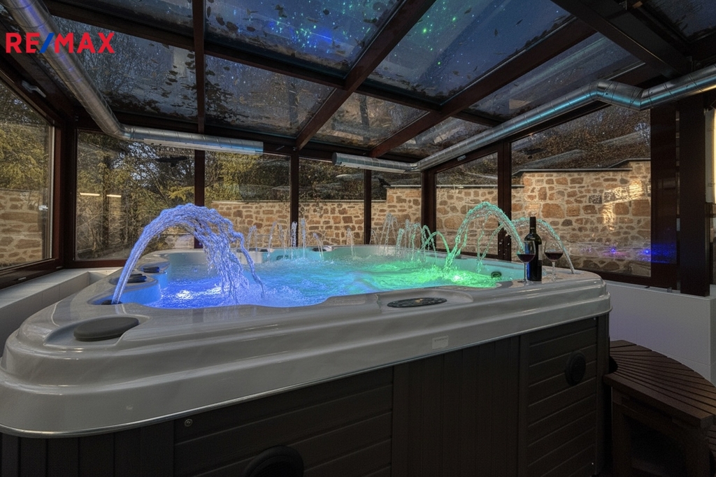 Exkluzivní dům v prestižní lokalitě Svinařů – Halouny, představuje kombinaci moderního luxusu a naprostého soukromí. S celkovou rozlohou pozemku 2.968 m² nabízí tento impozantní objekt veškeré prvky pro pohodlný a pohodový život, včetně dvou garáží, vnitřního bazénu, vířivky, fitness centra, sauny a moderního skleníku, které jsou součástí této unikátní nemovitosti. Interiér domu je ve všech ohledech promyšlený a vybavený těmi nejkvalitnějšími materiály na míru. Dům aktuálně nabízí šest prostorných ložnic, dvě luxusní koupelny se sprchovými kouty, elegantní kuchyň, velkorysý obývací pokoj a technickou místnost s plným zázemím. Dům je také napojen na kvalitní zabezpečovací a kamerový systém. K dispozici je také šatna, sklad, prádelna a prostorná předsíň, které zajišťují maximální komfort a pohodlí pro každodenní život. Celý dům je vybaven moderními technologiemi včetně fotovoltaické elektrárny, solárních panelů a tepelného čerpadla, což zajišťuje nejen šetrnost k životnímu prostředí, ale i výraznou úsporu nákladů na provoz. K domu patří také samostatný apartmán, který se nachází nad dvougaráží. Tento apartmán s velkou terasou je ideálním prostorem pro návštěvy nebo služebnictvo a poskytuje maximální soukromí, které si cenění každý náročný majitel. Soukromí je jedno z hlavních lákadel této nemovitosti – dům se nachází v těsné blízkosti lesa, což zaručuje naprostou intimitu a klid. Zahrada je skutečným klenotem tohoto sídla. Velký pozemek je částečně svažitý, což přidává na atraktivitě a poskytuje nezaměnitelný výhled. V horní části zahrady se nachází moderní skleník a sklad, který dříve sloužil jako rekreační chata a má přidělené číslo evidenční. Na dolní části zahrady najdete velký altán s masivním nábytkem, ideální pro letní posezení, grilování nebo relaxaci. Prostor s bazénem je vybaven kvalitní vzduchotechnikou, která zajišťuje optimální temperování a také kamna na vytápění, což znamená, že si můžete užívat relax jak v letních měsících, tak i během chladnějších dnů. Vzhledem k propojení bazénu s fitness centrem, je k dispozici i komfortní šatna, která zaručuje pohodlí pro všechny, kteří hledají prvotřídní wellness zážitek. Na závěr si pak můžete dopřát vlastní finskou saunu. Tento dům je nejen výjimečnou, ale také pečlivě udržovanou a vynikajícím způsobem opečovávanou nemovitostí, která splňuje požadavky i těch nejnáročnějších klientů. Ať už hledáte prestižní sídlo pro svou rodinu, nebo místo, které nabídne absolutní soukromí a komfort, tato nemovitost je ideálním řešením pro ty, kteří si cení luxusu, komfortu a kvality. Těšíme se na vás osobně!