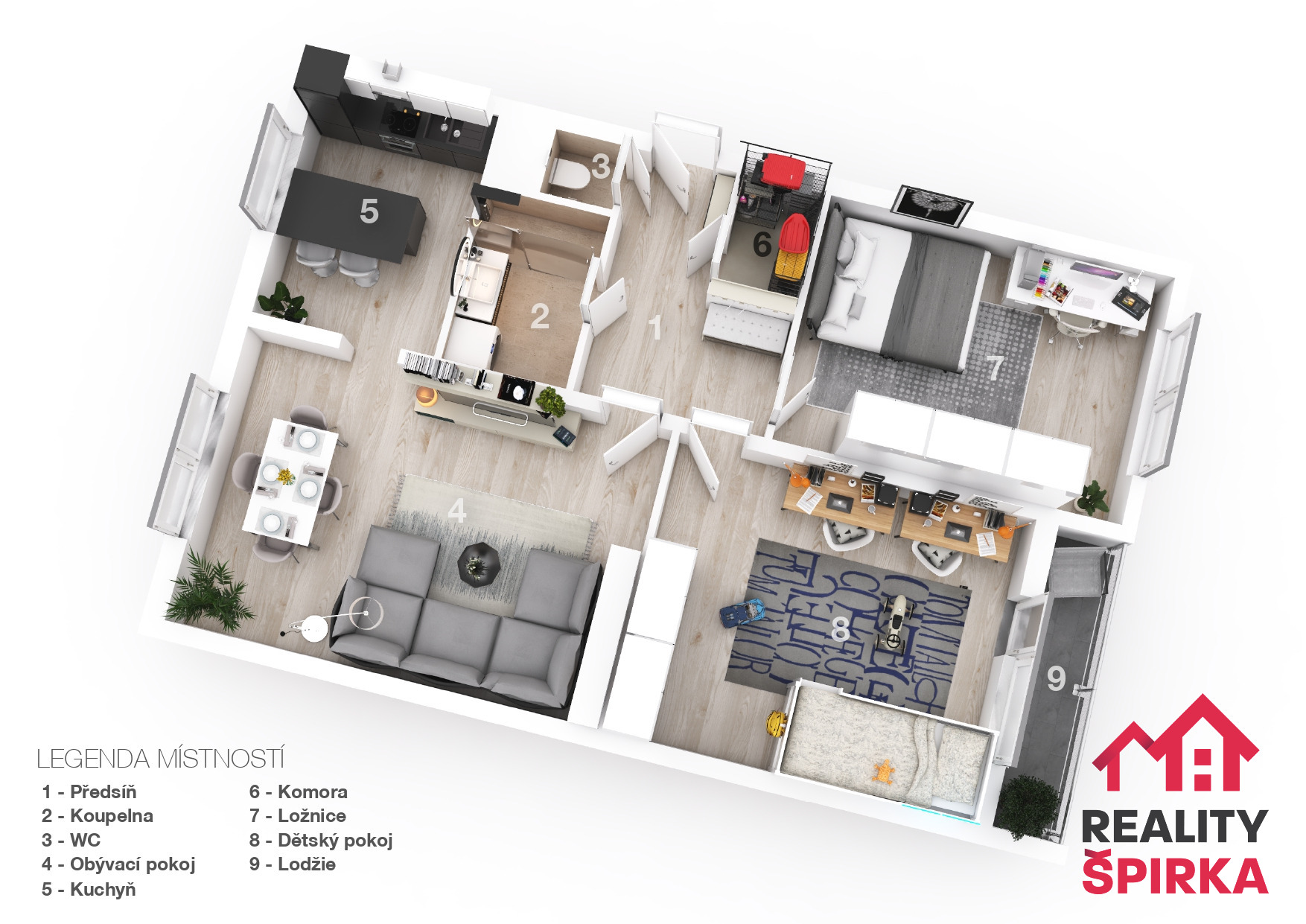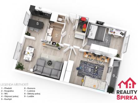 Nabízíme k prodeji kompletně rekonstruovaný byt v osobním vlastnictví o dispozici 3+1 s lodžií, nacházející se ve 2. NP panelového revitalizovaného domu s výtahem. Podlahová plocha bytu činí 82,5 m2 a dále plocha lodžie 4,3 m2. V rámci společných prostor je k bytu formou výlučného užívání i potravinový sklípek a společného užívání kolárny, sušárny a společenské místnosti. Dispoziční řešení bytu je zobrazeno formou 3D půdorysu v prezentaci. Rekonstrukce od stavební firmy z roku 2025 obsahovala: koupelna s prostorným sprchovým koutem a samostatné WC (zděné jádro), kuchyňská linka včetně vestavěných spotřebičů, kompletní rozvody vody odpady a elektřiny vč. rozvaděče a jističů, podlahová HDF krytina v kuchyni a na chodbě. Dále z roku 2017 podlahová krytina v obývacím pokoji, dětském pokoji a ložnici. Vytápění bytu a ohřev vody je zajištěn dálkově, kdy radiátory jsou osazeny měřiči tepla. Parkování je zajištěno přímo před domem. V blízkém okolí domu je k dispozici dětské hřiště, školka, škola, obchod, restaurace, pošta, benzínová pumpa atd. Zajistíme Vám výhodné financování a případně další služby. Pokud vás tento byt zaujal, neváhejte nás kontaktovat. Rád vás provedu bytem při individuální prohlídce, kde i zodpovím veškeré další dotazy ohledně bytu, rekonstrukce či možnosti financování. Těším se na vás, a kdo ví, třeba se právě tento byt stane vaším novým domovem.