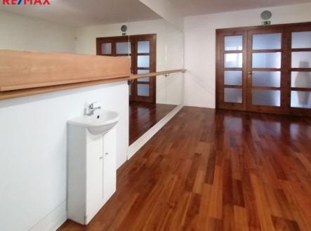 Nabízím k pronájmu pěkný reprezentativní nebytový prostor ve vile na ul. Pavlovova v části obce Předměstí ve Svitavách. Nemovitost se nachází přímo v návaznosti na centrum města, v blízkosti nemocnice a polikliniky. Jedná se o samostatný prostor nacházející se v 1. patře o výměře 32 m2. V prostoru jsou umístěna na jedné straně zrcadla, v současné době z půlky zakrytá. Je možné přidělat zpět madla a skříňové umyvadlo. K prostoru patří velká zastřešená terasa s pěkným výhledem do zahrady, na kterou je vstup přímo z nebytového prostoru. Možnost parkování pro 1 vozidlo se dá domluvit přímo na pozemku, na který se vjíždí el. bránou. Objekt je po rekonstrukci, prostor je vhodný pro cvičení (fitness trenéry, rehabilitaci), případně pro výuku tanců, ale i pro služby či kancelář. V současné době je v prostoru kancelář. Sociální zařízení je na společné chodbě, lze využít šatnu. WC s umyvadlem a sprchu. Měsíční náklady činí: za nájem 8.800,- Kč, paušální platba na služby a energie: 3.200,- Kč, celkem 12.000,- Kč. Kauce činí 12.000,- Kč, provize RK 11.000,- Kč + DPH.