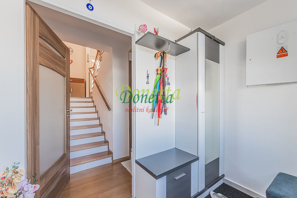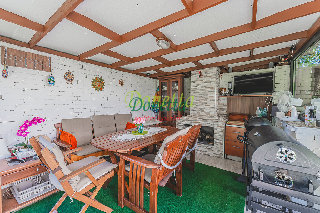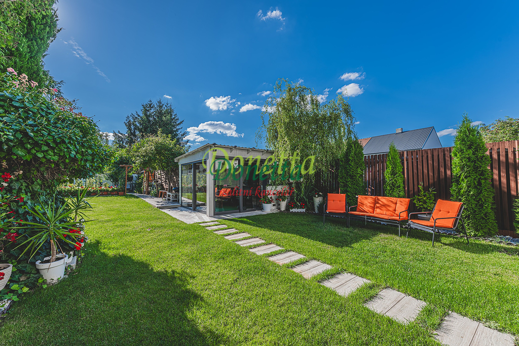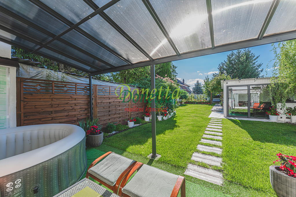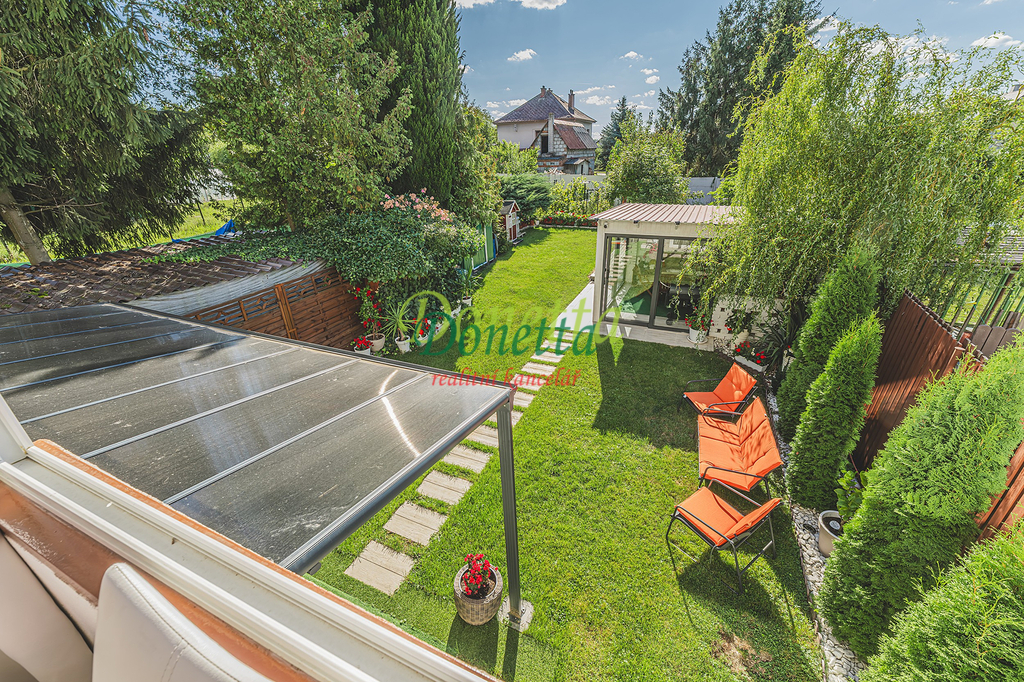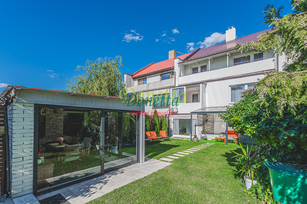 Exkluzivně nabízíme k prodeji krásný, kompletně zrekonstruovaný rodinný dům, situovaný v obci Syrovátka, pouhých 10 km od Hradce Králové. Tento řadový dům se nachází na pozemku o rozloze přibližně 406 m² a poskytuje bohaté možnosti využití obytného i užitného prostoru. Dispozice sníženého přízemí zahrnují prádelnu se sprchovým koutem a toaletou, kotelnu, sklep, dílnu, pokoj, garáž pro osobní automobil a zimní zahradu s přímým vstupem na terasu a do zahrady. Ve zvýšeném přízemí se nachází vstupní zádveří, schodiště, chodba, prostorný a světlý obývací pokoj (22,31 m²), kuchyně propojená s jídelnou (24,96 m²), prosklená terasa orientovaná do zahrady, pracovna a koupelna vybavená sprchovým koutem, umyvadlem a toaletou. Z kuchyně je umožněn vstup na balkon. V této části domu je také umístěna klimatizace. Druhé patro zahrnuje chodbu, samostatnou toaletu, koupelnu s vanou a umyvadlem a tři neprůchozí pokoje (18 m², 16 m² a 11,7 m²). Jeden z nich disponuje samostatným balkonem, zatímco dvě další ložnice sdílejí prostorný balkon (9,38 m²) s výhledem do zahrady. Všechny terasy a balkony jsou zastřešené a umožňují příjemné využití i za nepříznivého počasí. Nad druhým nadzemním podlažím se nachází celý půdorys půdy vhodné k uskladnění věcí nebo případnému vybudování dalších obytných prostor. Tento rodinný dům nabízí rozsáhlé vnitřní prostory s užitnou plochou téměř 240 m². Vše je navrženo a vybaveno tak, aby byl zajištěn maximální komfort a pohodlí pro budoucí majitele. K domu náleží udržovaná západně orientovaná zahrada s dostatkem prostoru pro relaxaci či dětské hry. Na zahradě se nachází pergola s vířivkou, uzavíratelný altán s krbem pro pořádání rodinných setkání a kůlna na uskladnění nářadí. Větší část zahrady je zatravněná, zatímco v zadní části najdete užitkovou zahradu se záhony pro vlastní pěstování zeleniny či jiných plodin. Obec nabízí částečnou občanskou vybavenost a má vynikající dopravní dostupnost do Hradce Králové i na dálnici D11 (nájezd vzdálený 3 km). Pro bližší informace nebo sjednání termínu prohlídky kontaktujte realitního makléře. Srdečně zveme vážné zájemce na osobní návštěvu této jedinečné nemovitosti.