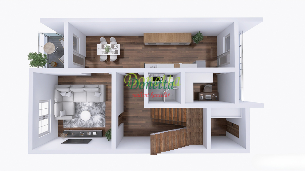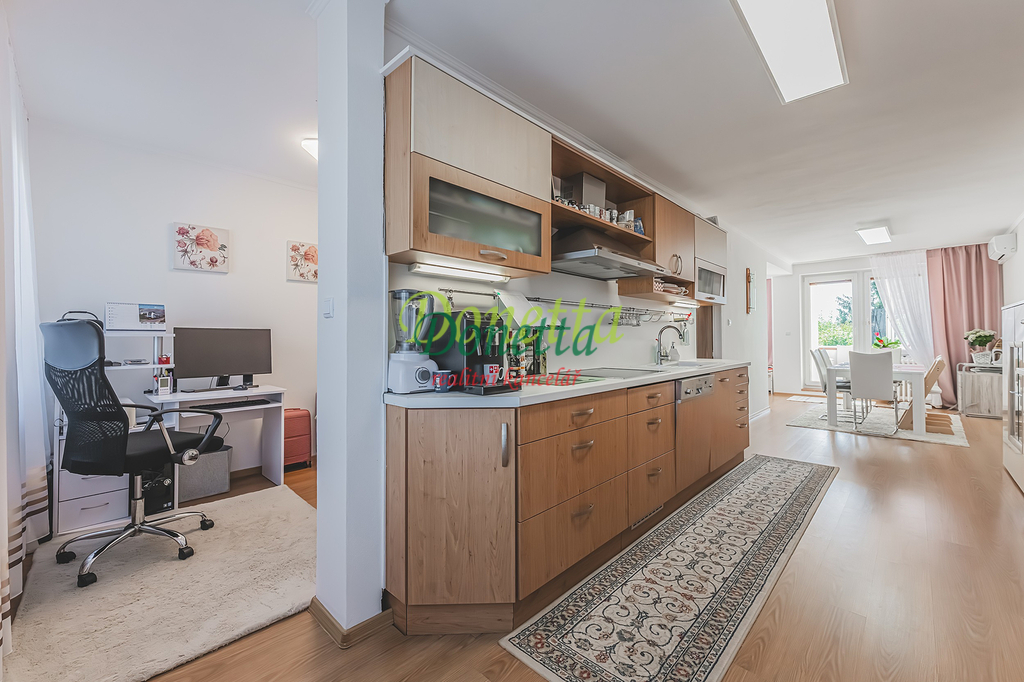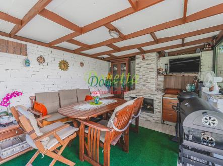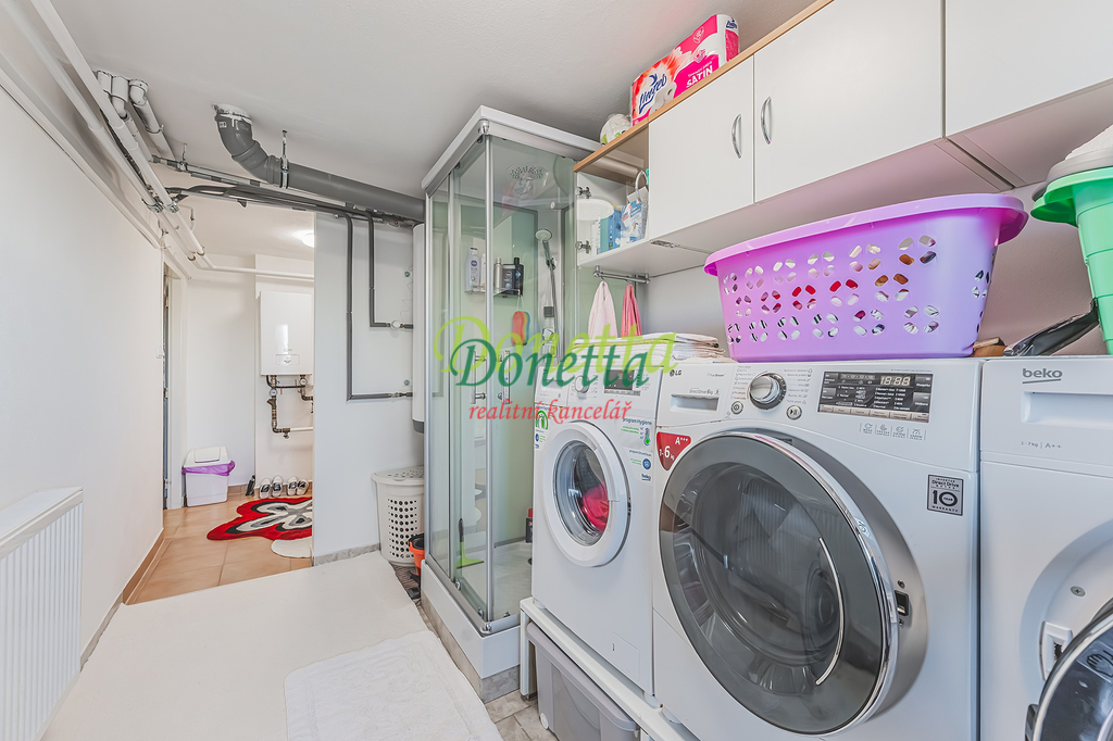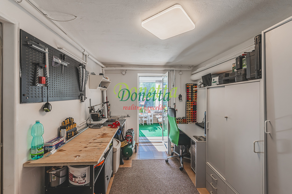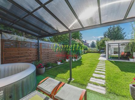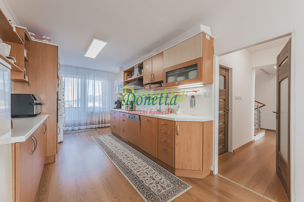 Exkluzivně nabízíme k prodeji krásný, kompletně zrekonstruovaný rodinný dům, situovaný v obci Syrovátka, pouhých 10 km od Hradce Králové. Tento řadový dům se nachází na pozemku o rozloze přibližně 406 m² a poskytuje bohaté možnosti využití obytného i užitného prostoru. Dispozice sníženého přízemí zahrnují prádelnu se sprchovým koutem a toaletou, kotelnu, sklep, dílnu, pokoj, garáž pro osobní automobil a zimní zahradu s přímým vstupem na terasu a do zahrady. Ve zvýšeném přízemí se nachází vstupní zádveří, schodiště, chodba, prostorný a světlý obývací pokoj (22,31 m²), kuchyně propojená s jídelnou (24,96 m²), prosklená terasa orientovaná do zahrady, pracovna a koupelna vybavená sprchovým koutem, umyvadlem a toaletou. Z kuchyně je umožněn vstup na balkon. V této části domu je také umístěna klimatizace. Druhé patro zahrnuje chodbu, samostatnou toaletu, koupelnu s vanou a umyvadlem a tři neprůchozí pokoje (18 m², 16 m² a 11,7 m²). Jeden z nich disponuje samostatným balkonem, zatímco dvě další ložnice sdílejí prostorný balkon (9,38 m²) s výhledem do zahrady. Všechny terasy a balkony jsou zastřešené a umožňují příjemné využití i za nepříznivého počasí. Nad druhým nadzemním podlažím se nachází celý půdorys půdy vhodné k uskladnění věcí nebo případnému vybudování dalších obytných prostor. Tento rodinný dům nabízí rozsáhlé vnitřní prostory s užitnou plochou téměř 240 m². Vše je navrženo a vybaveno tak, aby byl zajištěn maximální komfort a pohodlí pro budoucí majitele. K domu náleží udržovaná západně orientovaná zahrada s dostatkem prostoru pro relaxaci či dětské hry. Na zahradě se nachází pergola s vířivkou, uzavíratelný altán s krbem pro pořádání rodinných setkání a kůlna na uskladnění nářadí. Větší část zahrady je zatravněná, zatímco v zadní části najdete užitkovou zahradu se záhony pro vlastní pěstování zeleniny či jiných plodin. Obec nabízí částečnou občanskou vybavenost a má vynikající dopravní dostupnost do Hradce Králové i na dálnici D11 (nájezd vzdálený 3 km). Pro bližší informace nebo sjednání termínu prohlídky kontaktujte realitního makléře. Srdečně zveme vážné zájemce na osobní návštěvu této jedinečné nemovitosti.