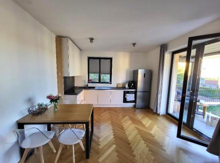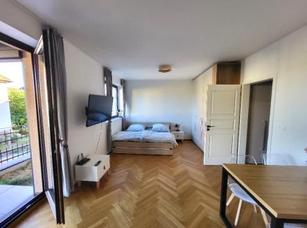 Výjimečné místo k životu i rekreaci v blízkosti historického centra Tábora! Atraktivní byt s rozsáhlou terasou, garážovým stáním a výhledem na vilovou čtvrť v Táboře, které je součástí. V nově postaveném domě o celkovém počtu 8 bytových jednotek v Bechyňské ulici v Táboře, nedaleko Kotnova a historického centra města Vám nabízíme ve druhém nadzemním podlaží ke koupi byt o velikosti 38 m2, v počtu místností 1 + kuchyňský kout, vstupní chodba, sociální zařízení. Na byt navazuje prostorná dlážděná terasa s další zatravněnou plochou o výměře 20 m2. Terasa je krytá pergolou se zařízením na ovládání zastínění ze všech stran i stropu, která vytváří možnost dalšího využitelného prostoru k posezení i odpočinku. Unikátní terasa a travnatá plocha je jako stvořená pro útulné venkovní posezení, relaxaci, slunění, cvičení nebo malé zahradničení. Kuchyně je vybavená kuchyňskou linkou včetně spotřebičů (lednice, myčka, kávovar Philips, elektrická trouba, varná deska). V prostorné koupelně je sprchový kout, umyvadlo, WC, pračka se sušičkou ( kombinace). V obývací části a vstupní chodbě jsou prostorné vestavěné skříně k uložení osobních věcí. Podlahovou krytinu tvoří parkety. Byt se prodává včetně zařízení tak, jak je zobrazeno na fotografiích. K bytu dále patří sklepní prostor v prvním podlaží. V domě je výtah, plynová kotelna Buderus s akumulační nádrží na teplou vodu, bytová jednotka je napojena na vodovod a elektřinu. Pohodlné parkování na vlastním garážovém stání v 1. nadzemním podlaží, které je dostupné výtahem přímo z patra bytu, je za cenu 900.000,- Kč a je podmínkou koupě bytu. Na prostorném parkovacím místě o velikosti 1 + 1/2 klasického parkovacího stání zaparkuje nejen osobní automobil, ale dále i například dva motocykly. Vjezd je zabezpečen automatickými dálkově ovládanými vraty zn. Hormann. Nízké náklady na bydlení včetně energií činí 2.921 Kč + elektřina ( v současné době je záloha nastavena na 740 Kč/měs.). Veškerá občanská vybavenost se nachází v bezprostřední blízkosti domu v centru Tábora. Obchody, restaurace, historická část města, zastávka MHD, na druhé straně příroda, řeka Lužnice, lesopark Pintovka, Tismenické údolí s příjemnou procházkou do Klokot, vše v pěší dostupnosti během několika minut. Byt je vhodný jak pro vlastní bydlení jednotlivce, páry, seniory, startovací bydlení, tak i na investici pro dlouhodobý a vzhledem k umístění i krátkodobý pronájem. Následný dlouhodobý pronájem Vám rádi zajistíme. Pokud hledáte byt pro sebe, Vaše děti či rodiče, investiční příležitost, extravagantní bezúdržbový prostor pro útěky z velkoměsta bez nutnosti vzdát se všech civilizačních výhod, bydlení v aktuálním trendu s nadstandardním venkovním prostorem, přijďte na prohlídku, nebude zklamaní. Vynikající spojení Praha -Tábor, vlakem jedna hodina. Neváhejte a kontaktujte prosím makléře zakázky pro získání dalších informací a domluvení prohlídky.