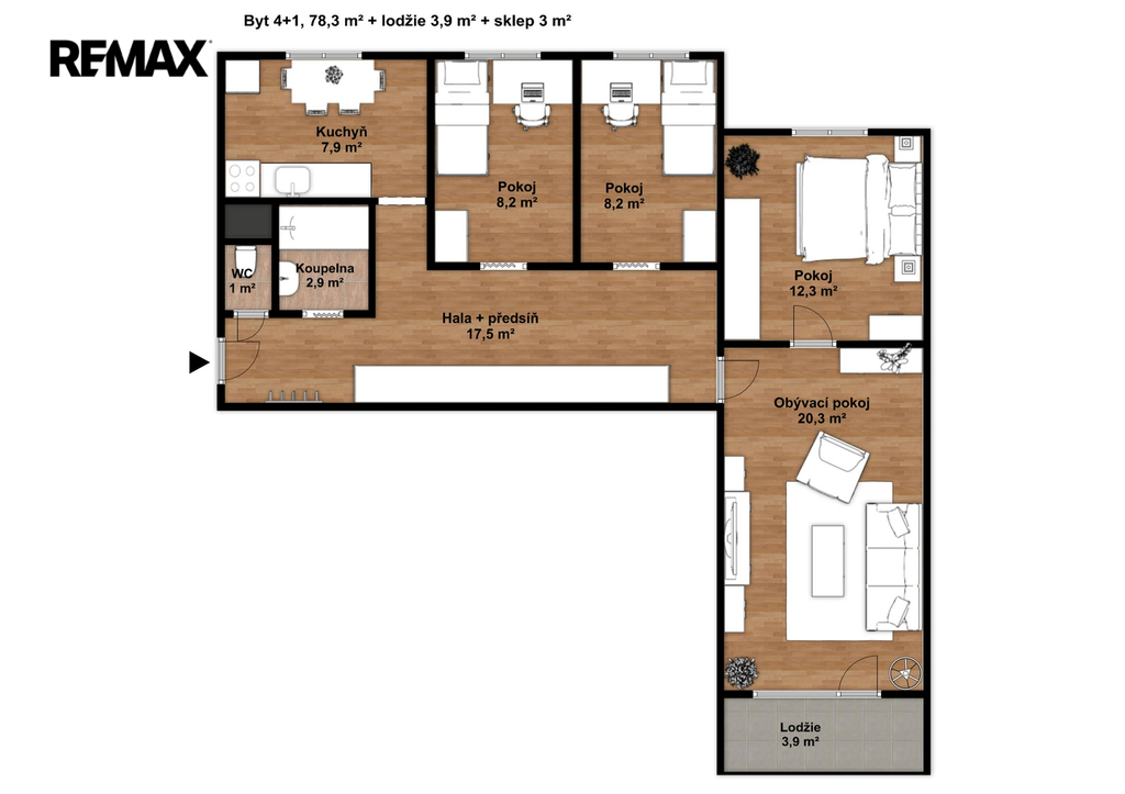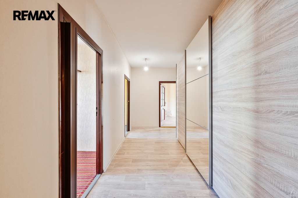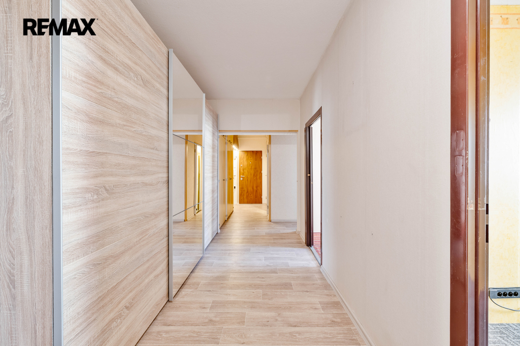 Nabízíme k prodeji prostorný a světlý byt v osobním vlastnictví o dispozici 4+1 s celkovou plochou 85,20 m², který se nachází v 5. patře zrekonstruovaného bytového domu s výtahem - energetická třída C. K bytu náleží lodžie o velikosti 3,9 m² a sklep 3 m². Podlahová plocha samotného bytu činí 78,30 m². Dispozice bytu nabízí velmi praktické a funkční řešení – obývací pokoj (20,30 m²) se vstupem na lodžii, tři samostatné pokoje (8,20 m², 8,20 m² a 12,30 m²), kuchyni (7,90 m²), koupelnu (2,90 m²), samostatné WC (1 m²) a prostornou halu s předsíní (17,50 m²). Byt je v původním stavu, ale velmi dobře udržovaný, s umakartovým jádrem, což dává novému majiteli ideální příležitost k rekonstrukci dle vlastních představ. Vybavení zahrnuje starší kuchyňskou linku s elektrickou troubou a plynovým sporákem, vestavěné skříně v hale a kompletní vybavení ložnice (možnost ponechání nebo vyklizení dle dohody). Okna jsou plastová se žaluziemi a sítěmi proti hmyzu, vstupní dveře bezpečnostní. Bytový dům prošel v roce 2011 rozsáhlou rekonstrukcí (zateplení fasády, nový výtah, schránky, domovní telefony, čipový vstup, zabezpečení sklepních prostor). V roce 2019 byla rekonstruována střecha. V domě je zajištěn pravidelný úklid, kamerový systém a centrální uzamykání. Společenství vlastníků splácí úvěr na revitalizaci domu, který bude zcela doplacen v roce 2027. Na byt připadá nesplacená část pouze ve výši cca 19.716 Kč. Měsíční náklady činí cca 5.000 Kč – 5500 Kč včetně fondu oprav a splátky úvěru (1.566 Kč) + elektřina. Hlavní přednosti nabídky : velmi prostorný byt s výbornou dispozicí, možnost rekonstrukce dle vlastních představ, zateplený a dobře fungující dům, téměř splacený úvěr SVJ, kompletní občanská vybavenost v okolí. Byt je ideální volbou pro rodinné bydlení nebo jako investice. Pro další informace nebo zájmu o prohlídku, kontaktujte makléřku nabídky. Prodávající si vyhrazuje právo vybrat kupujícího na základě jím zvolených kritérií.