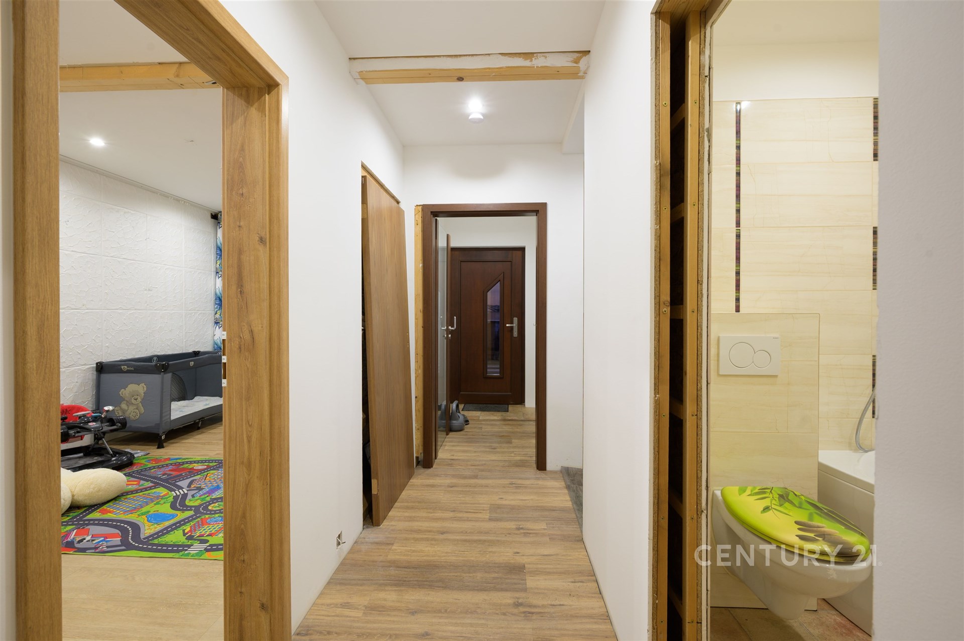 Zatím jste dosud nenarazili na dům v atraktivní lokalitě v Táboře? Mám zde k prodeji samostatně stojící patrový rodinný dům v klidné a vyhledávané části města Tábor – Čekanice, kde se nabídky rodinných domů objevují jen zřídka. Lokalita je považována za atraktivní, jelikož nabízí tiché bydlení s minimálním provozem a zároveň dobrou dostupnost do centra města. Jedná se o pasivní dřevostavbu s energetickou třídou PENB A, kolaudován v 05/2021 (v domě jsou ještě některé dodělávky) a situován na rohovém pozemku o celkové velikosti 583 m², z čehož zastavěná plocha domu je 100 m². Podlahová plocha je 75 m² v každém podlaží. V přízemí domu se nachází hlavní vstup se zádveřím, chodba s druhým bočním vstupem na zahradu, schodiště do patra a technická místnost. Dále je zde pokoj, který byl původně rozdělen příčkou na ložnici a šatnu, koupelna s vanou, umyvadlem a toaletou. Obývací pokoj s kuchyňským koutem, na který navazuje menší místnost původně zamýšlená jako spíž či pracovna. Z obývacího pokoje je přímý vstup francouzskými a terasovými dveřmi na zahradu za domem. V patře se nachází druhá koupelna vybavená vanou i sprchovým koutem, samostatné WC obložené keramickou dlažbou a z chodby jsou přístupné tři samostatné, neprůchozí pokoje. Dva z těchto pokojů mají vstup na společný balkón. Dům je napojen na veřejný vodovod a kanalizaci. Vytápění je řešeno elektrickým podlahovým topením pomocí topných fólií, a to v celém domě mimo technickou místnost a koupelnu v přízemí. Ohřev vody elektrickým bojlerem. Plyn je na hranici pozemku. V domě je moderní systém větrání s rekuperací značky NILAN, pro neustálý přísun čerstvého vzduchu, odvod vlhkosti a zdravé vnitřní klima bez nutnosti častého větrání. Systém lze i online sledovat a regulovat. Je zde také instalovaná chytrá domácnost Loxone centrální i vzdálené ovládání osvětlení, stínění, vytápění energetický management domu. Okna jsou dřevěná s izolačním trojsklem, částečně se solárním zasklením a venkovními žaluziemi. Dům je zateplen PUR pěnou, založen na zemních vrutech. Na pozemku je retenční nádrž na dešťovou vodu a menší vedlejší objekt sloužící jako sklad.