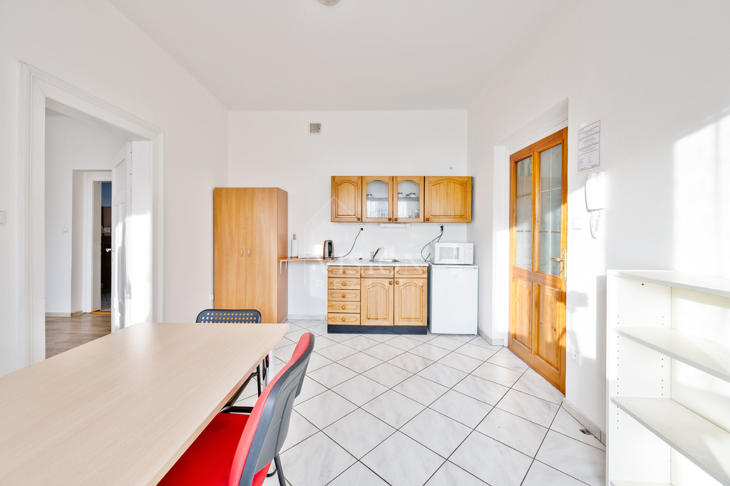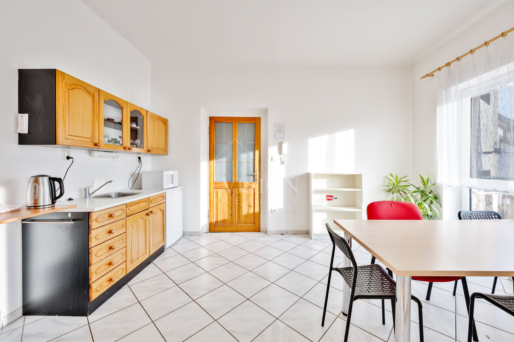 Nabízíme městský dům o třech podlažích, který kombinuje bydlení, podnikání i další rozvojový potenciál. V suterénu se nachází byt 2+kk s koupelnou a špajzkou. Byt má samostatný vstup a přímý východ na zahrádku. Součástí podlaží jsou také sklepy, které poskytují dostatek úložného prostoru. V bytě je nová elektroinstalace a nové rozvody topení. V 1. nadzemním podlaží je kancelářský prostor se čtyřmi samostatnými místnostmi a sociálním zázemím. Prostory jsou světlé, dobře dispozičně řešené a vhodné pro kanceláře, služby nebo kombinaci s jiným podnikáním. I zde jsou nové rozvody topení. Každý prostor v domě má vlastní elektrokotel, což umožňuje samostatné řízení provozu a nákladů. Velkou výhodou je prostorná půda s možností vybudování dalšího obytného prostoru, ateliéru nebo kanceláří dle vlastních představ. Dům je vhodný jak pro vlastní bydlení spojené s podnikáním, tak jako zajímavá investiční příležitost.
