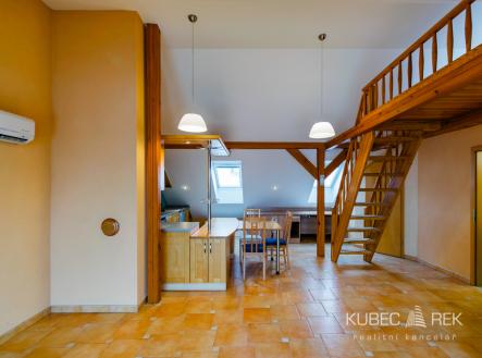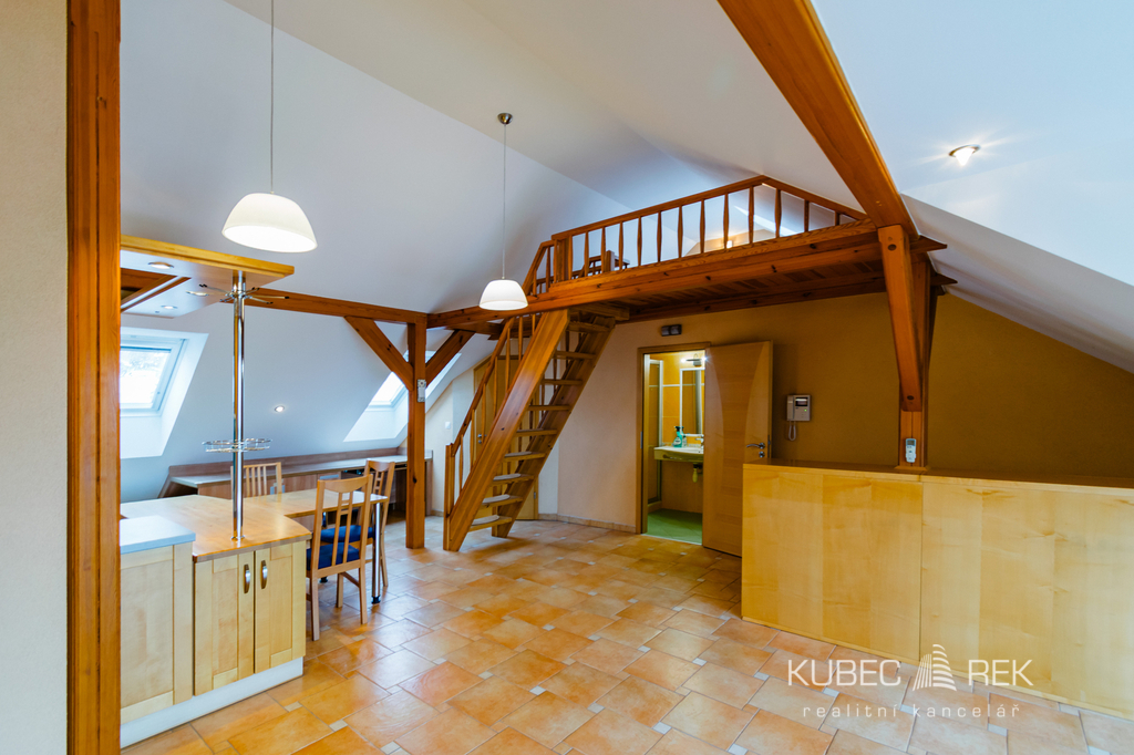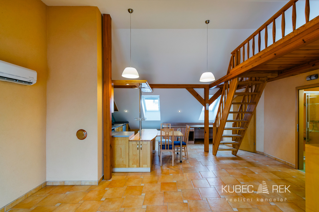 Nabízíme k pronájmu atypický byt 1+kk s podkrovním místem na spaní o celkové ploše 60 m², umístěný ve 2. patře zděného domu v ulici Třebízského v Táboře. Byt zaujme prostorným balkonem s pěkným výhledem na město a možností využívání zahrady s altánkem, ideální pro posezení a relax. Dispozice nabízí otevřený obytný prostor s kuchyňskou linkou a jídelní částí, technickou místnost a koupelnu se sprchovým koutem a WC. Vytápění je řešeno elektrickým podlahovým topením, zároveň je byt vybaven klimatizací, kterou lze využít jak k chlazení v letních měsících, tak i k přitápění. Ohřev vody zajišťuje elektrický bojler. Elektřinu si nájemce hradí samostatně dle vlastní spotřeby. Energetická náročnost budovy: třída C. Byt se nachází ve velmi žádané lokalitě s kompletní občanskou vybaveností v docházkové vzdálenosti. Centrum města i zastávka MHD jsou dostupné do 5 minut chůze, autobusové a vlakové nádraží cca 10 minut pěšky. Jedná se o dlouhodobí pronájem Ideální pro jednotlivce nebo pár bez pejska. Pro více informací nebo se zájmem o prohlídku mě neváhejte kontaktovat, budu se těšit na prohlídku.
