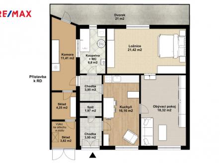 Nabízíme k prodeji přízemní, nepodsklepený rodinný dům s jednou bytovou jednotkou 2+1 o podlahové ploše 73 m². Dispozice zahrnuje obývací pokoj 18,32 m², ložnici 21,42 m², kuchyň 16,16 m², spíž 1,97 m2, koupelnu 6,8 m2, chodbu 3,95 m2 a zádveří 4,20 m2. Přístavba k domu se zastavěnou plochou 19 m2 slouží jako sklad a komora s přímým vstupem na dvorek. Z ulice tato část vytváří dojem garáže, ale s ohledem na její velikost nelze k tomuto účelu využít. Pozemek má celkem 132 m², z toho 111 m² tvoří zastavěná plocha. Za domem je k dispozici malý dvorek o velikosti 21 m². Dům nemá žádnou zahradu. Je napojený na obecní vodovod, kanalizaci a plyn. Vytápění zajišťuje plynový kotel Protherm s radiátory a ohřev vody elektrický bojler. Obojí je umístěno v koupelně, kde je i přípojka na pračku. Stav domu je udržovaný a odpovídá době výstavby (r. 1935 + přístavba r. 1940). Je nutno počítat s rekonstrukcí, kterou si může budoucí vlastník realizovat podle svých představ. Velkým benefitem je poloha. Čekanice jsou klidná a velmi oblíbená část Tábora – v docházkové vzdálenosti do centra města a zároveň s výborným napojením na dálnici D3. Dům je ideální volbou pro budoucího majitele, který chce bydlet ve vlastním, mít vše na dosah a realizaci bydlení si udělat po svém. Pro další informace a zájmu o prohlídku, prosím kontaktujte makléřku nabídky.