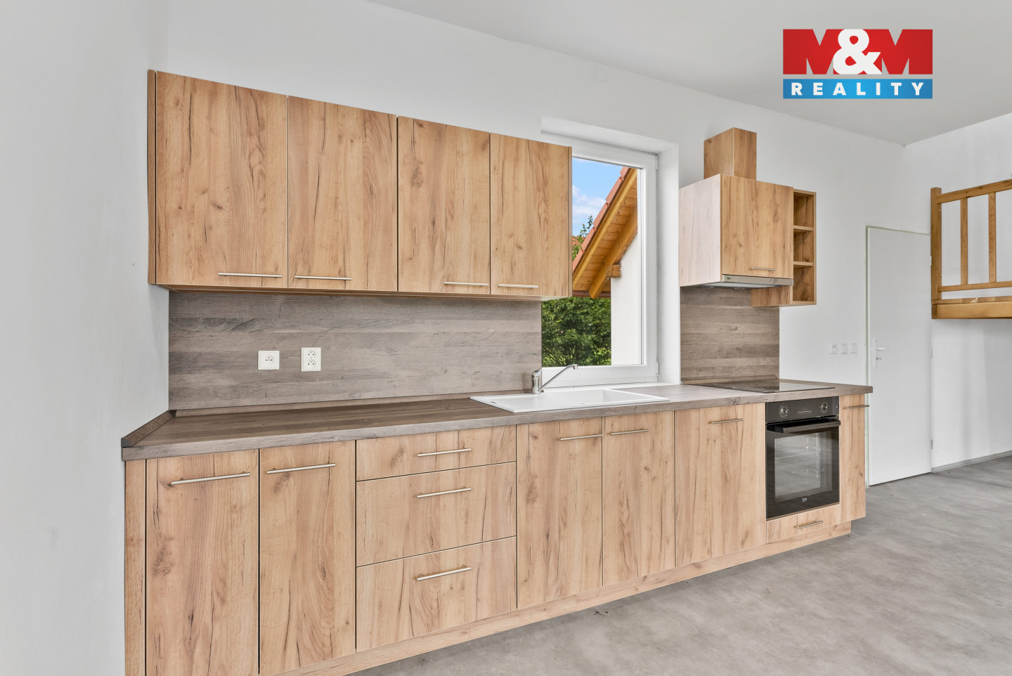 K dlouhodobému pronájmu nabízíme novostavbu rodinného domu o dispozici 4+kk v klidné lokalitě obce Tachov u Doks. Dům je samostatně stojící, má dvě nadzemních podlaží vytápěný tepelným čerpadlem. V INP podlahové topení. Dispozice INP předsíň, obývací pokoj se vstupem na zahradu, kuchyňský kout s kuchyňskou linkou vyrobenou na míru, vestavěný sporák se sklokeramickou varnou deskou. Koupelna se sprchovým koutem a toaleta, ložnice. Obývací pokoj bude dovybaven krbovými kamny. Dřevěné schodiště do patra, kde jsou dva samostatné pokoje a druhá toaleta. RD je zasažen do rovinatého pozemku, který bude oplocený s parkovacím stáním s vjezdem na zahradu. Měsíční pronájem domu se zahradou je 28.000,- Kč + záloha na vodu dle počtu osob. El. přepsaná na nájemce. Jistina 56.000,- Kč. RK provize 1 nájem. Dojezdová vzdálenost do Doks u Máchova jezera 2 km, do Mladé Boleslavi 29 km a České Lípy 20 km. Využijte jedinečné příležitosti bydlet v novém domě v krásném prostředí. Doporučuji prohlídku.