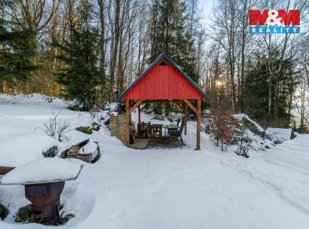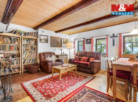 Chalupa v Šumburku nad Desnou není jen víkendovým útočištěm. Je to místo, kde se hlava zpomalí ještě dřív, než vystoupíte z auta. Les za zády, ticho kolem a přitom bez komplikovaného dojezdu – k domu vede pohodlná cesta a centrum obce i lyžařské areály jsou v krátké vzdálenosti. Nemovitost prošla kompletní rekonstrukcí a je připravena k okamžitému užívání bez nutnosti dalších investic. V přízemí se nachází prostorný obývací pokoj s krbem, který se přirozeně stává srdcem domu, dále kuchyň, koupelna a samostatné WC. V patře jsou dvě světlé ložnice s výhledem do zeleně. Masivní nábytek, který zůstává součástí prodeje, ladí s charakterem horské chalupy a vytváří příjemnou a klidnou atmosféru. Pozemek o výměře více než 9 369 m² zajišťuje dostatek soukromí i prostoru pro venkovní život. K dispozici je pergola, garáž a místo, kde si užijete každé roční období – od letních večerů venku až po zimní návraty z hor. Dům má vlastní zdroj vody, novou elektroinstalaci a jímku.