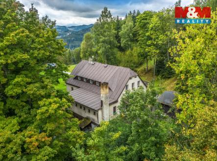 Nabízíme ke koupi chalupu v Jizerských horách s užitnou plochou 360 m² a okolními pozemky více jak 7000 m². Chalupa v současné době užívána jako penzion. Ve dvou patrech se nachází 6 pokojů, plně vybavená kuchyně a sociální zařízení. Interiér objektu je po rekonstrukci a byly zde záměrně zachovány některé původní prvky. Objekt je napojený na obecní vodovod, ohřev vody bojler, vytápění zajišťuje kotel s automatickým podavačem na peletky. Bezproblémový příjezd a parkování před domem až pro 8 vozidel. Chalupa se nachází na polosamotě a její poloha skýtá nepřeberné množství výletních míst, běžkařských tratí, lyžařských vleků a v letních měsících koupání v přírodních koupalištích. Vhodné na krátkodobé ubytování, teambuildingy, svatby či rodinné sešlosti. Neváhejte a domluvte si prohlídku, na té vám sdělíme podrobnější informace.