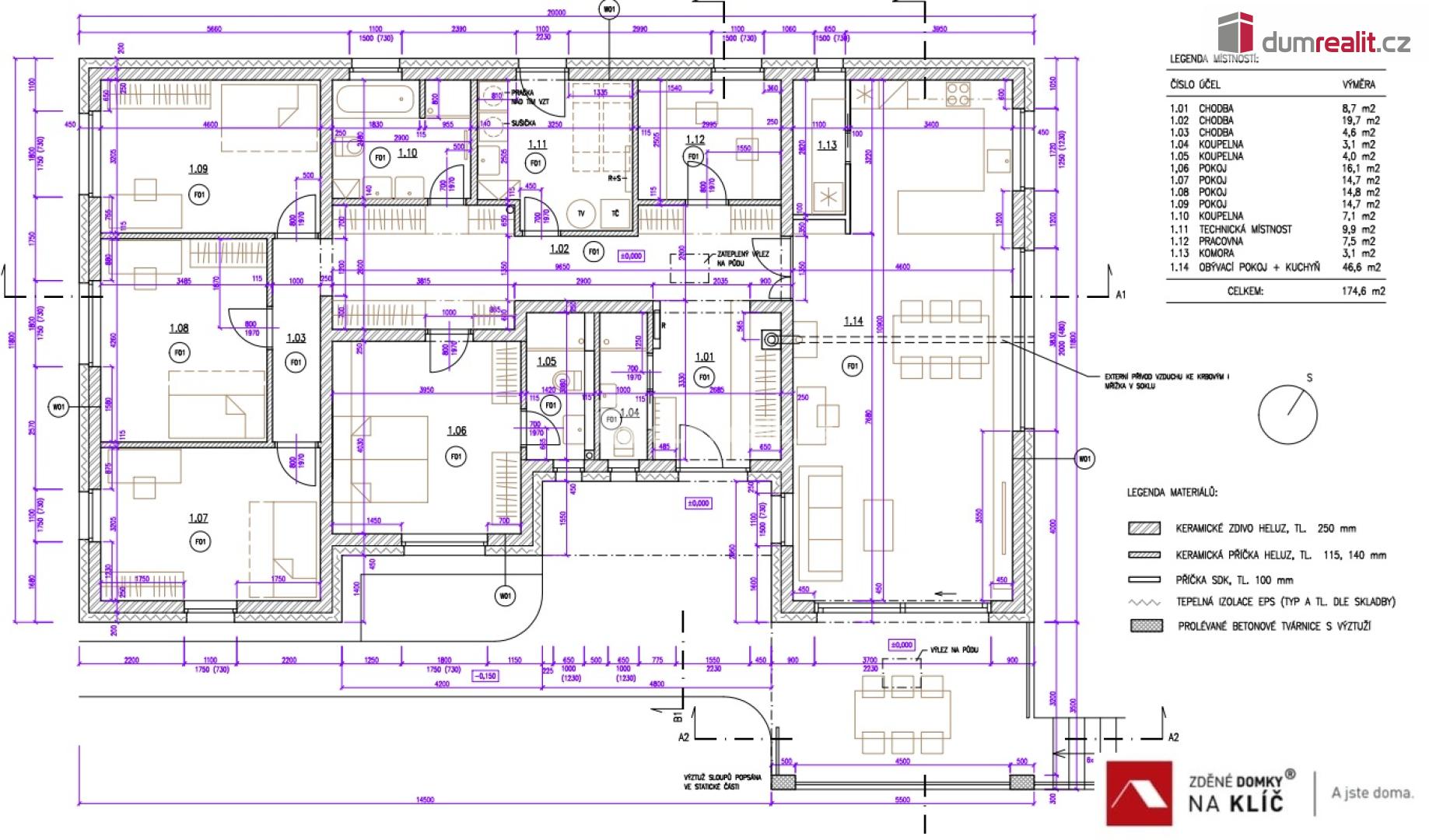 Moderní rodinné sídlo v srdci Tečovic: Prostor, úspora a komfort na klíč Hledáte dokonalé místo pro život své rodiny, kde se potkává moderní architektura s velkorysým prostorem? Objevte projekt nízkoenergetického domu 6+kk v oblíbené lokalitě Těčovice u Zlína. Na slunném, rovinatém pozemku o rozloze 1 364 m² pro vás postavíme dům, který není jen stavbou, ale promyšleným domovem pro 21. století. Čím vás tento dům nadchne? Velkorysý prostor: Dispozice 6+kk s užitnou plochou 175 m² poskytne dostatek soukromí i pro velkou rodinu nebo domácí pracovnu. Chytrá úspora: Díky špičkovým materiálům (Porfix) a tepelnému čerpadlu jsou měsíční náklady až 3x nižší než v běžném bytě. Šetřete tam, kde to dává smysl. Bezstarostná realizace: Dům předáváme kompletně dokončený "na klíč" – včetně podlah, sanity, dveří a kolaudace. Stačí si vybrat kuchyni, svítidla a můžete bydlet. Zahrada snů: Šířka pozemku 24 metrů nabízí nekonečné možnosti pro bazén, terasu nebo dětské království. Lokalita, kterou si zamilujete Tečovice nabízejí veškerý komfort na dosah ruky. Do Zlína dorazíte za pouhých 15 minut, přesto si doma užijete naprostý klid. Mateřská a základní škola v docházkové vzdálenosti. Sportovní vyžití: bazén, fotbalové hřiště, dětská hřiště. Kompletní vybavenost: obchod, restaurace, pošta. Technické standardy & Možnosti Vytápění: Teplovodní podlahové topení a tepelné čerpadlo se zásobníkem na vodu. Flexibilita: Chcete krb, rekuperaci, fotovoltaiku nebo venkovní žaluzie? Žádný problém. Dispozici domu rádi upravíme podle vašich přání. Rychlost: Bydlíte do 12–13 měsíců od vydání stavebního povolení. Cena obsahuje: Pozemek, projektovou dokumentaci, základovou desku, výstavbu na klíč, finální povrchy v interiéru i exteriéru a DPH. Přijďte se přesvědčit na vlastní oči! Máme pro vás připravený detailní projekt a rádi vás provedeme našimi již hotovými domy, abyste si mohli sáhnout na kvalitu naší práce. Kontaktujte našeho makléře ještě dnes a udělejte první krok ke svému novému domovu. Ev. číslo: 653942.