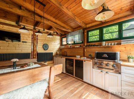 Prodej stylové chaty ve stylu srubu po kompletní rekonstrukci v trampské osadě Údolí Raků – klid, příroda a skvělá investice jen kousek od Prahy. Hledáte místo, kde si odpočinete, načerpáte energii a zároveň dobře investujete? Nabízíme vám jedinečnou chatu v legendární trampské osadě Údolí Raků mezi Tehovem a Menčicemi, pouhých pár minut od Říčan u Prahy. Živá komunita & tradice Údolí Raků je více než jen místo – je to komunita s tradicí od roku 1929. Čekají vás každoroční akce, jako je osadní potlach, turnaje v nohejbale, dětský den či cyklistický Klokočenský klobouček. Skvělé sousedské vztahy a bezpečné prostředí pro děti jsou samozřejmostí. Pro koho je chata ideální? - Pro rodiny hledající druhý domov v přírodě - Pro ty, kdo chtějí bydlet celoročně v klidu a stylu - Pro investory – perfektní příležitost pro rekreační pronájem nebo firemní retreat - Skvělá dostupnost z Prahy – dojezd z centra cca 45 minut, přitom naprostý klid a soukromí uprostřed přírody. Tato srubová chata na zděné podezdívce prošla v letech 2020–2025 kompletní rekonstrukcí a rozšířením, a nyní nabízí komfortní zázemí pro celoroční využití – ať už pro rodinnou rekreaci, trvalé bydlení nebo jako investici s potenciálem pronájmu. Hlavní přednosti: - Poctivá konstrukce na zděné podezdívce s masivním dřevem, zatepleno přírodní dřevěnou vatou Steicoflex - Kachlová kamna 2x, v pergole s pecí + elektrokotel + podlahové topení, příprava na solární panely pro ohřev TUV - Dřevěná eurookna s trojsklem v designové zelené barvě - Nová falcovaná střecha s 22 cm nadkrokevní izolací - Zahrada v rovině, zatravněná, s vyvýšenými záhony, dětským hřištěm a dřevníkem - Septik s biologickým filtrem, retenční nádrž 5 m³ s napojením pro zalévání - Dvě plně vybavené kuchyně (v chatě i v pergole), betonové dřezy Blanco, spotřebiče Gorenje - Vnitřní pergola (25 m²) s kanadským plynovým grilem KingBroil, výčepem piva a vinotékou pro 80 lahví - Podkrovní ložnice (či dětský pokoj) s postelí, pracovním koutem a posezením - Dvě příjezdové cesty a 2x parkování na přilehlém pozemku Tato chata má duši, příběh a budoucnost – možná právě tu vaši. překrásný výhled obložení přírodním kamenem praktický sklep a špajz dvoje vstupní dveře nové podlahy, smrkové palubky velkoformátová dlažba a masivní modřinová prkna kompletní nová stěcha přírodní dřevo ošetřeno lakem Osmo ohřev vody pro 300 l