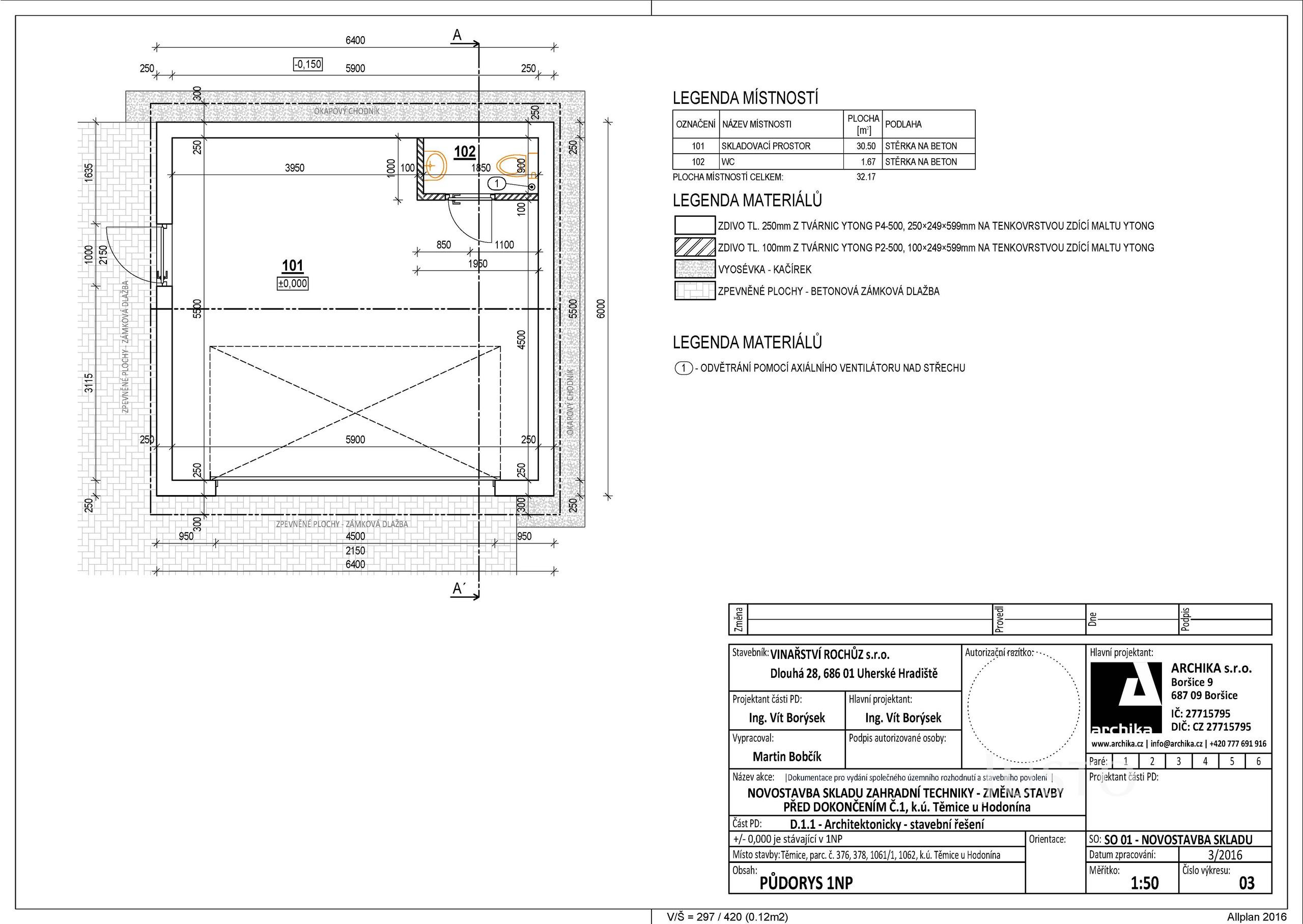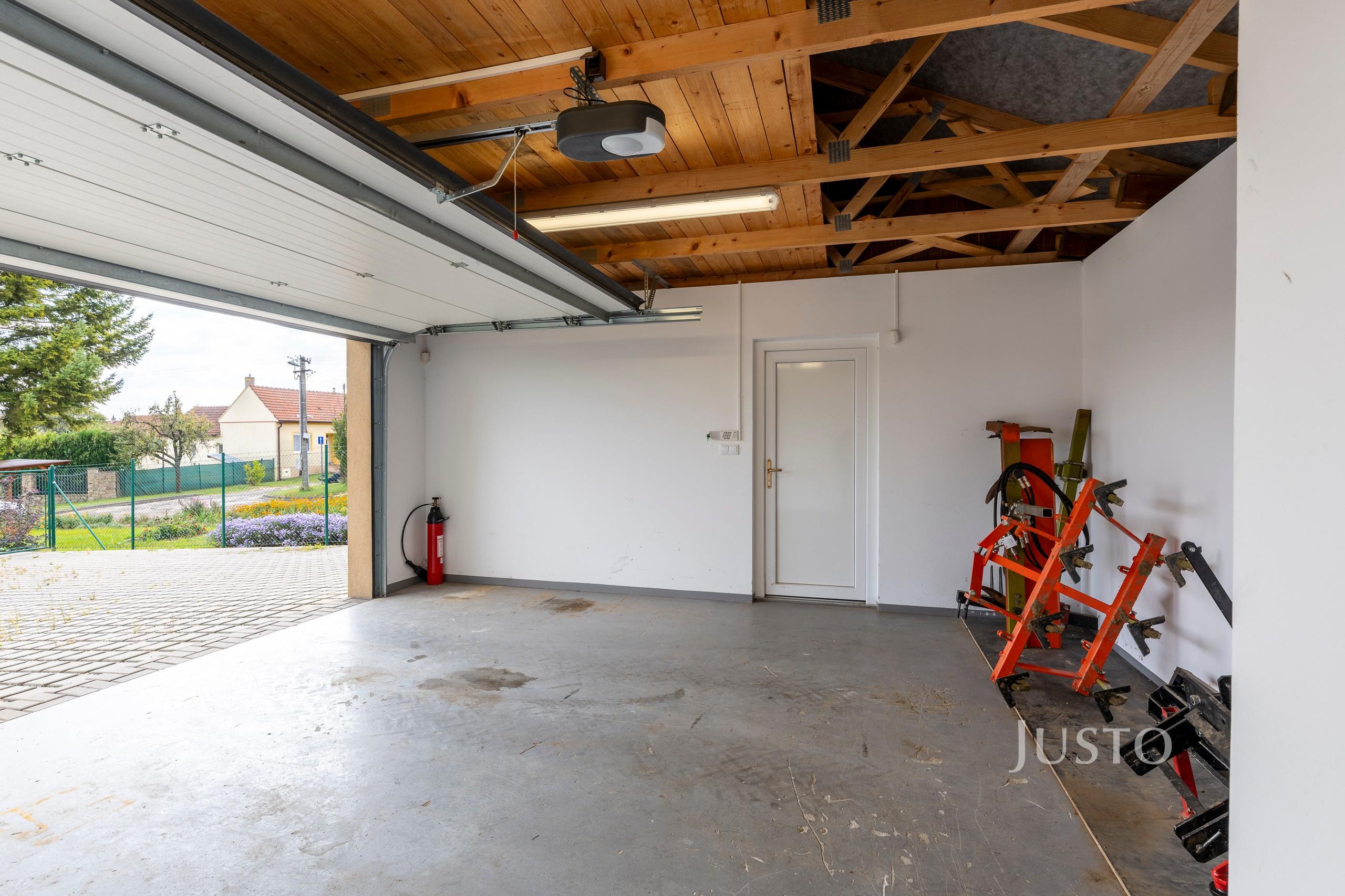Ve výhradním zastoupení majitele Vám nabízím k prodeji oplocenou moderní zemědělskou stavbu – sklad zahradní techniky - dvojgaráž, s vodovodní přípojkou, splachovacím WC, umyvadlem a funkční elektroinstalací v mědi, s pozemkem o celkové výměře 2331 m². Objekt byl dostavěn v roce 2021, a je vybaven elektronickým zabezpečovacím systémem s napojením na mobilní telefon. ✅ Kupujete tedy hotovou, jen 4 roky starou dvojgaráž pro dvě vozidla, s přípojkami inženýrských sítí, stačí tedy přistavit nepodsklepený bungalov a máte krásné bydlení s ideálním dosahem do Kyjova i Bzence. ???? Technické parametry stavby: - Rozměry: 6,4 × 6 m, výška hřebene 4,32 m - Konstrukce: Ytong tl 250 mm, vazníkový krov, sedlová střecha s plechovou krytinou - Podlaha: betonová, bez montážní jámy - elektrická pojezdová vrata: 4500 × 2150 mm, vstupní dveře: 1000 × 2150 mm - Přístřešek: rozšíření střechy o cca 18 m² pro skladování materiálu ⚙️ Inženýrské sítě: - Elektroinstalace: NN rozvody, kabel NA YY 4x25mm², elektroměr - Vodovod: napojení na veřejný řad, vodoměrná šachta - Dešťové vody jsou svedeny do vsakovací jímky - Kanalizace: jímka na vyvážení. ???? Pozemky: Celková výměra pozemků činí 2 331 m², z toho: - plocha 1 127 m² je určena územním plánem obce k bydlení v rodinných domech (Br2) - plocha 588 m² je určena územním plánem obce zahradou (ZS) - plocha 616 m² je určena územním plánem obce ornou půdou. Na příjezdové cestě je položena zámková dlažba 170 × 170 mm. ???? Lokalita: Obec Těmice se nachází v klidné lokalitě s výbornou dostupností: Bzenec – 4 km Kyjov a Veselí nad Moravou – 13 km Majitel si vyhrazuje právo prodat nemovitost nejvýhodnější nabídce. ???? Neváhejte nás kontaktovat pro více informací nebo domluvení prohlídkyoj