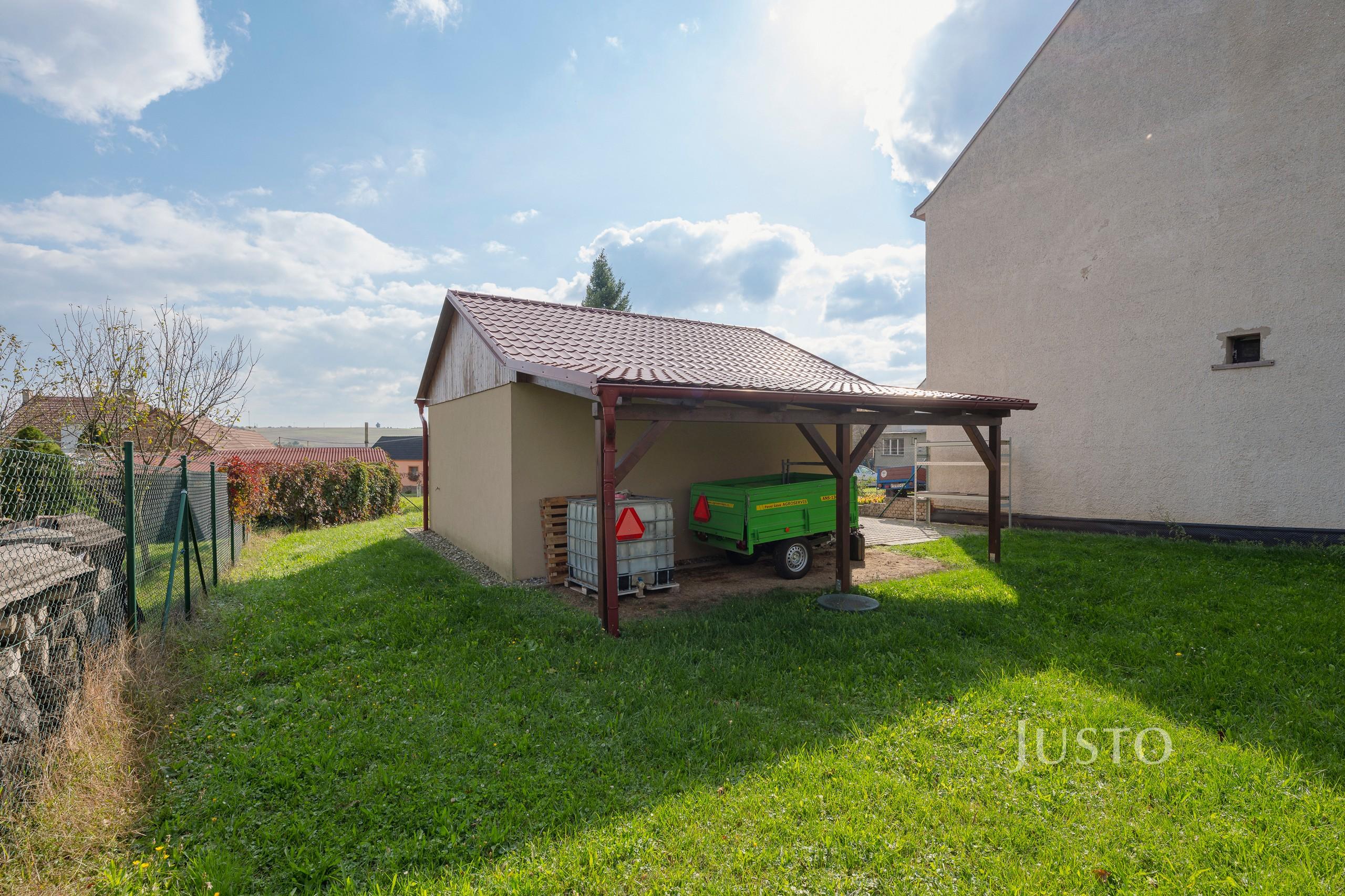 Ve výhradním zastoupení majitele Vám nabízím k prodeji oplocenou moderní zemědělskou stavbu – sklad zahradní techniky - garáž, s vodovodní přípojkou, splachovacím WC, umyvadlem a funkční elektroinstalací v mědi, s pozemkem o celkové výměře 2331 m². Objekt byl dostavěn v roce 2021, a je vybaven elektronickým zabezpečovacím systémem s napojením na mobilní telefon. ✅ Kupujete tedy hotovou, jen 4 roky starou garáž pro dvě vozidla, s přípojkami inženýrských sítí, stačí tedy přistavit nepodsklepený bungalov a máte krásné bydlení s ideálním dosahem do Kyjova i Bzence. ???? Technické parametry stavby: - Rozměry: 6,4 × 6 m, výška hřebene 4,32 m - Konstrukce: Ytong tl 250 mm, vazníkový krov, sedlová střecha s plechovou krytinou - Podlaha: betonová, bez montážní jámy - elektrická pojezdová vrata: 4500 × 2150 mm, vstupní dveře: 1000 × 2150 mm - Přístřešek: rozšíření střechy o cca 18 m² pro skladování materiálu ⚙️ Inženýrské sítě: - Elektroinstalace: NN rozvody, kabel NA YY 4x25mm², elektroměr - Vodovod: napojení na veřejný řad, vodoměrná šachta - Dešťové vody jsou svedeny do vsakovací jímky - Kanalizace: jímka na vyvážení. ???? Pozemky: Celková výměra pozemků činí 2 331 m², z toho: - plocha 1 127 m² je určena územním plánem obce k bydlení v rodinných domech (Br2) - plocha 588 m² je určena územním plánem obce zahradou (ZS) - plocha 616 m² je určena územním plánem obce ornou půdou. Na příjezdové cestě je položena zámková dlažba 170 × 170 mm. ???? Lokalita: Obec Těmice se nachází v klidné lokalitě s výbornou dostupností: Bzenec – 4 km Kyjov a Veselí nad Moravou – 13 km Majitel si vyhrazuje právo prodat nemovitost nejvýhodnější nabídce. ???? Neváhejte nás kontaktovat pro více informací nebo domluvení prohlídky!pozem